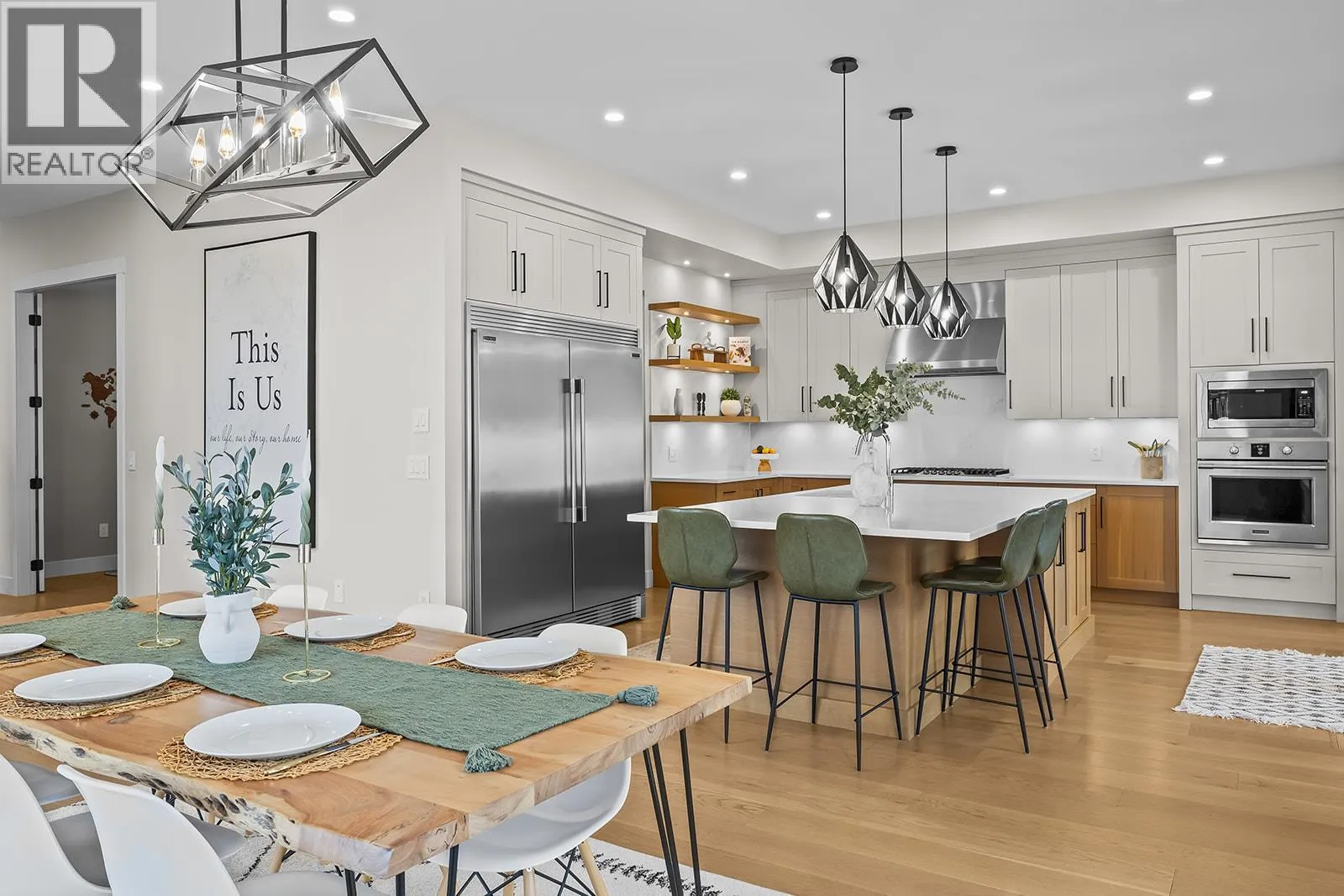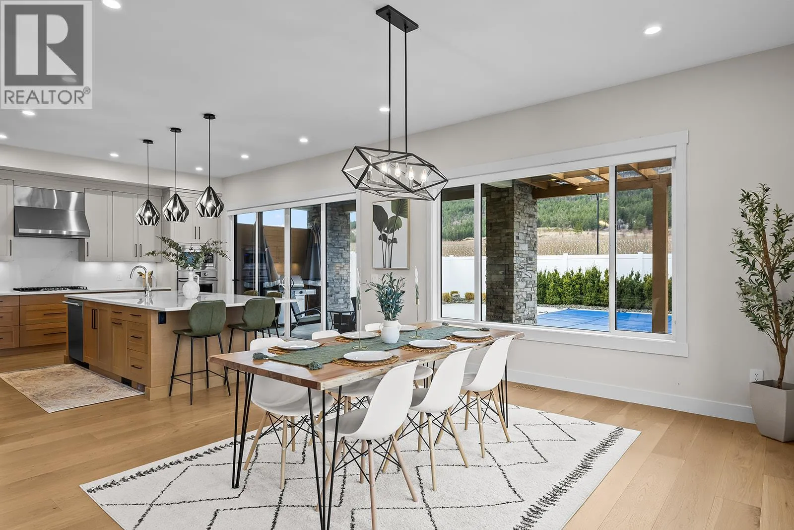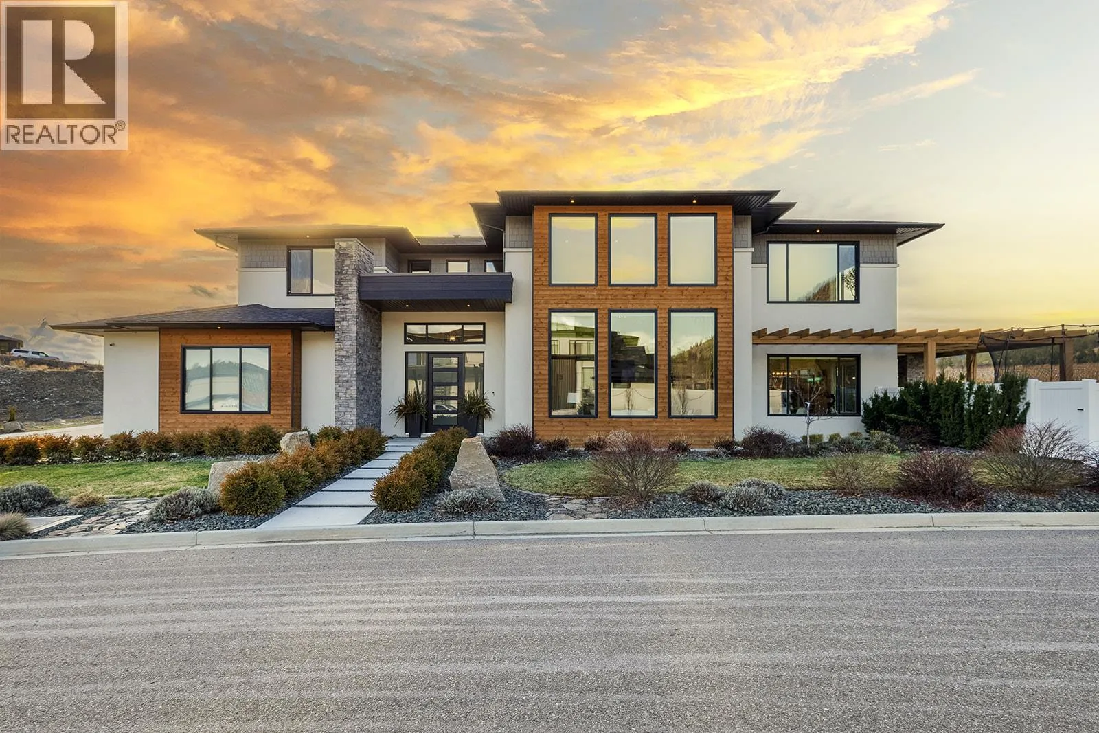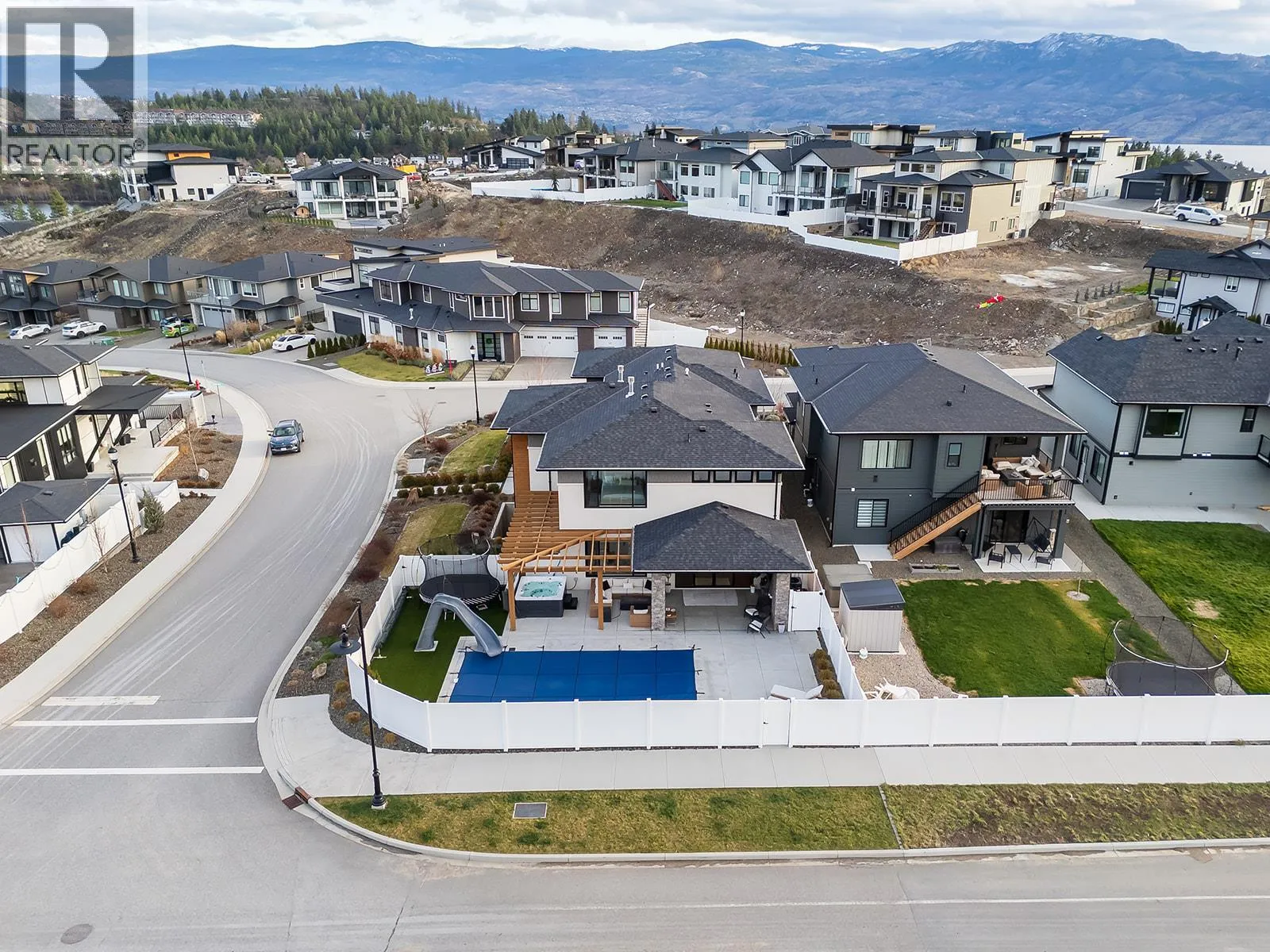 Welcome to the former Tallus Ridge Showhome - an architectural masterpiece with almost 5000 sq. ft. of elevated family living set upon a picturesque vineyard backdrop. From the moment you enter, you'll be captivated by the soaring 20-foot ceilings and expansive windows; and a warm, inviting atmosphere draws you in. The heart of the home is the kitchen, perfectly positioned to bring everyone together, from making pizza and carving pumpkins with the kids to hosting family gatherings in the open-concept living and dining areas. Step directly off the kitchen into an entertainerâs dream backyard. With a heated in-ground pool, hot tub, excellent sun exposure, and a fully fenced, private setting, this outdoor space becomes an extension of the home, ideal for summer days, evening relaxation, and effortless entertaining. Nearby hiking trails and vineyard views complete the lifestyle. Upstairs, the split-bedroom design offers privacy and balance, anchored by a cozy sitting area overlooking the great room. The primary retreat feels calm and luxurious, while three additional bedrooms and laundry support everyday family life. The basement adds outstanding versatility, easily adapting to your needs as a flex space, home theatre, guest area, Airbnb, or long-term rental, with multiple bedrooms, recreation space, and a separate entrance. RV parking, a triple car garage with EV charging, and a family-friendly neighbourhood near parks, top schools, golf and all amenities, complete this package. (id:27476)