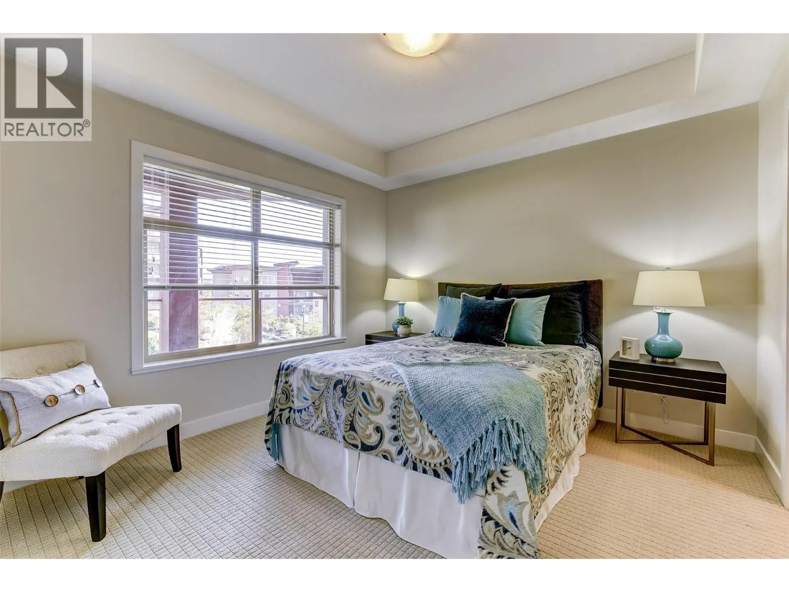 Lovely one bedroom condo at desirable Copper Sky close to shopping, restaurants, transit, golf, wineries and beach. Beautifully finished with Granite countertops, stainless steel appliances, I suite laundry, deck with lakeview (bbq allowed), underground secured parking stall, storage locker. Fabulous amenity building with gorgeous pool, hot tub, steam room, sauna, tennis/basketball/pickleball courts, putting green,, fitness center, meeting rooms, and gathering spaces with large screen tvs, kitchen, library - you never have to go anywhere for something to do. Rentals allowed, no property transfer tax and no Spec Tax. Perfect home, investment or vacation spot! Minutes into Kelowna. Pet info: 1 dog (up to 15 kg) and 1 cat or 2 dogs (up to 10 kg). Strata fees $425, parking stall, storage locker . Pictures are from a similar one bedroom staged unit. (id:27476)