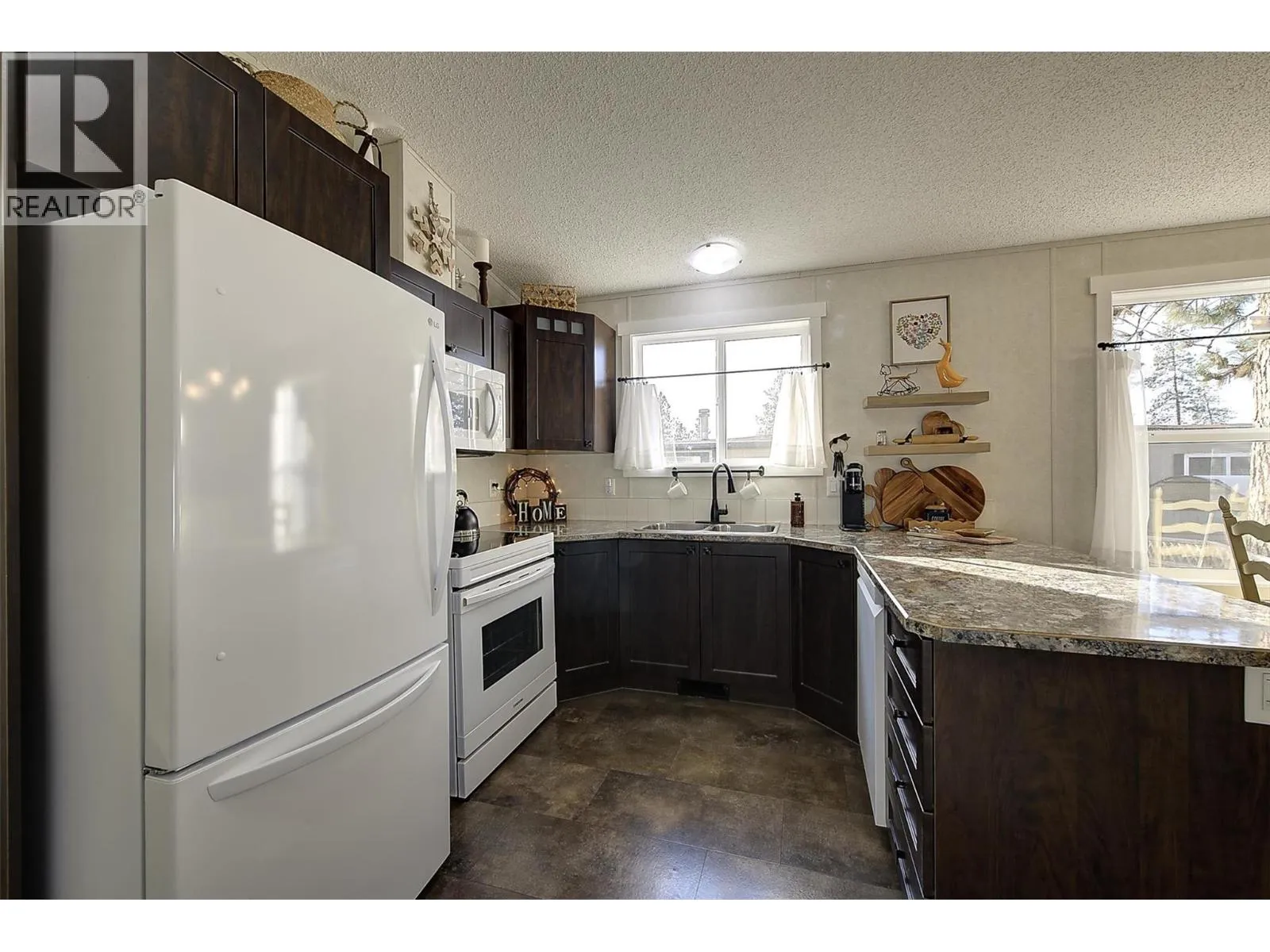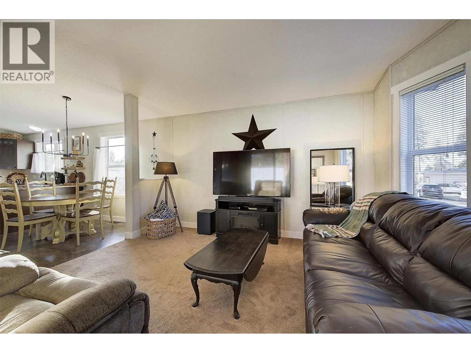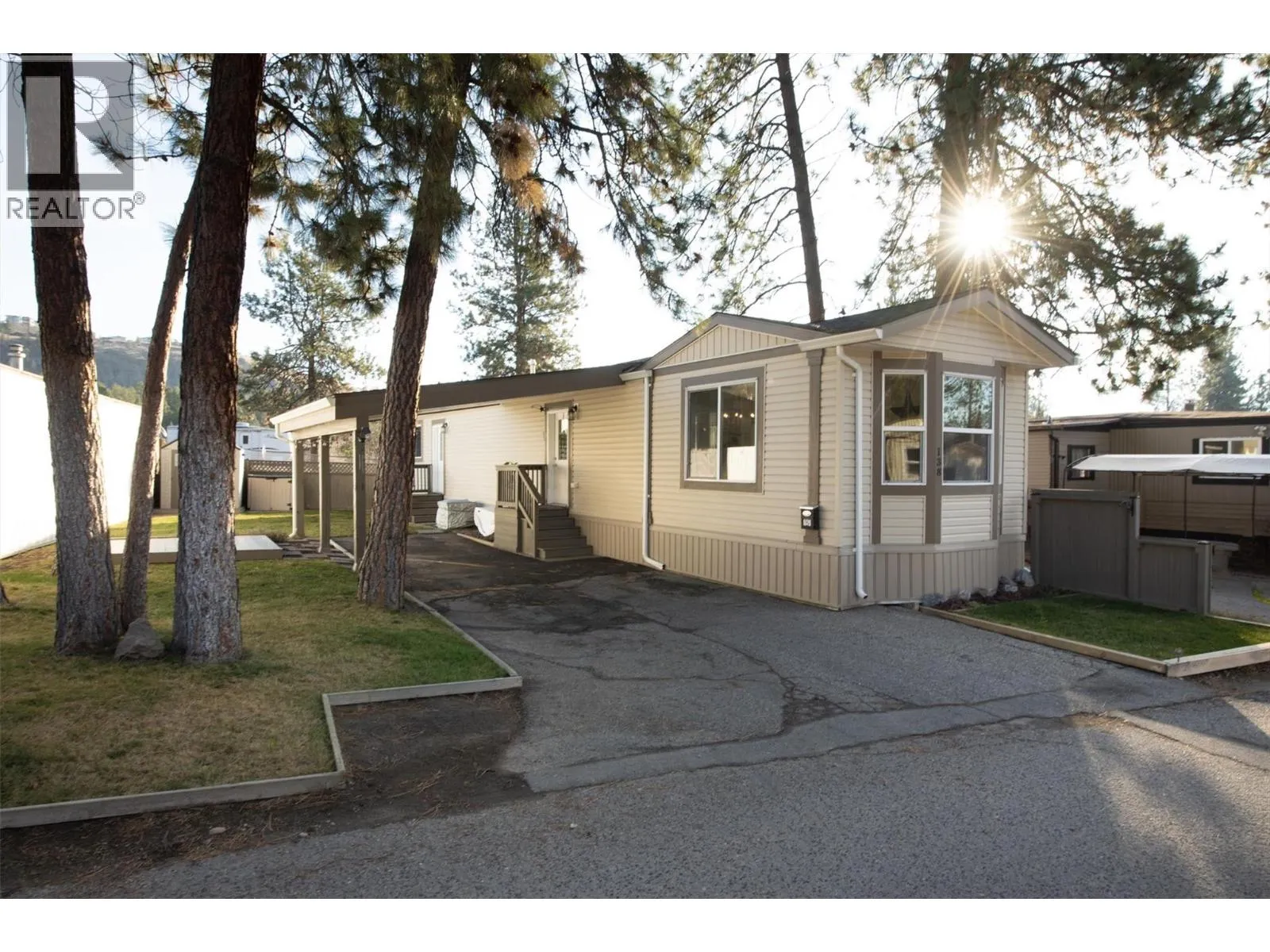 Modern, beautifully maintained, and move-in ready, this 3-bedroom, 1-bathroom home in Westview Village welcomes you with an inviting layout designed for effortless living. Located in the family-oriented section of the park, this property offers the rare advantage of no age restrictions and a flexible pet policy, allowing for two small dogs, one larger dog, or two indoor cats. The heart of the home features a spacious open-concept living area where vaulted ceilings and large bay windows fill the room with natural light. The kitchen offers plenty of cupboard and counter space, newer appliances, and flows into a dedicated dining area. The primary bedroom offers a peaceful retreat, with a full 4-piece bathroom located just off the main hallway. Two additional bedrooms provide versatility to serve as a home office, hobby room, or for extra storage. The home is also equipped with A/C for those hot summer days and a fibre optic connection for seamless connectivity. Outside, you'll find a semi-fenced yard with thoughtful landscaping and a custom-built deck ready for you to enjoy the West Kelowna summers. The property also includes two storage sheds, a single carport, and an additional driveway parking spot. Situated in a convenient central location, you are only minutes from the lake, shopping, wineries, golf courses, and local dining. This is a rare opportunity to own an affordable, turn-key home in one of West Kelownaâs most desirable parks. Book a viewing today! (id:27476)