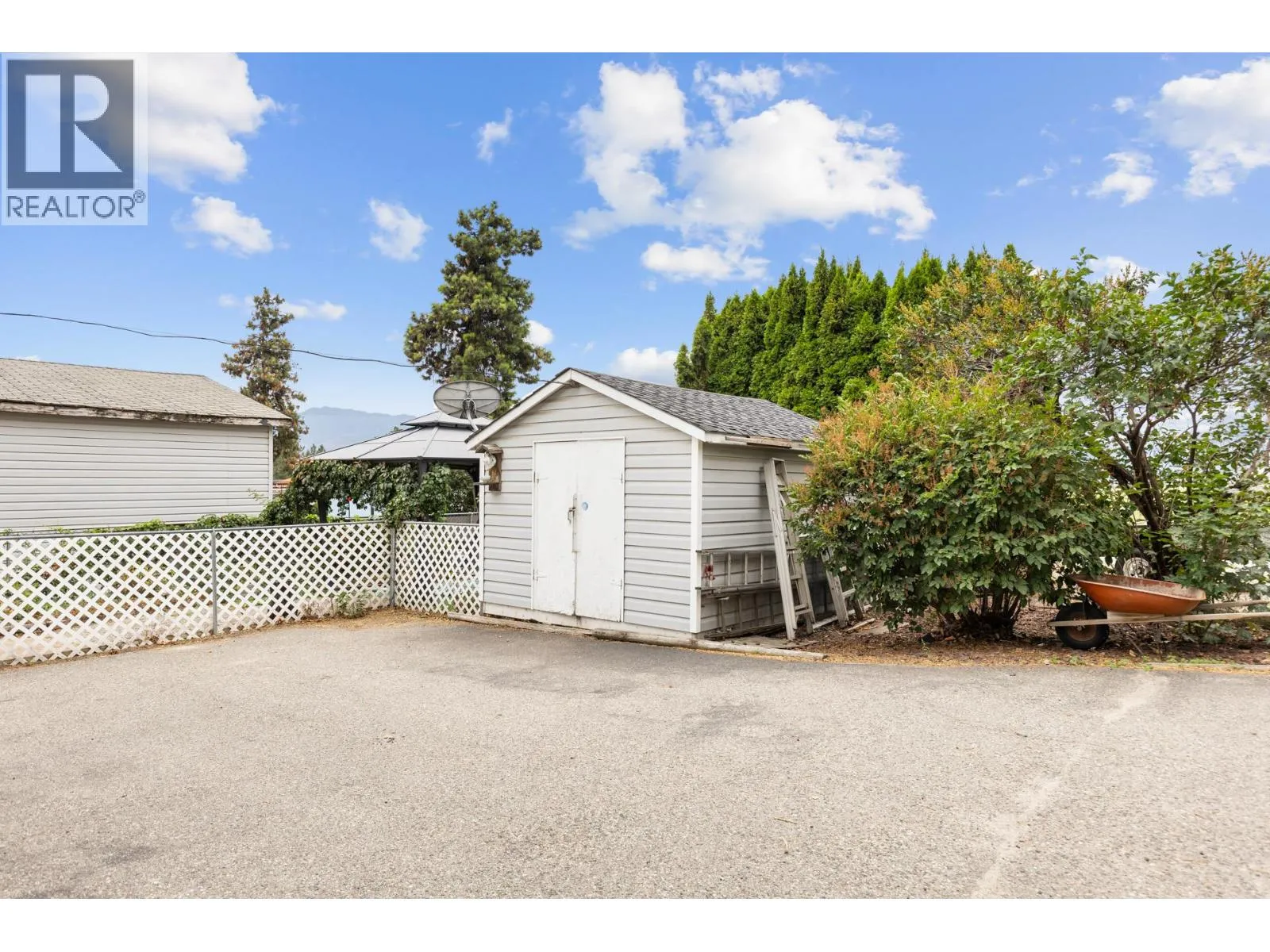 End of the road location for your own private enjoyment with tons of parking....This spacious home boasts an open layout with larger than-average rooms, vaulted ceilings, and three skylights that fill the space with natural light. The white kitchen cabinetry offers a fresh, modern look, while French doors open to a covered deck perfect for year-round enjoyment. The fully fenced yard features mature landscaping, low maintenance, hedges, a vine-covered gazebo, and a storage shed, all set on a generously sized lot. With two driveways, covered carport parking in one area, enclosed back deck, there's plenty of space and convenience for everyday living and room for a garden... Ideally located in the heart of West Kelowna, you're close to shopping, public transit, hiking trails, award-winning wineries, and just a short drive to the beaches of Okanagan Lake. (id:27476)