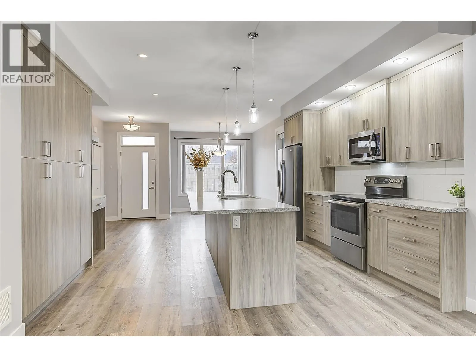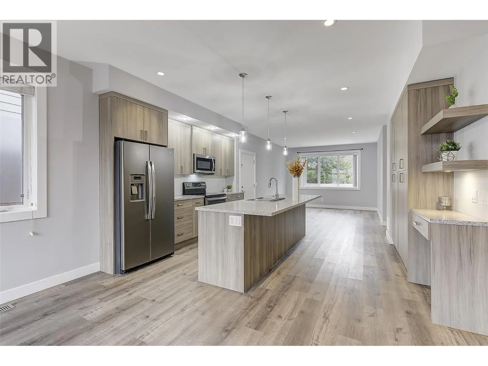 Step into a bright, stylish, and thoughtfully designed half duplex offering comfort, functionality, and modern appeal. With 9 ft ceilings on both the main and upper floors, the home feels open and airy from top to bottom. The open concept main level features a generous living area and a modern kitchen with sleek countertops, , stainless steel appliances, and an electric stove â perfect for cooking, hosting, and family time effortless. Upstairs, all three well sized bedrooms are conveniently located on the same level, keeping routines simple and family life connected. Laundry is conveniently located beside the bedrooms. A spacious unfinished basement with an optional bathroom rough in provides exceptional flexibility â ideal for a future media room, home gym, office, extra bedroom, or abundant storage. Outside, the fenced yard offers a safe, private space for kids and pets. With a newer build and low maintenance design, you can enjoy peace of mind and more time for the things you love. Nestled at the base of Mount Boucherie, youâre moments from schools, city hall, the arena, parks, and scenic hiking trails â the perfect blend of convenience and outdoor lifestyle. NO strata fees, NO rental restrictions, and NO age restrictions. Freedom, flexibility, and affordability in one package. A rare chance to secure a newer home in a desirable neighbourhood â ideal for young families, first time buyers, or anyone seeking a balanced lifestyle with room to grow. (id:27476)
