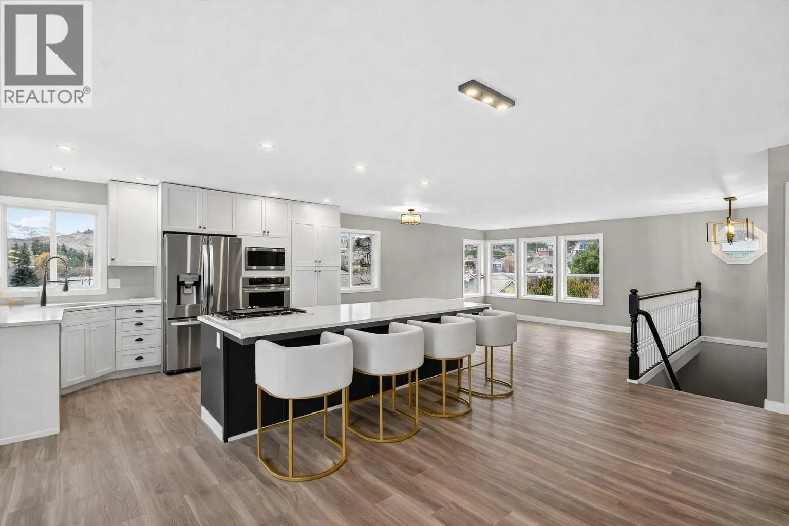 Set on a generous .29 acre lot with sweeping lake and city views, this 4 bedroom, 3 bathroom, 2,362 sq ft home includes a 1 bedroom legal suite and offers an ideal blend of lifestyle and income. A standout investment property with strong rental demand, excellent income potential, and a high cap rate, it presents a compelling opportunity for investors seeking long term value in a prime setting. The beautifully renovated main level features 3 bedrooms, 2 bathrooms, and a bright open concept layout designed to maximize natural light and views. The gorgeous kitchen includes a large island, modern cabinetry, stainless steel appliances, and seamless flow into the living and dining areas. Step outside to the massive deck with glass railings and enjoy unobstructed lake and city views, perfect for entertaining or relaxing. Downstairs, the self contained legal suite offers flexibility for reliable rental income or extended family. The yard is thoughtfully designed with fencing that separates the main home and suite outdoor areas, creating privacy for both. Multiple outdoor living spaces and storage rooms, a covered lower patio, and a large usable backyard add to the versatility of the property. Major upgrades include PEX plumbing, hot water on demand, newer roof and gutters, and a newer air conditioning system. A double garage, oversized driveway, and expansive front yard provide parking for multiple vehicles, including RV and boat parking. (id:27476)