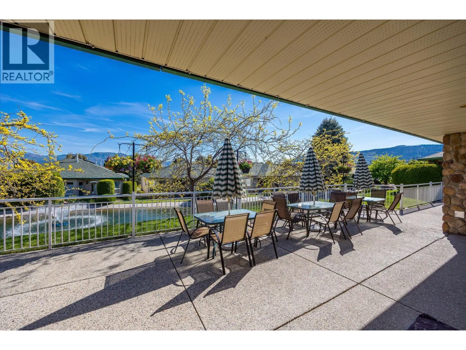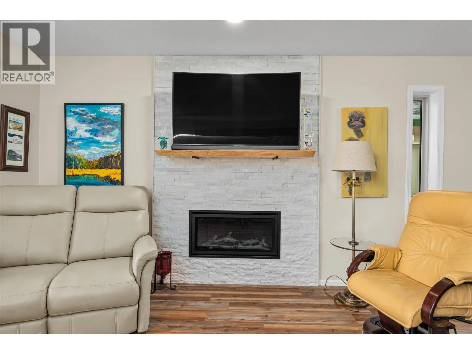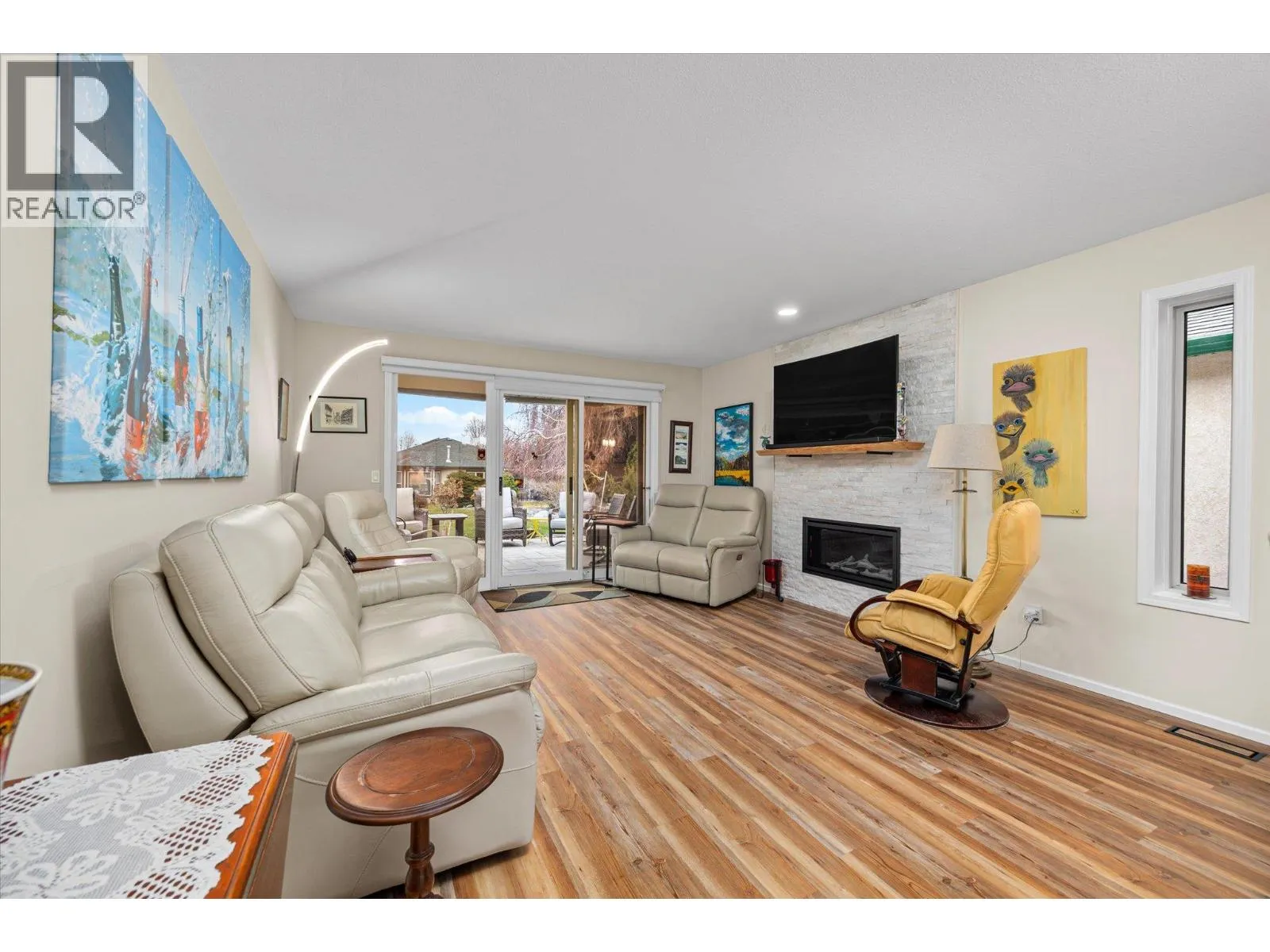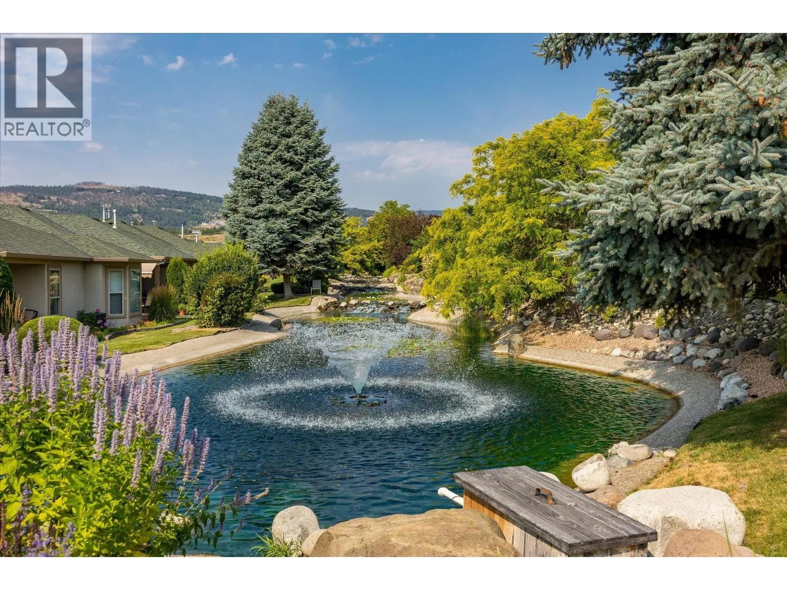 Welcome to one of the most sought after locations in Sun Village, perfectly positioned facing the peaceful water features and directly across from the clubhouse. This beautifully updated two bedroom, two bathroom home offers a rare combination of extensive upgrades, thoughtful design, and low maintenance living in the heart of West Kelowna. The home features a 3 ft crawl space spanning the entire property, providing excellent storage. All plumbing has been replaced with PEX, including the main water line to the street, offering peace of mind for years to come. Inside, pride of ownership is immediately evident with updated lighting, blinds, paint, a refreshed kitchen, and a fully renovated ensuite bathroom. All flooring has been replaced with high end vinyl plank, creating a modern and cohesive feel throughout. Additional highlights include a brand new gas fireplace, new front windows, and new stainless steel appliances. Outdoor living truly shines with a huge patio expansion and renovation that overlooks the stunning water features and lush green space. The spacious primary suite features a walk in closet and an oversized ensuite, creating a comfortable private space. The lease has been fully paid out, representing a benefit for years to come. Residents enjoy exceptional amenities including an indoor pool, hot tub, clubhouse, RV parking, and gated security. This is lock and leave living at its finest, just steps from shopping, medical offices, and transit. (id:27476)
