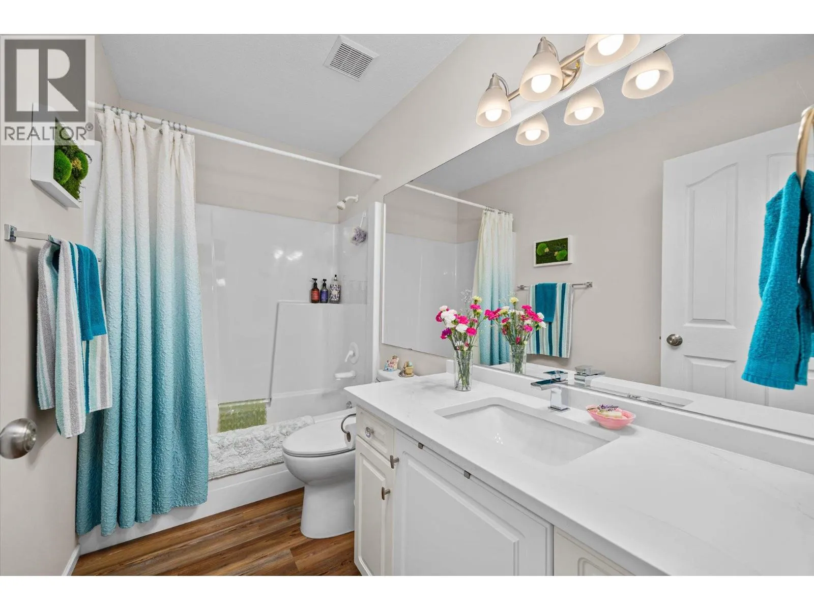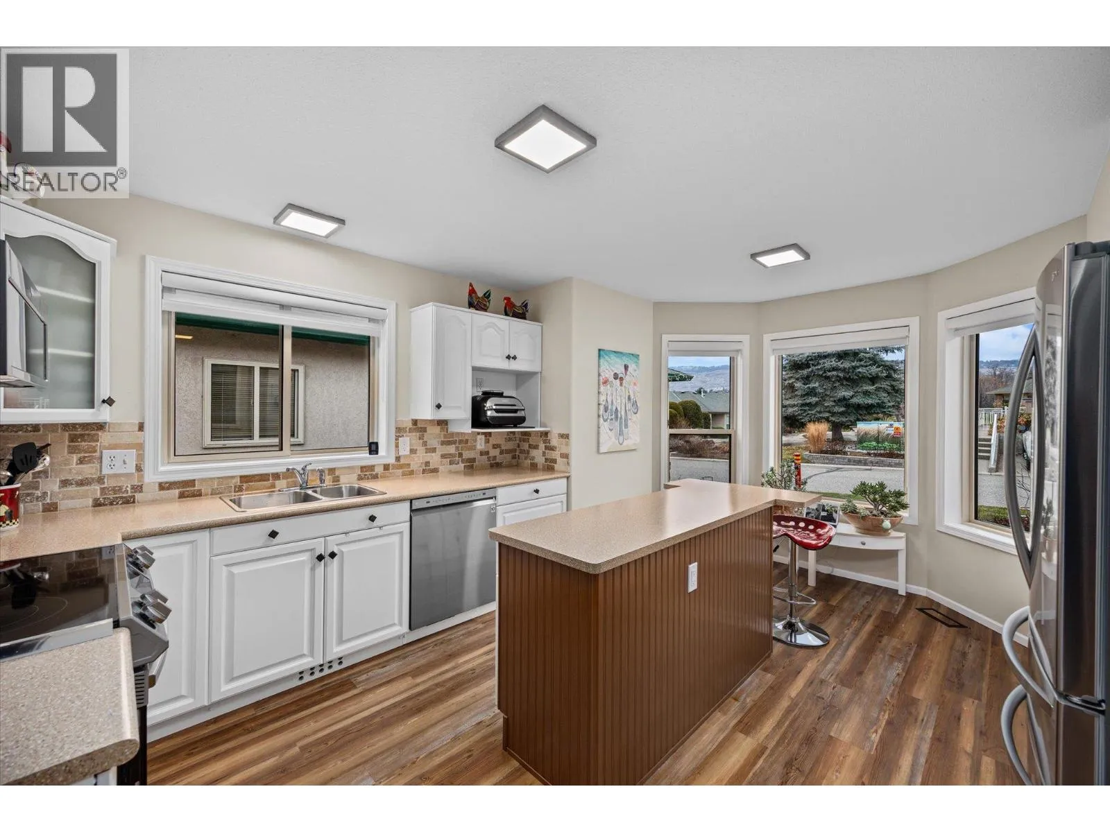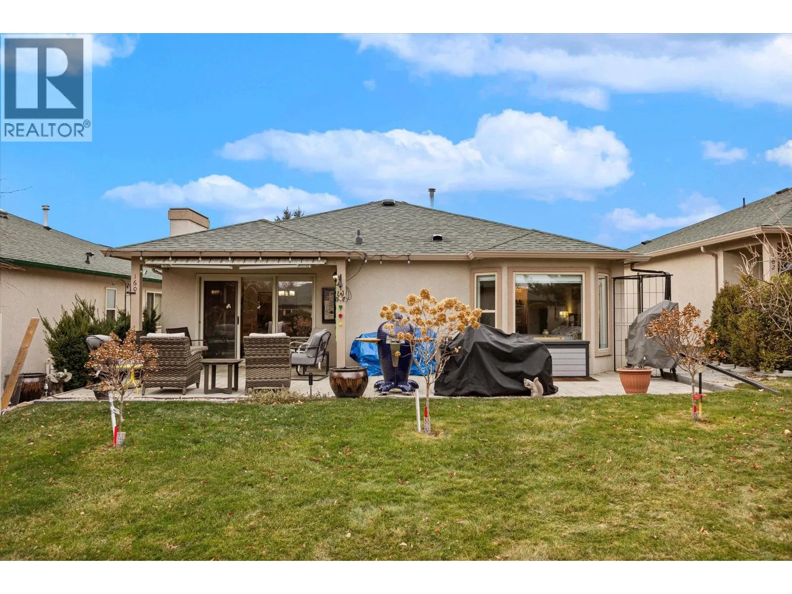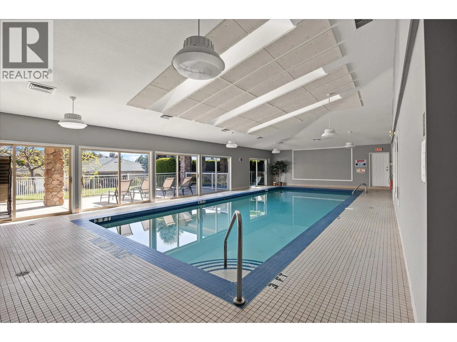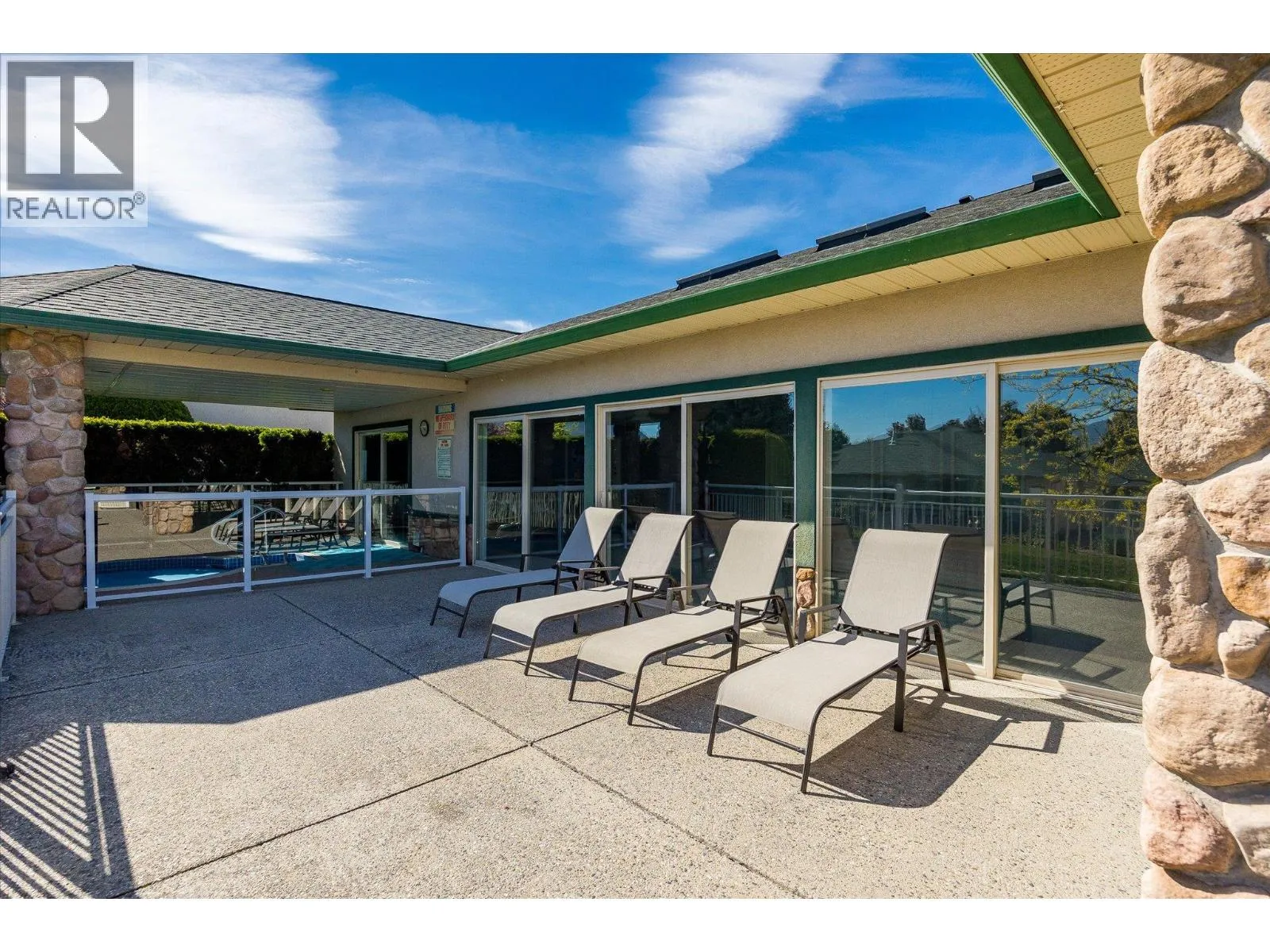 Welcome to one of the most sought after locations in Sun Village, perfectly positioned facing the peaceful water features and directly across from the clubhouse. This beautifully updated two bedroom, two bathroom home offers a rare combination of extensive upgrades, thoughtful design, and low maintenance living in the heart of West Kelowna. The home features a 3 ft crawl space spanning the entire property, providing excellent storage. All plumbing has been replaced with PEX, including the main water line to the street, offering peace of mind for years to come. Inside, pride of ownership is immediately evident with updated lighting, blinds, paint, a refreshed kitchen, and a fully renovated ensuite bathroom. All flooring has been replaced with high end vinyl plank, creating a modern and cohesive feel throughout. Additional highlights include a brand new gas fireplace, new front windows, and new stainless steel appliances. Outdoor living truly shines with a huge patio expansion and renovation that overlooks the stunning water features and lush green space. The spacious primary suite features a walk in closet and an oversized ensuite, creating a comfortable private space. The lease has been fully paid out, representing a benefit for years to come. Residents enjoy exceptional amenities including an indoor pool, hot tub, clubhouse, RV parking, and gated security. This is lock and leave living at its finest, just steps from shopping, medical offices, and transit. (id:27476)
