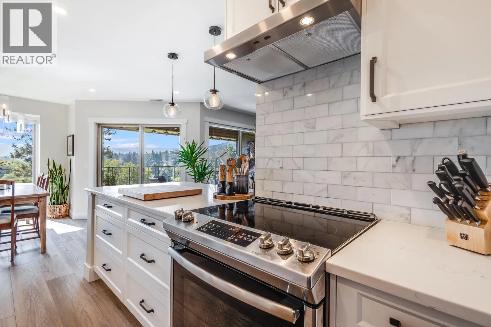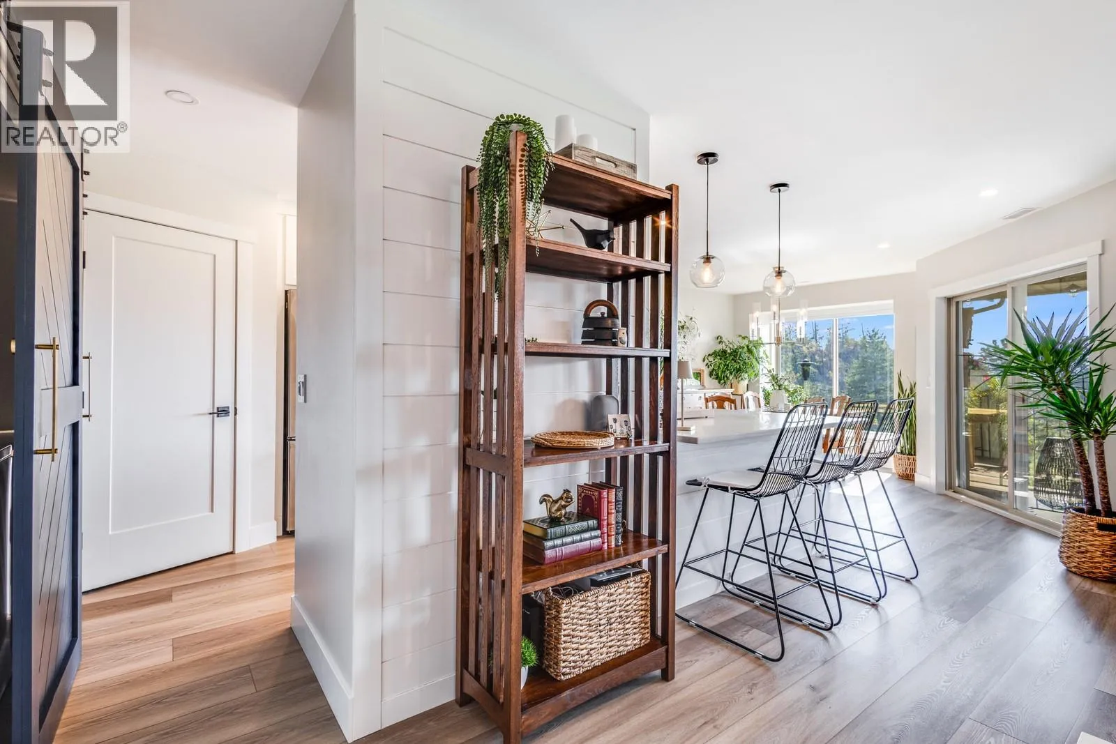 Imagine waking up with the fairways of Shannon Lake Golf Course as your backdropâwithout ever worrying about a lawn mower. This top-floor, 2-bed, 2-bath townhouse offers 1,224 sq. ft. of stylish, stair-free living, fully renovated in 2020 with modern kitchens, bathrooms, flooring, paint, and appliances. The open layout feels fresh yet inviting, while large windows frame peaceful views of the 4th hole. With two covered parking stalls and two storage units, downsizing here doesnât mean compromising on convenience. The small, eight-unit complex is exceptionally quiet and enjoys rare turnover, so opportunities like this donât come often. Golfers will appreciate being steps from the course, and everyone can enjoy nearby walking trails, wineries, and beaches. Whether youâre teeing off or toasting a glass of Okanagan wine, this home sets the scene perfectly. Book your showing todayâproperties this turnkey are like a hole-in-one, rare and worth celebrating. (id:27476)