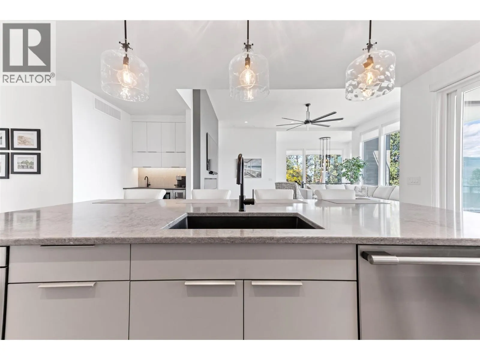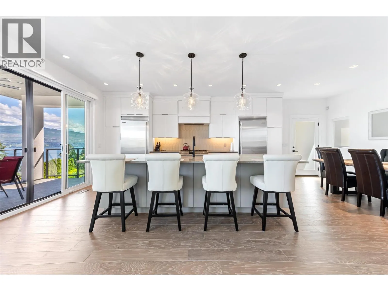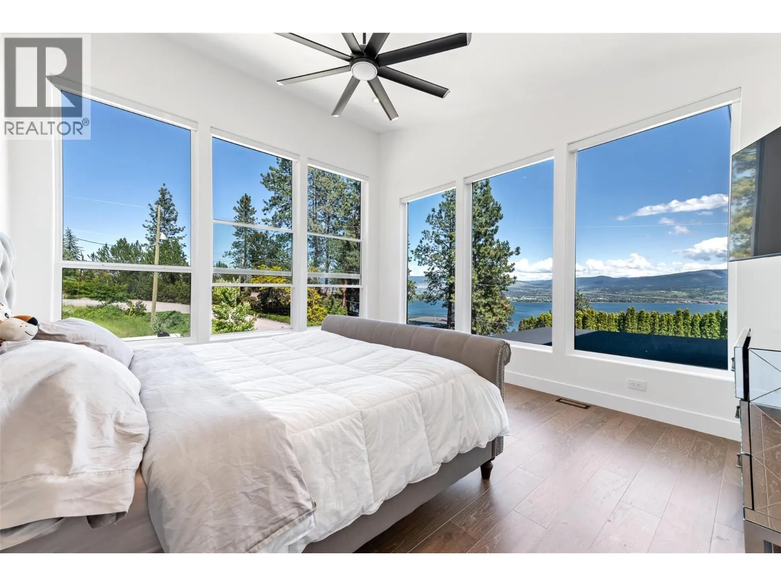 Modern Custom Home with fabulous Lake Views. This stunning 4 bedroom, 4 bathroom home with a legal one bedroom suite is ready for its new owners. This bright and spacious design, with 12 ft ceilings and floor to ceiling windows, allows lots of natural light and great views of Okanagan Lake and Kelowna. The Primary bedroom is complete with a spacious walk in closet, luxurious ensuite bathroom with freestanding tub, walk through dual shower and his and her sinks with ambience lighting to accentuate the vanities. The Kitchen includes granite counters, a coffee/mini bar and stainless steel appliances. The home also features a large roof top patio, a triple tandem garage, and ample parking for your recreational vehicles. Book your showing today. (id:27476)