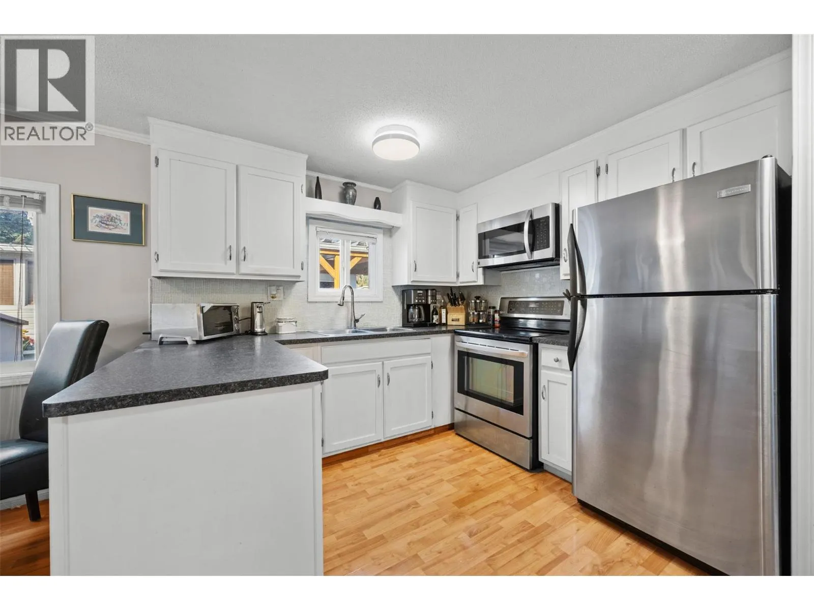 Looking to escape the rental game? Or downsize into a comfortable, well kept home nestled in the middle of one of West Kelownaâs most sought-after parks? Then be sure to take a closer look at this priced-to-sell gem of a home. The floor plan optimizes living space with an oversized living room at the front of the house that gets plenty of natural light. The kitchen is well laid out, has a large double sink and is finished with stainless steel appliances. Laminate flooring throughout makes cleaning a breeze. And to add to the excitement, the furnace/AC was switched to a Heat Pump (15k value) less than a year ago! The bathroom, siding, carport and skirting have all seen recent updates as well. Multiple sheds on the property provide plenty of extra storage and pets (including dogs!) are allowed. This is an 18+ age restricted property. (id:27476)