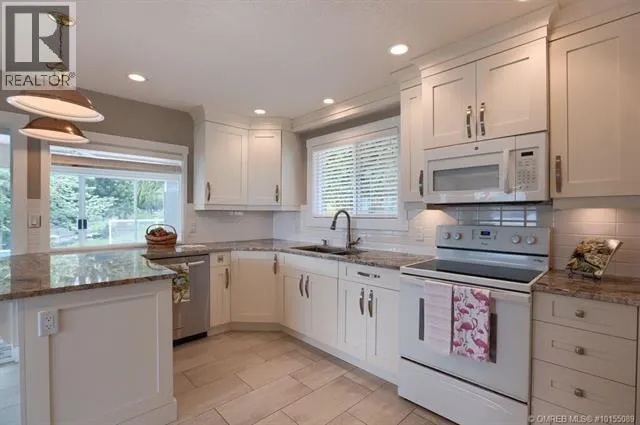 Perched in the highly desirable Gellatly Bay neighbourhood, this property showcases breathtaking lake views and incredible future potential. Surrounded by mature landscaping and natural greenery, this private and peaceful setting offers a rare opportunity to enjoy Okanagan living at its finest. Current zoning allows for a carriage house, with subdivision potential for up to two homes plus a carriage house (buyer to verify). The 4-bedroom home offers endless possibilities and features an updated, modern kitchen with timeless white shaker cabinetry and beautiful stone countertops. The open-concept living and dining area is designed to capture the stunning lake views, with seamless access to the spacious deck, perfect for morning coffee or sunset entertaining. Step outside to enjoy multiple outdoor living spaces designed for relaxation and hosting, including a refreshing pool, outdoor kitchen and BBQ area. The walkout lower level includes three bedrooms, a family room, a full bathroom and a laundry room. A heat pump efficiently provides both heating and air conditioning to the main living areas for year-round comfort. Ideally located on a quiet street just minutes from award-winning wineries, restaurants, and amenities. Enjoy being within walking distance to Willow Beach and the Gellatly Bay Yacht Club. The circular driveway provides ample parking, including plenty of room for boats and RVs. A rare opportunity to secure a property with unmatched views, privacy, and lifestyle. (id:27476)
