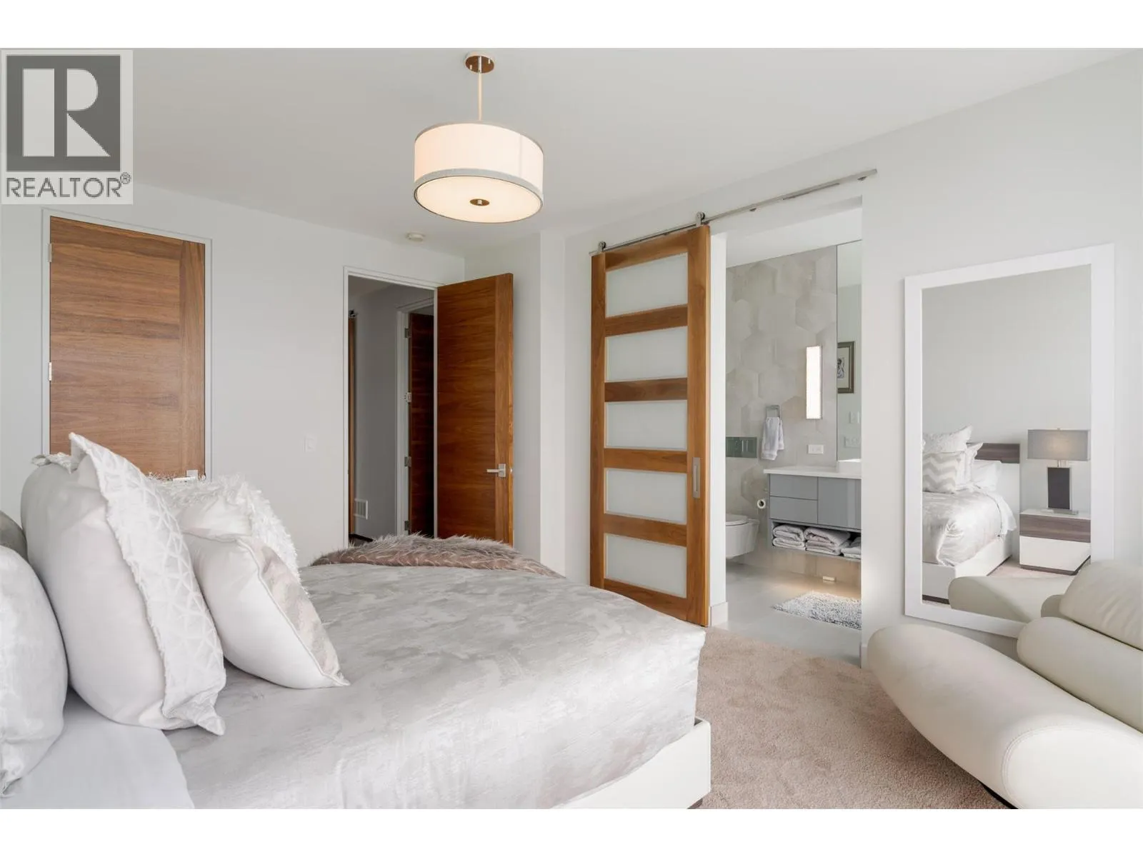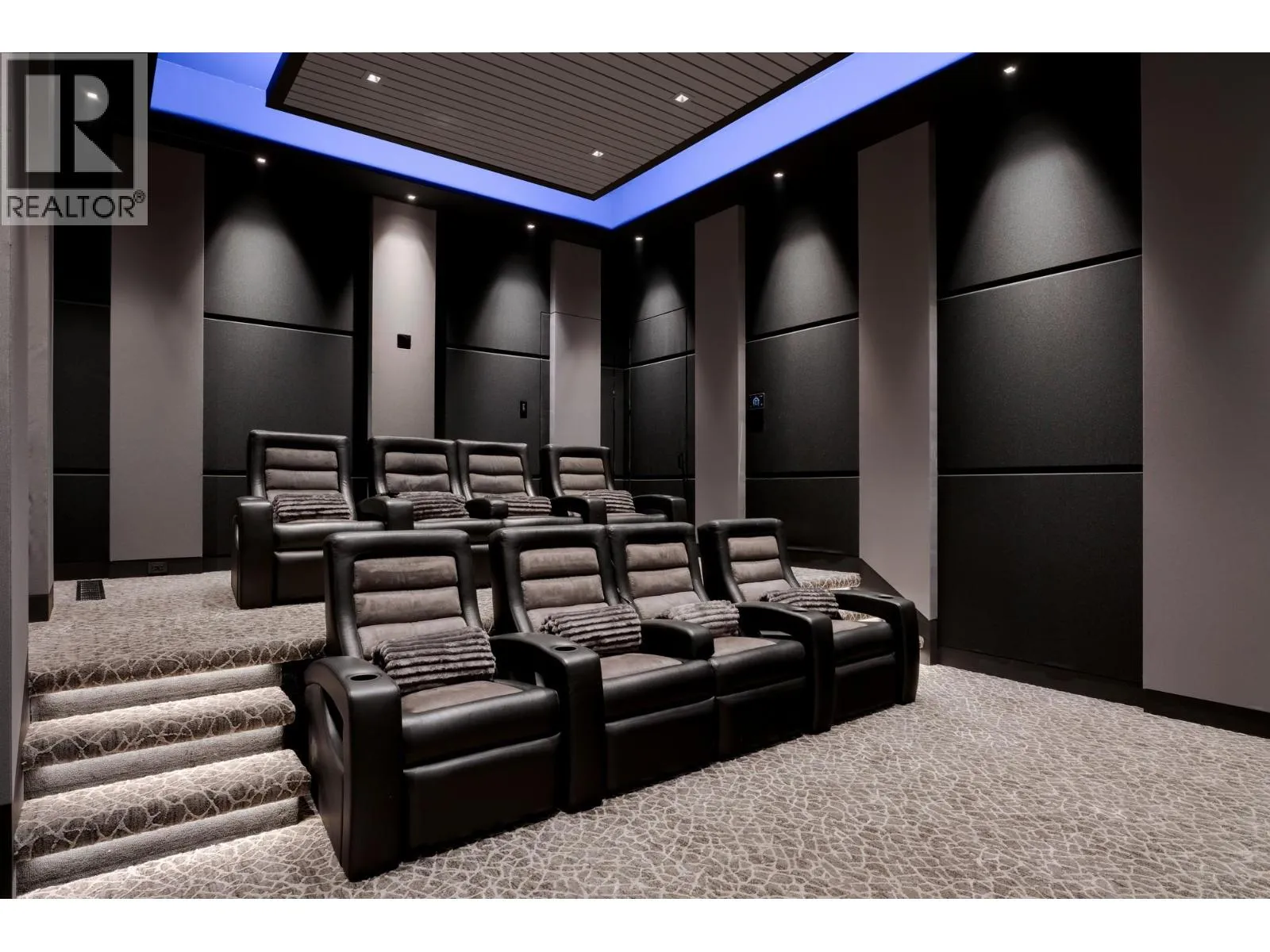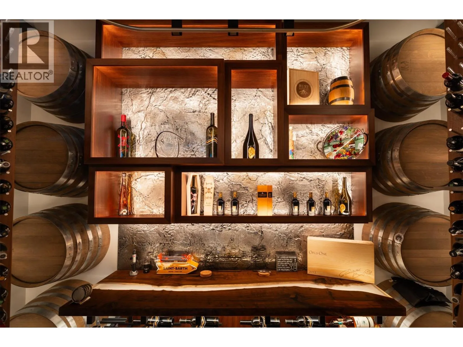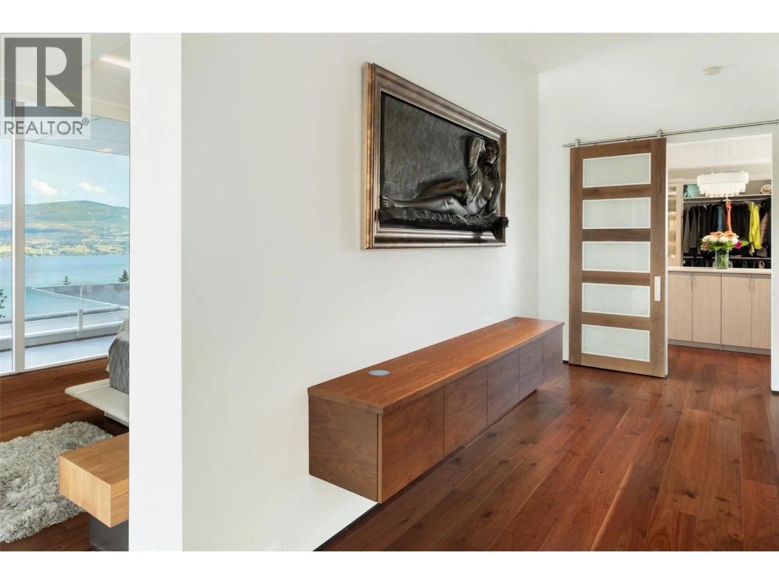 Discover unparalleled luxury at this magnificent custom Okanagan home. As you pass through the gate, you'll immediately be captivated by its design. The modern aesthetic seamlessly integrates the home with its landscaping, creating a harmonious experience. The entry features a mesmerizing floating roof design inspired by a museum in Spain, and light filled courtyard to display custom artwork Inside, entertain at the custom bar, enjoy a cinematic experience in the state-of-the-art home theatre, and store your prized vintages in the 1,500-bottle wine room. For seamless indoor to outdoor living all the sliding doors open to a completely private backyard offering a sensational living experience: prepare a culinary feast in the outdoor kitchen, lounge by the expansive saltwater vanishing edge pool, or soak in the hot tub, all while enjoying the relaxing ambiance of the waterfall and 180-degree views of Okanagan Lake. Take the floating walnut staircase or the elevator upstairs. The primary bedroom is a retreat like no other, with a private patio, luxurious lake view en suite, and a stunning custom closet. Three additional bedrooms each have their own en suite. For the car enthusiast, this home boasts 2 levels of garages with parking for 7+ vehicles. Exquisite finishes include porcelain tile floors, Cambria quartz, &unmatched glass and walnut woodwork by Shawn Truit. This custom home stands as a masterpiece of design and engineering. (id:27476)