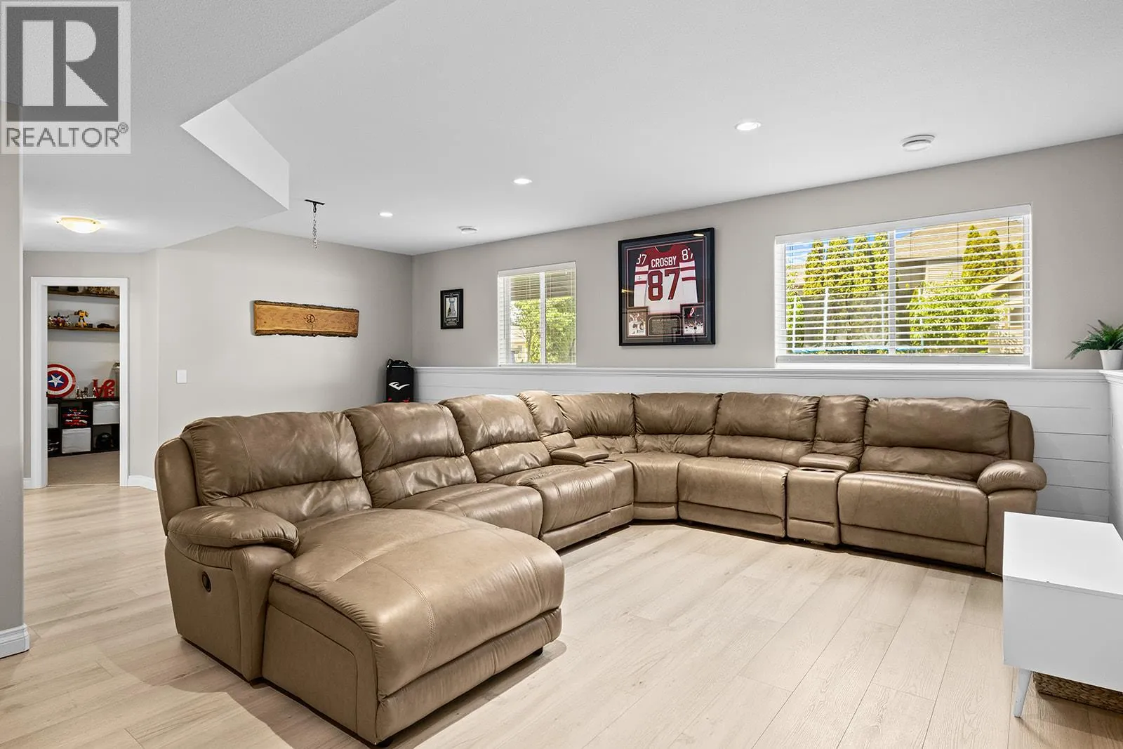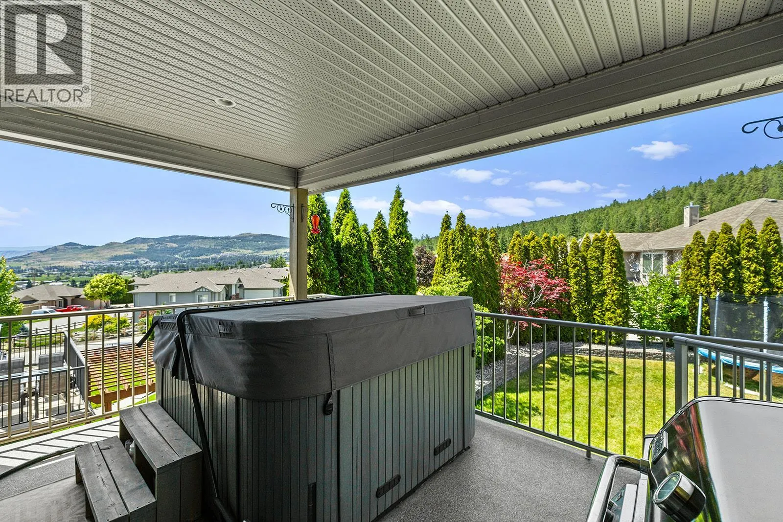 Welcome to your new family haven, nestled on a quiet cul-de-sac in a tranquil neighbourhood, with direct access to endless outdoor adventure. The fully fenced backyard is lined with tall cedars, offering privacy while the kids splash in the pool, bounce on the trampoline (yes, it can stay!) and snack on fresh nectarines, apples, and cherries from your very own fruit trees. Sunbathe on the huge front balcony offering views and space to chat around the fire, or retreat to the covered back deck in your own hot tub. Inside, this bright and airy 5-bedroom, 3-bathroom has been stylishly remodeled with premium finishes throughout such as luxury vinyl plank flooring, quartz countertops, soft-close cabinets, custom wall treatments, glass railings, and under-cabinet lighting. The kitchen has upgraded appliances, walk-in pantry, and a dedicated coffee bar. The cozy living room features a Napoleon gas fireplace with a tile surround. Featuring the ideal family layout that has three bedrooms, laundry, kitchen, and living room on the main, and an additional two bedrooms and a massive rec room downstairs, offering suite potential. Designed for the active Okanagan family, this home provides ample parking, is just steps from hiking and biking trails and is located in the catchment of West Kelownaâs top schools. With its modern upgrades, prime location, and incredible amenities, this perfect family home is the one you've been waiting for! (id:27476)