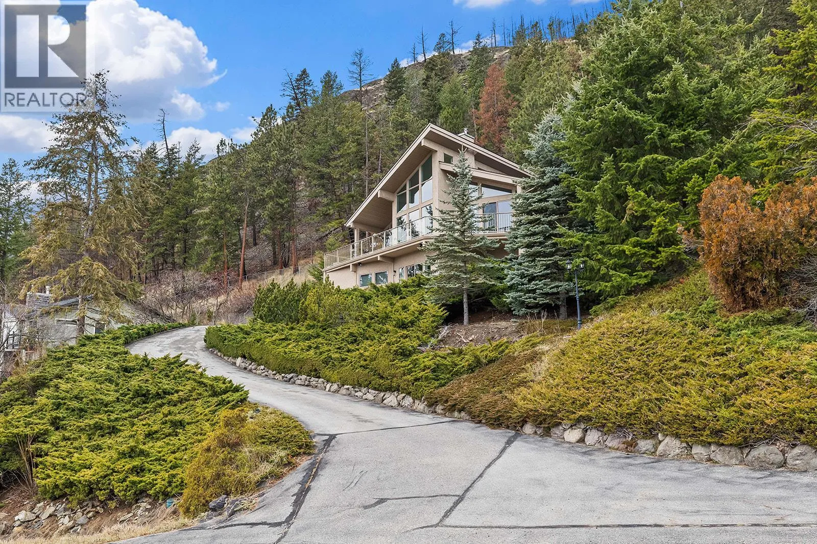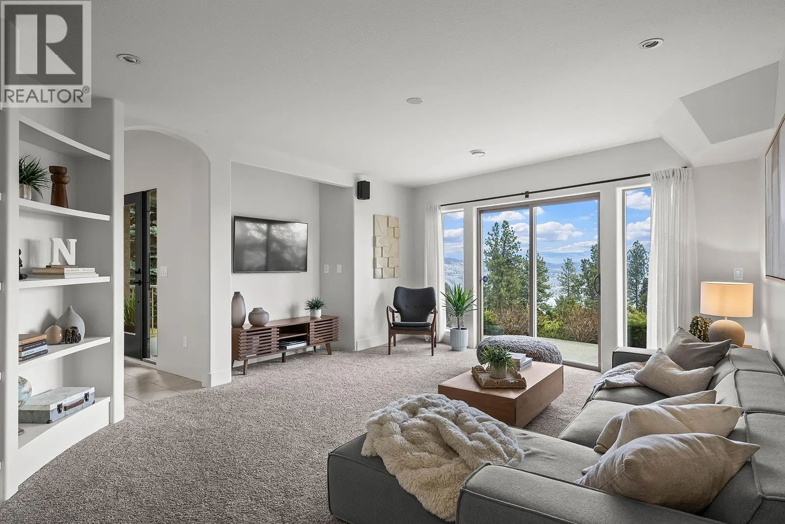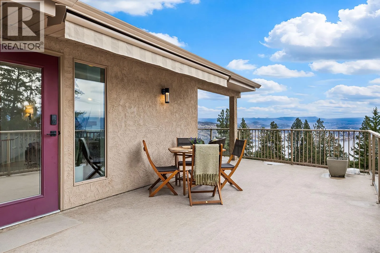 West Coast Contemporary with Panoramic Okanagan Views. Architecturally designed to capture sweeping views of Okanagan Lake, the city lights, and Big White. This beautifully renovated West Coast Contemporary home offers privacy, functionality, and striking design on a .51 acre lot. A private driveway leads to your own personal oasis. This 3 bedroom, 2.5 bath residence features soaring two storey windows and an 18 foot vaulted ceiling in the living room, 11 foot ceilings in the kitchen and bedrooms, flooding the home with natural light and showcasing breathtaking vistas throughout. The main level includes a spacious living area with a gas fireplace, a gorgeous eat-in kitchen with high-end Miele and Bosch appliances, a primary bedroom, an additional bedroom, a laundry shoot in the bathroom, and elegant finishes throughout. The ground level offers a large foyer, laundry room, family room with built-in shelving, home gym, half bathroom, and an additional bedroom ideal for guests or family living. Outdoor living features expansive deck space and multiple lake views. A rare quadruple-car garage plus ample additional parking provides space for vehicles and toys, complemented by high-end air and water purification systems. Over 30 km of hiking and biking trails nearby, boutique wineries minutes away, and Downtown Kelowna just 10 minutes away, this home perfectly blends West Coast style with Okanagan living. This beautifully updated home is a must-see! (id:27476)