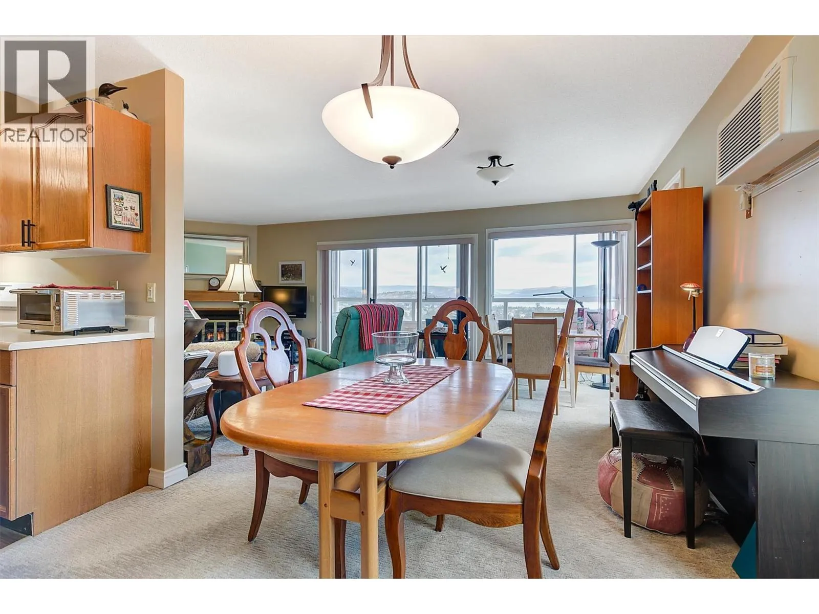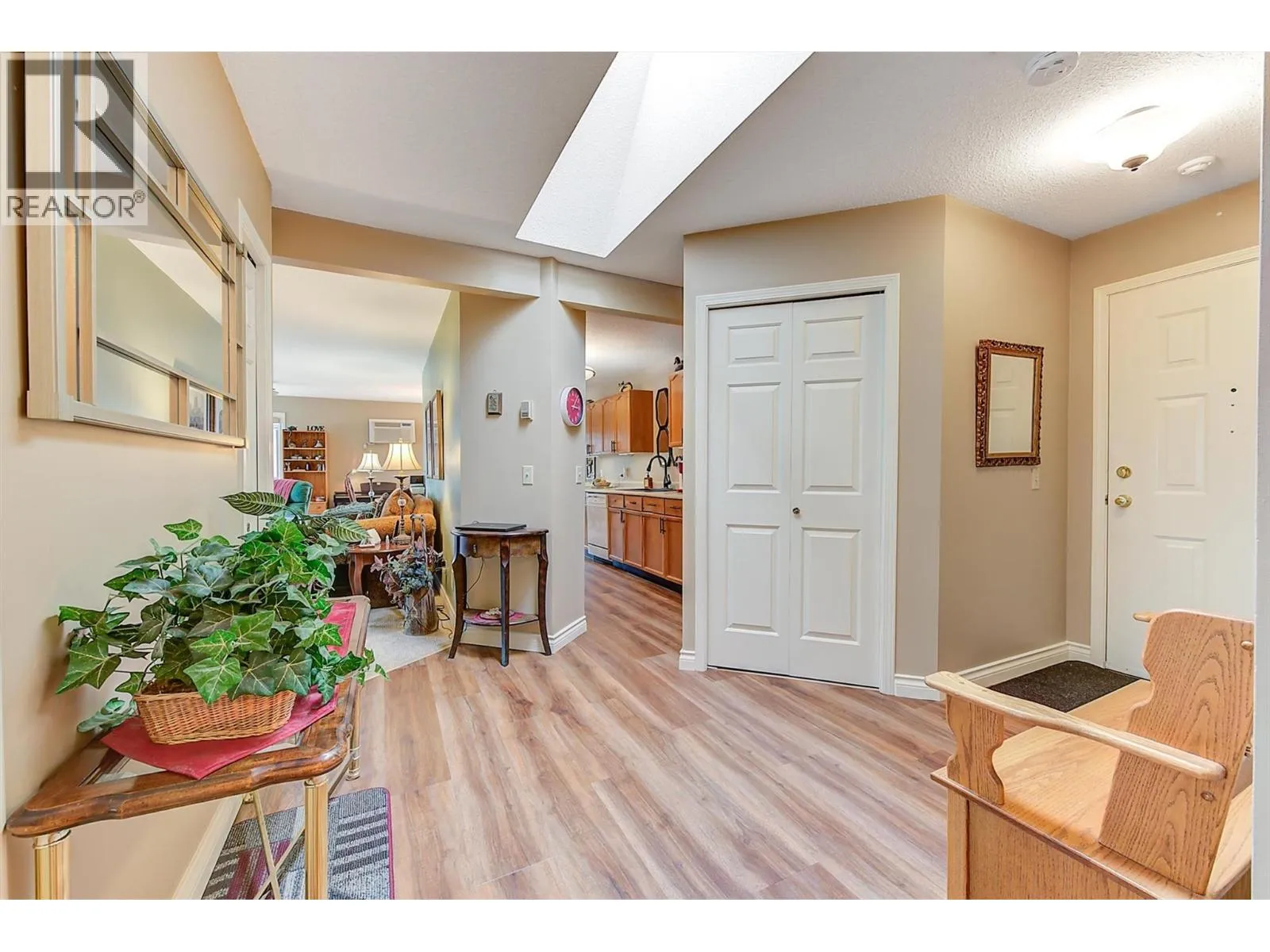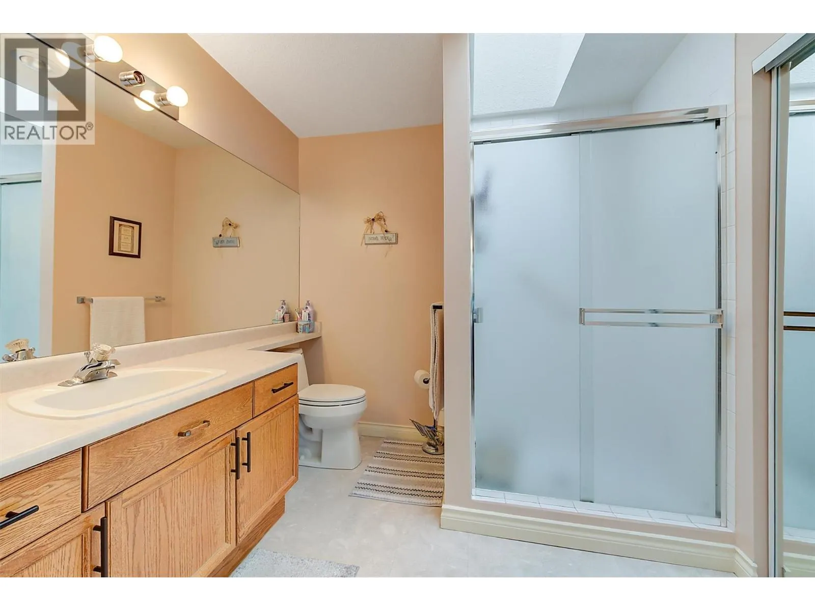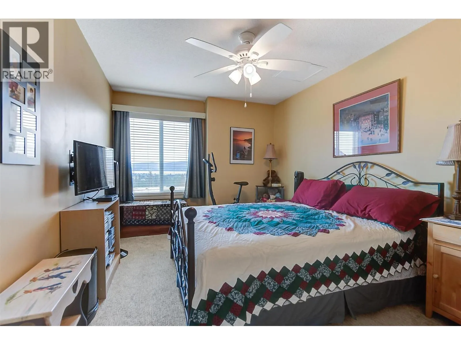Discover serene lakeside living in this updated top-floor corner unit. Nestled in a vibrant 55+ community, this 3-bedroom, 2-bathroom haven blends modern comforts with breathtaking panoramic lake views for effortless retirement bliss. Step into a light-filled sanctuary, where multiple skylights and newer windows flood the space with natural warmth. The spacious living room is a cozy retreat with plush newer carpets, and a charming gas fireplace. The well-appointed kitchen offers generous storage and ample counter spaceâperfect for whipping up gourmet meals or hosting friends. Extend your living to the generous enclosed deck, a four-season haven for savoring those fabulous vistas with morning coffee or evening sunsets, rain or shine. A dedicated patio storage room keeps outdoor essentials handy. Retire to the spacious master suite, featuring a full ensuite, walk-in closet, and serene lake views. Two additional bedrooms provide flexible space for guests or hobbies. This meticulously maintained building, with its robust contingency fund, ensures worry-free peace of mind. Hot water and in-floor radiant heating are included in your strata fees for worry-free living. The complex also features secure underground parking, a workshop space, rentable garden beds, and RV storage. Pet-friendly for your furry companion (one dog or cat up to 14"" at the shoulder). Don't miss this gemâbook your viewing today and make these views your new reality! (id:27476)