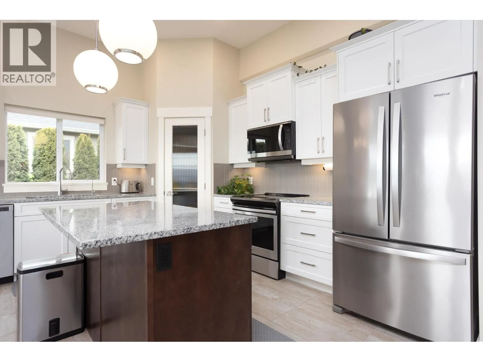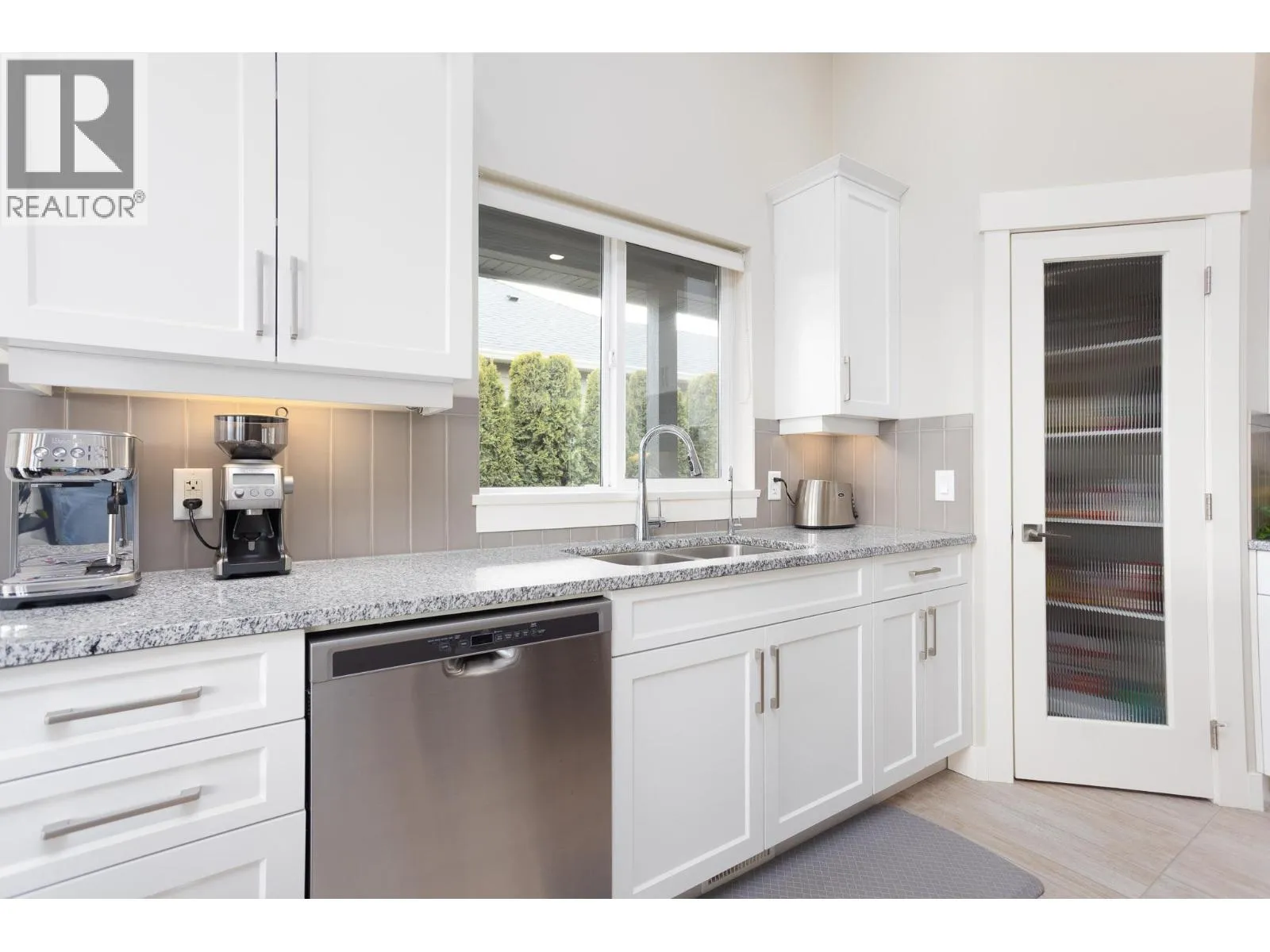 This modern home is set in peaceful Lakeview Heights with a LEGAL 2 BED SUITE mountain views and just a short walk to local vineyards and shopping! Inside you are greeted by hardwood floors and soaring ceilings that span through the open concept living space with large windows and 3-sided gas fireplace. The kitchen has been thoughtfully designed with granite counters, underlit soft close cabinets, walk-in pantry and is plumbed for a gas range. The main level is home to 3 spacious bedrooms including the primary suite with walk in closet and a 5-piece ensuite bath featuring quartz dual sink vanity + tile surround tub/shower combo. Convenient main floor laundry tucked away in the mud room leading to the double garage with built-in vac. Walk straight out to the covered patio with natural gas and continues to the fully fenced, private yard that backs ALR land. Includes large shed for extra storage! Downstairs youâll find a 4th bedroom, large unfinished storage area and another 3-piece bathroom with quartz countertops to match both main floor baths. The 2 bed, 1 bath legal suite has it's own yard and no access to your backyard. It's been finished with extra insulation & SONOpan for sound proofing, separate: electrical panel & hot water. The bright above ground windows, gas fireplace & entry closet are welcome additions. Home was finished with ethernet in all rooms, hi-eff furnace with built in air purifier + cost saving HRV, new driveway extension and 2 security cameras. (id:27476)