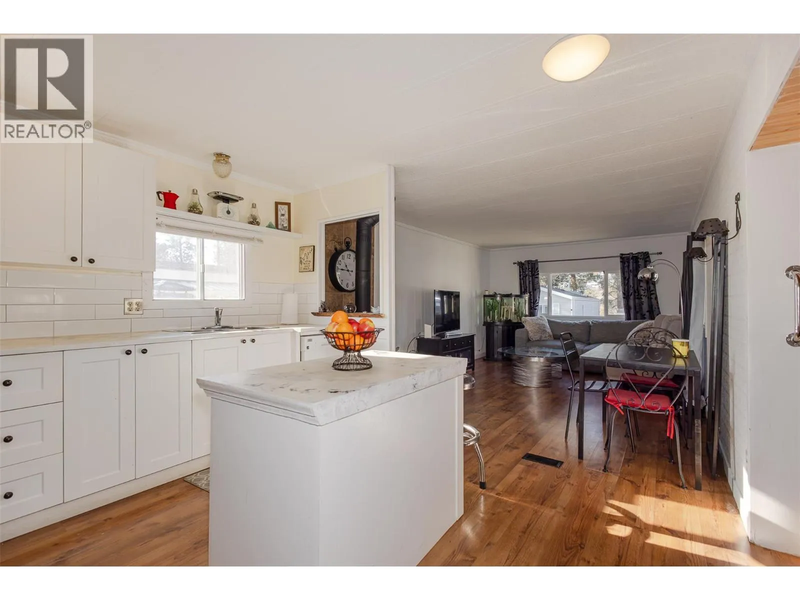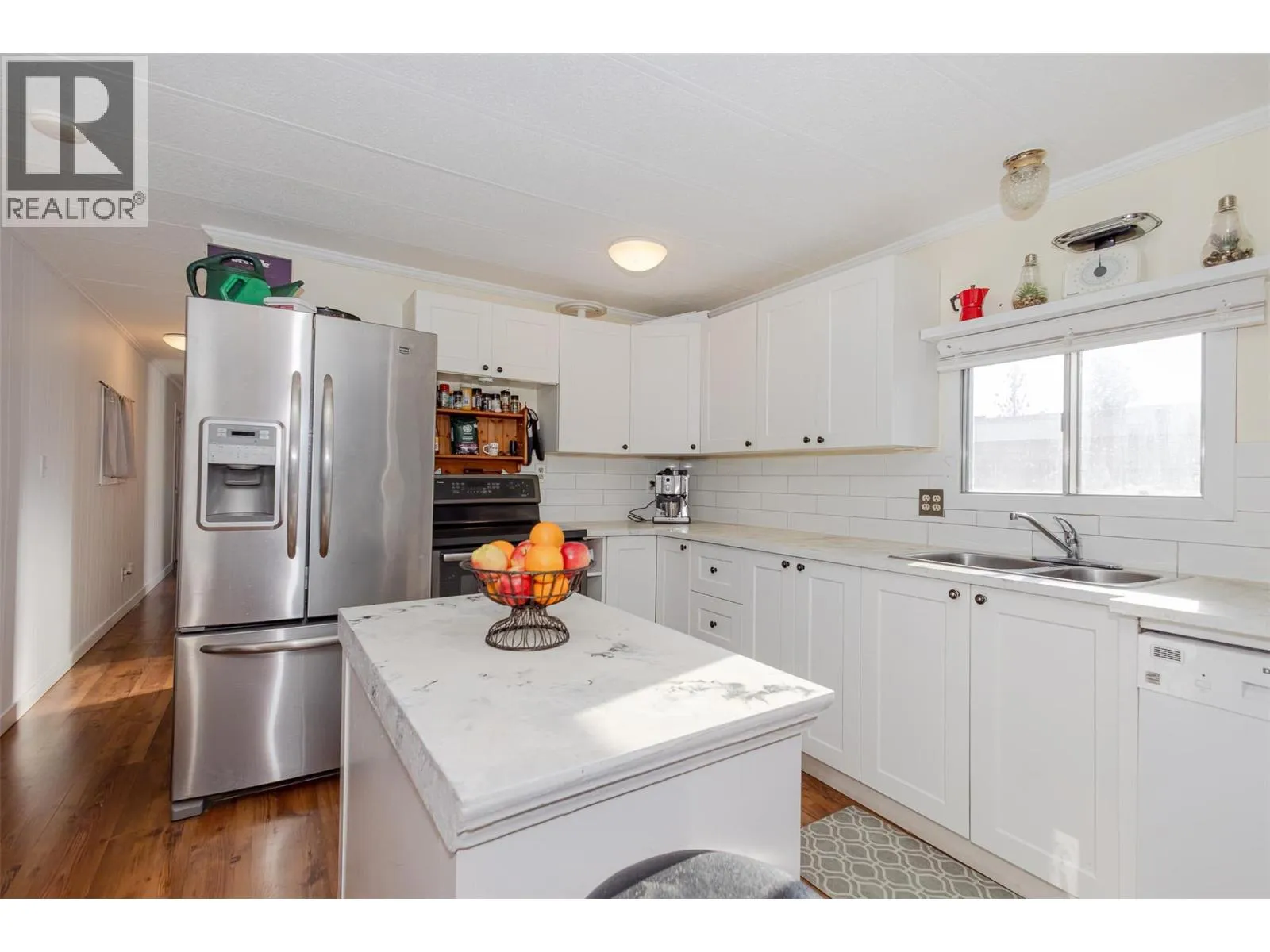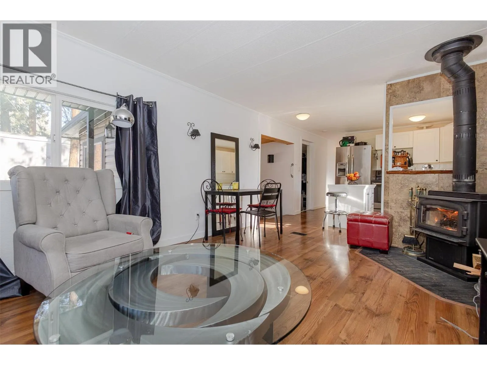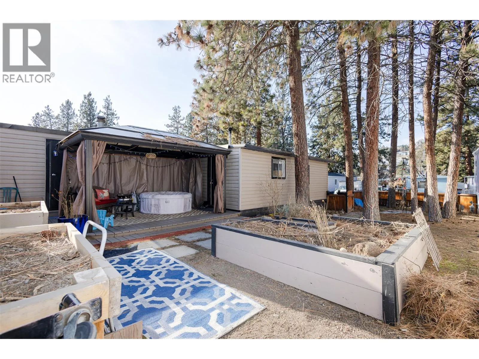 This beautifully maintained 3 bedroom, 2 bathroom home offers the perfect blend of comfort, functionality, and outdoor living â all set against scenic mountain views and exceptional privacy. Step inside to an inviting layout featuring a cozy living space centered around a brand new WET-certified wood-burning stove, creating warmth and ambiance throughout the cooler months. The kitchen has been thoughtfully upgraded with a brand new GE Profile 6-burner convection oven and a stainless steel GE refrigerator, offering both performance and style for those who love to cook and entertain. Major updates provide peace of mind, including a 6-year-old roof and hot water tank. Where this property truly shines is outdoors. The private yard has been transformed into a functional oasis complete with: A covered deck with a brand new 12 ft gazebo Raised garden beds Two storage sheds â one equipped with 100 amp power, ideal for a workshop, hobby space, or additional storage No rear neighbours, backing onto a quiet gravel area with gated access Mature trees adding natural privacy and character Westview Village remains one of West Kelownaâs most sought-after manufactured home communities due to its unbeatable central location â just minutes to schools, transit, golf, restaurants, shopping, beaches, and Okanagan wineries. (id:27476)