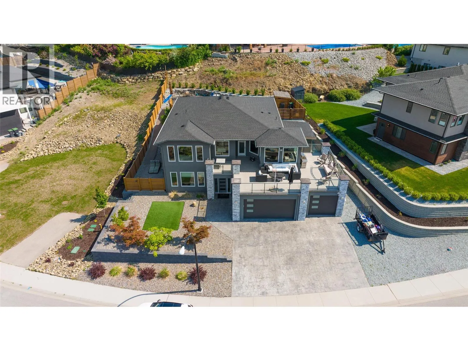 Welcome to 3284 Vineyard View in Mission Hill â nestled within a highly sought-after neighborhood in the community of Lake View Heights and minutes to Mission Hill Winery. With a peak boo lakeview â this stunning basement entry home features four bedrooms plus den in addition to a self-contained one-bedroom legal basement suite. On the entry level, you will find a large foyer offering plenty of room to greet guests, as well as an oversized office, rec room, spare bedroom and full bath. The main living floor has loads of natural sunlight coming in and features a large living room and kitchen space featuring stainless steel appliances, quartz countertops and an island space for entertaining guests. You will also find an oversized deck off the kitchen â perfect for entertaining and watching sunsets. The primary bedroom features a stunning ensuite with a soaker tub as well as a walk in closest with organizer. A huge feature of this house is a backyard with full inground pool and stamped concrete right off the main level. Triple garage and additional parking for the toys! This home is the epitome of move in ready and with the one bedroom legal mortgage helper. (id:27476)