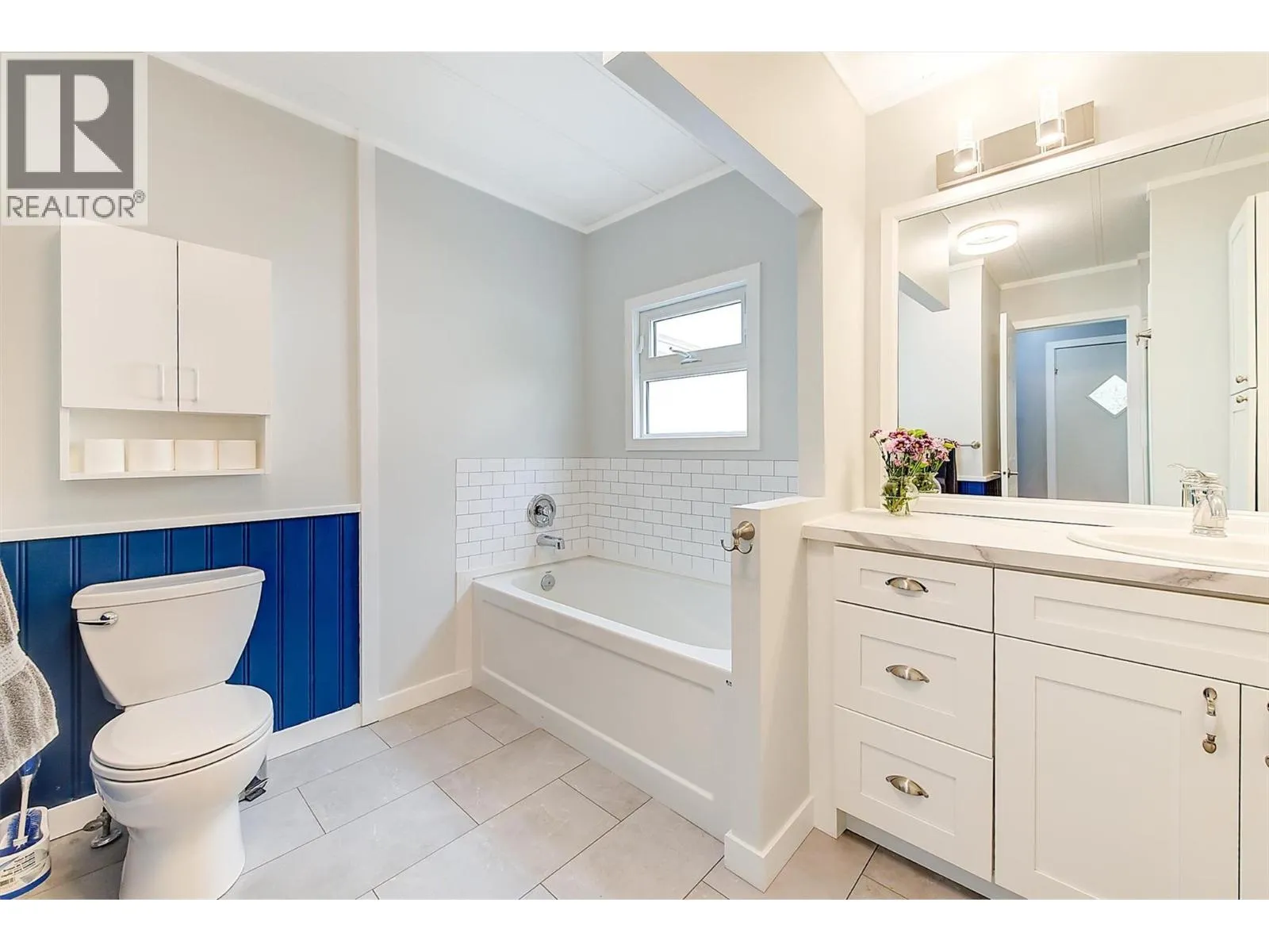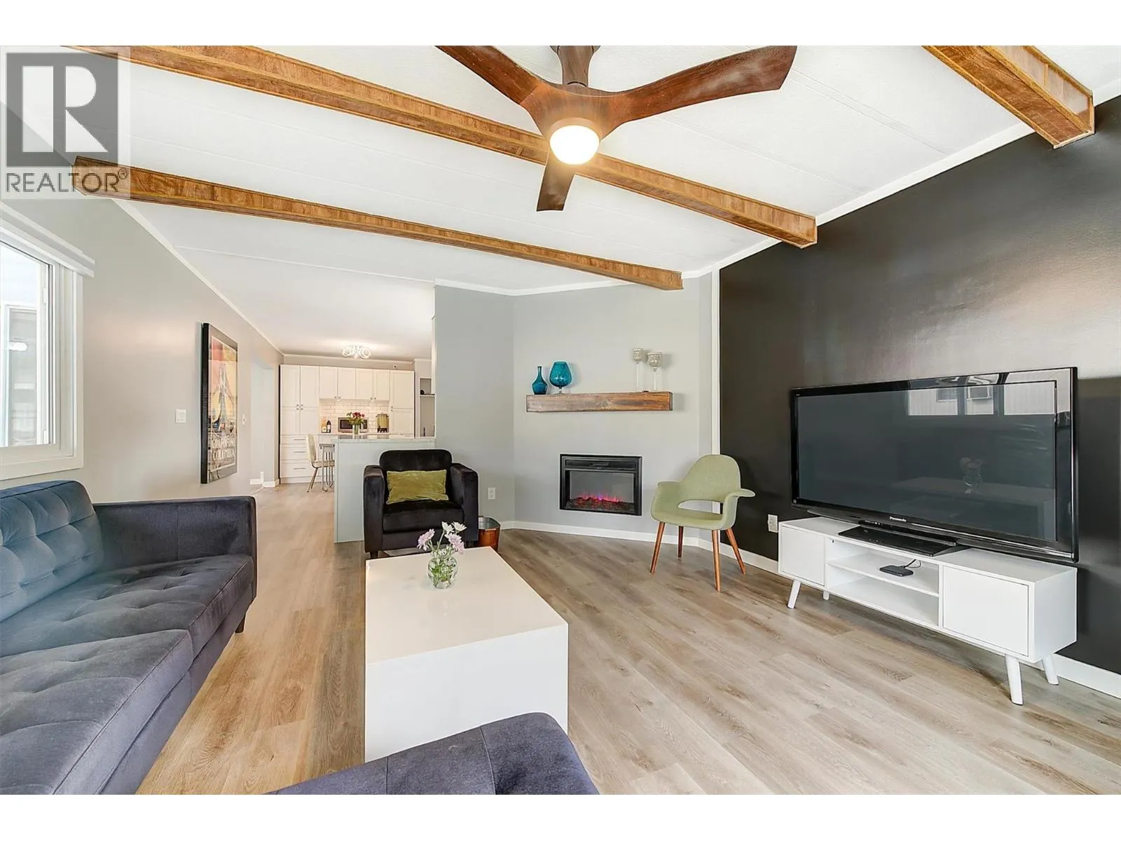 Enjoy that ""New Home Feeling"" when you walk into this fully renovated 3 bedroom home at McDougall Creek Estates â nothing to do but move in and enjoy! Beautifully updated throughout in a contemporary colour palette â kitchen has white shaker cabinets with soft-close, subway tile, and newer appliances including gas stove. AC and furnace replaced in 2021, hot water tank in 2023, lovely electric fireplace, vinyl windows, premium vinyl plank/tile flooring throughout, updated bathroom vanity and glass shower. Covered deck, storage shed and low maintenance yard with car port and ample parking. McDougall Creek Estates is a sought after 45+ community. Pad fees include well water and community septic system. Minutes to parks, restaurants, shopping, and all amenities as well as hiking/biking trails, cross-country skiing, snowshoeing and so much more. Schedule your showing before itâs gone! (id:27476)
