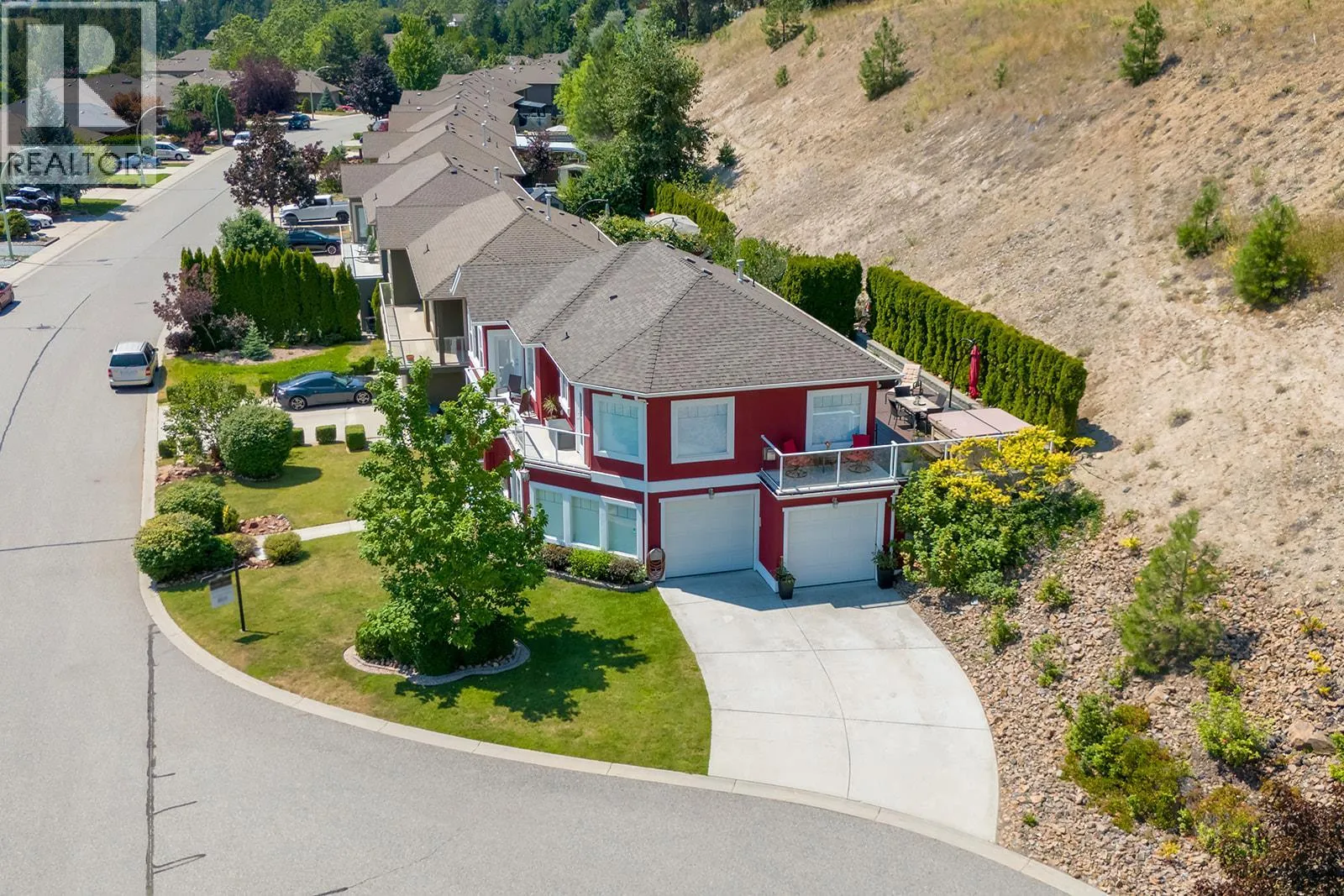 Welcome to this meticulously maintained 3-bedroom plus den residence nestled at the end of a peaceful cul-de-sac. With valley and vineyard views, a private backyard oasis featuring a hot tub, and perched on a corner 0.29-acre lot, this home is not to be missed! Recently refreshed with new exterior and interior paint, the charm is enhanced by decks on three sides, perfect for enjoying panoramic sunrises and sunsets. You'll appreciate the convenience of two gas hook-ups on the front and back decks for evening barbecues. Inside, the bright entrance welcomes you into the home, with a lower level offering a spacious recreation room, a bedroom and bathroom suite, and a den/office just off the entrance - with plumbing roughed in - creating an ideal space for a home-based business! Upstairs, the main living area features a well-appointed kitchen flowing seamlessly into the adjacent dining room. The living room, centred around a cozy fireplace, opens to the tranquil backyard, providing a private retreat with composite decking, garden boxes, and lush cedar trees. The master bedroom offers comfort, with space for a king-size bed, an attached walk-in closet, and a luxurious ensuite bathroom. Explore nearby Rose Valley hiking trails or simply relax and enjoy the peaceful ambiance of your new home! (id:27476)