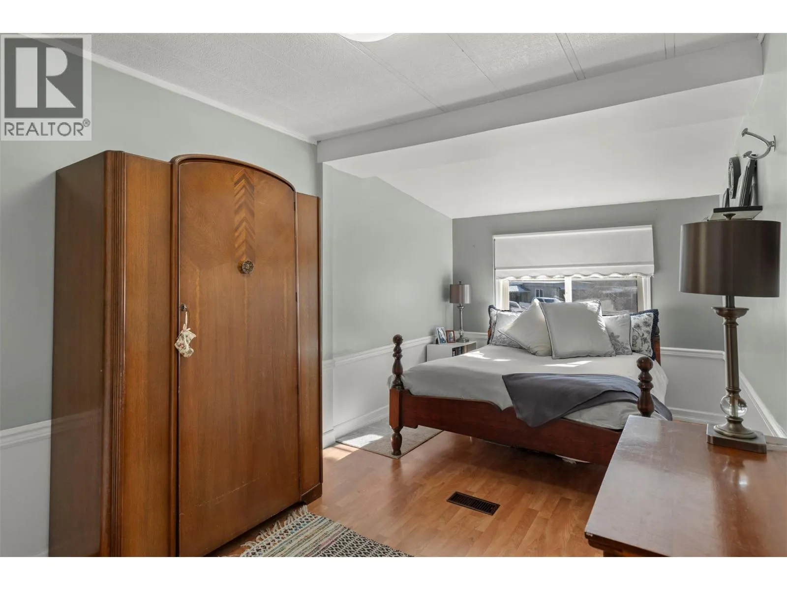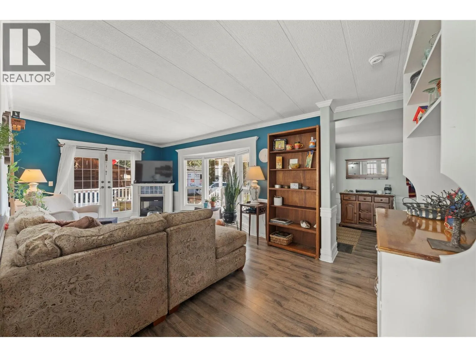 Newly renovated home in a desirable park BEAUTIFUL double wide home boasts 2 bed 2 bath and 1650 sq ft. Step onto your private front veranda thru the french doors and relax with morning coffee and soak up the sun all while enjoying the unparalleled view of Mount Boucherie, and mountains along OK lake. Freshly painted, totally updated with drywall throughout. Living room is large with plenty of light and lovely views from the bay windows and french double door leading to the side deck to the back yard. Appliances are SS and fairly new, fridge (2021), DW (2023), washer/dryer (2020). Both bathrooms have a walk-in glass shower, and the spa like ensuite has a double jetted tub. Master bed has large windows with plenty of light, a large bright office and walk in closer with built in shelves and drawers. The 2nd bedroom is bright and spacious with plenty of light and room for king bed and dressers. A gardeners dream with raised beds along the entire length of the mobile, the front has a beautiful garden bed and side bed alongside a large brick driveway. Newly landscaped private back yard including patio area. Both front and back yards are fenced. Roof is 5 years old, furnace was replaced in 2020 with a high efficiency and windows are new. House is located on a very quiet road in a well managed park. It is in the adult section (19+). Close to shopping, wineries, beaches, and hiking trails. 2 Pets welcome without size limits, with park approval. (id:27476)