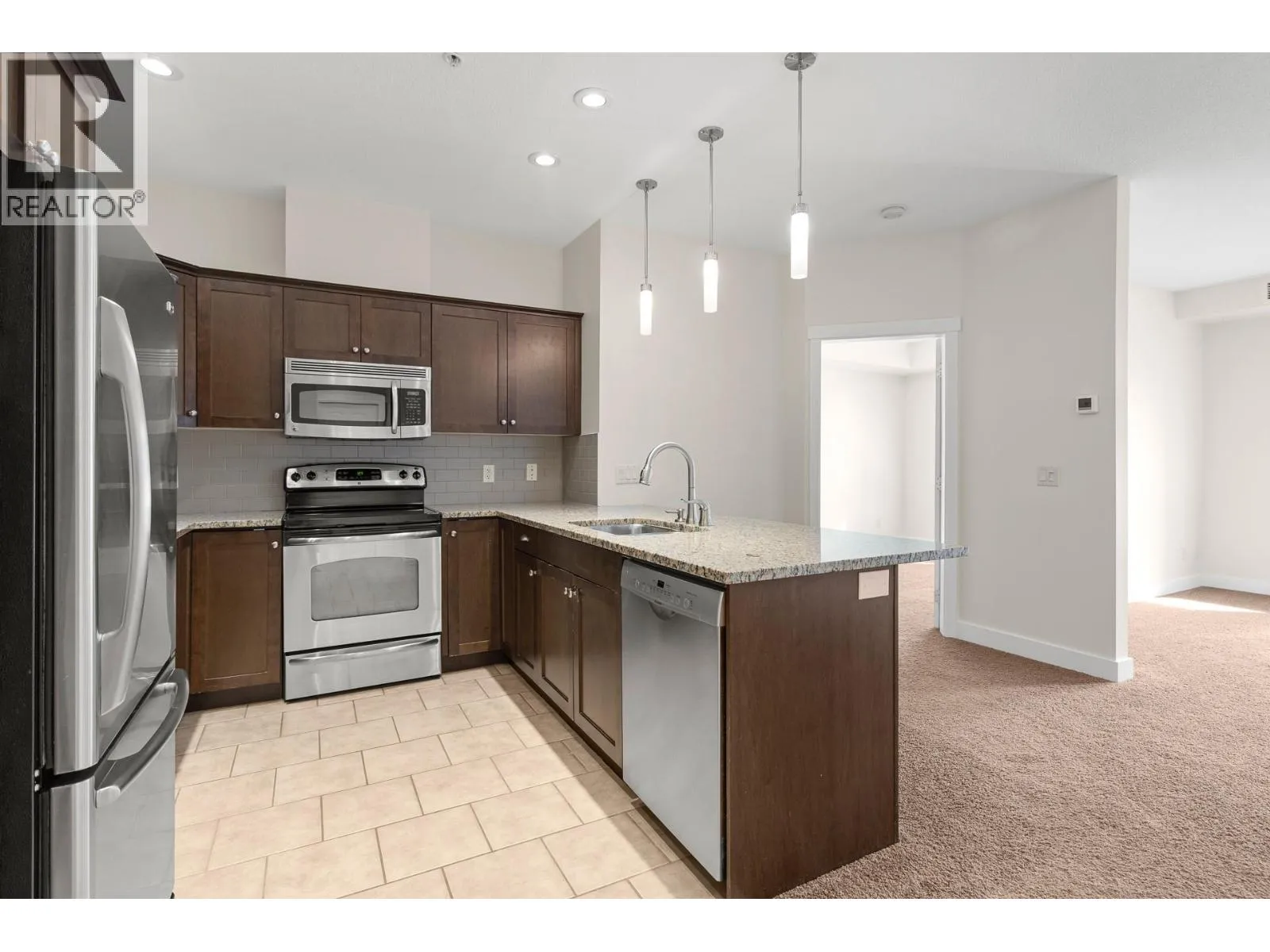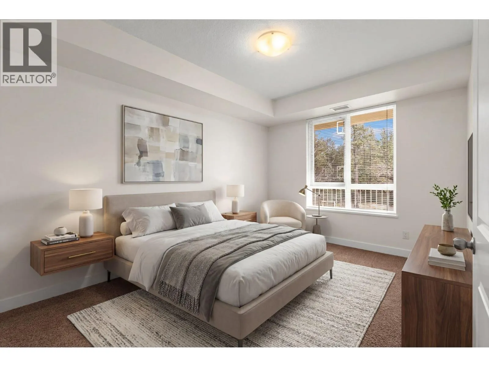 Beautifully positioned 2 bed, 2 bath home overlooking greenspace, offers tranquility and natural light. Well designed floor plan provides comfortable separation between bedrooms, ideal for families, guests or a home office setup. Kitchen flows into the living and dining areas, creating functional space for everyday living and entertaining. Step out to the large deck and enjoy the peaceful view. Features a spacious primary bedroom with private ensuite. Second spacious bedroom on separate sides of the unit. One covered parking in secure underground garage and a large storage locker located on the same floor as the unit and enjoy the outdoor pool. Pet friendly building allows cats or dogs. Close to parks, walking paths and everyday amenities, this home offers a relaxed lifestyle and practical comforts. (id:27476)