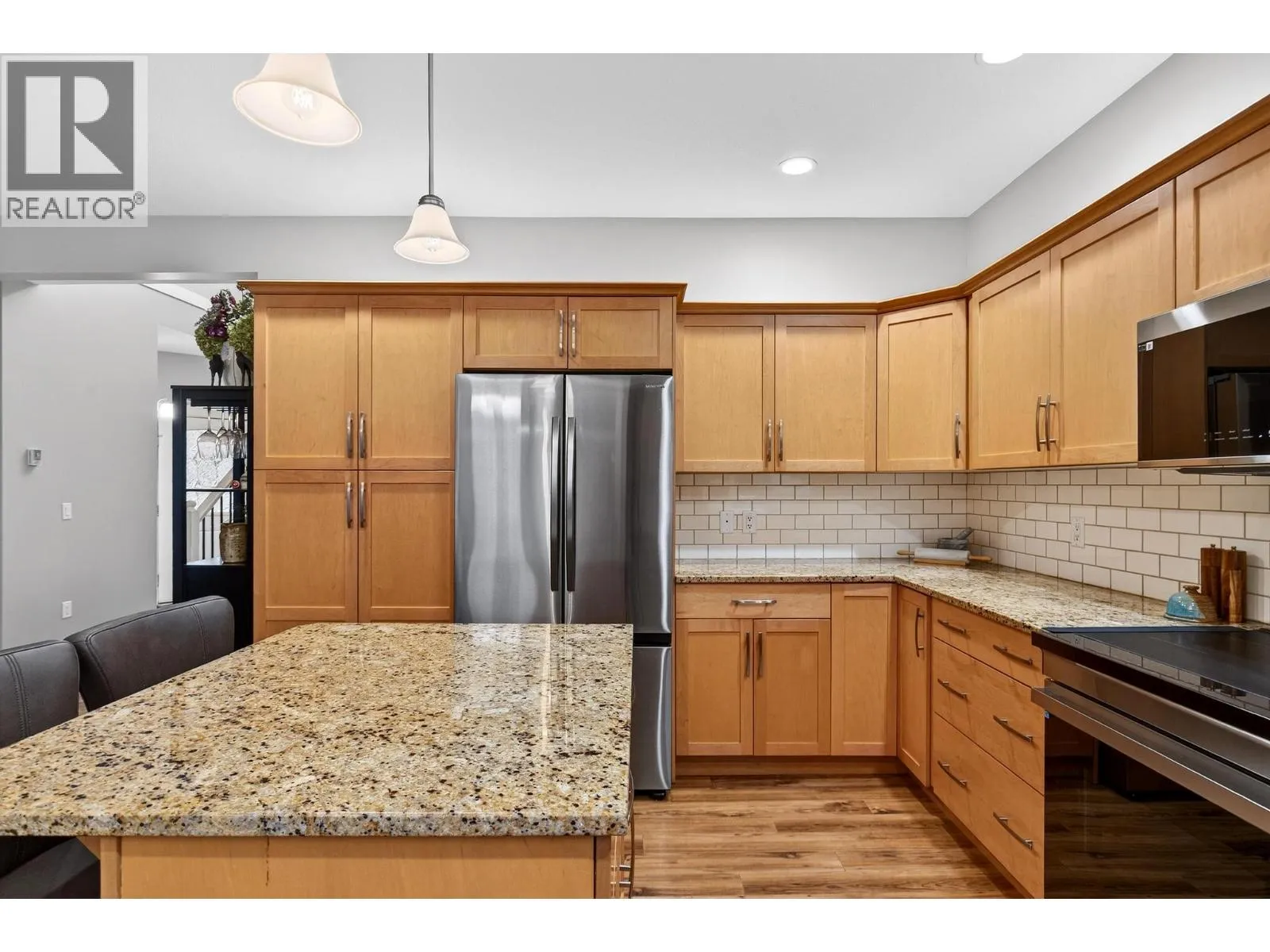 Tucked into the family friendly community of Creekside Park, this 3 bedroom plus office home offers over 2,500 sq ft of finished living space on a quiet no-through road close to parks and trails, with convenient access to everyday amenities in West Kelowna. The main level features a bright open-concept kitchen, dining, and living area with vaulted ceilings and a fireplace, flowing to the patio for comfortable outdoor living. The kitchen includes granite countertops and updated appliances, and a main floor office provides flexible workspace. Upstairs are three bedrooms, including a spacious primary suite with tray ceilings, a walk-in closet, and ensuite. The home has been freshly painted, and the recently completed basement offers a large recreation room, new bathroom, and substantial pantry/storage space. An attached double garage adds convenience, and the fenced backyard offers space for entertaining, pets, or play. Strata covers major exterior components including roofing, siding, gutters, and windows. Along with maintenance including landscaping, snow removal, and window cleaning, strata also pays for the home insurance as well; supporting a low-maintenance lifestyle for the owner with greater predictability for upkeep. An exceptional home in a fantastic community. (id:27476)