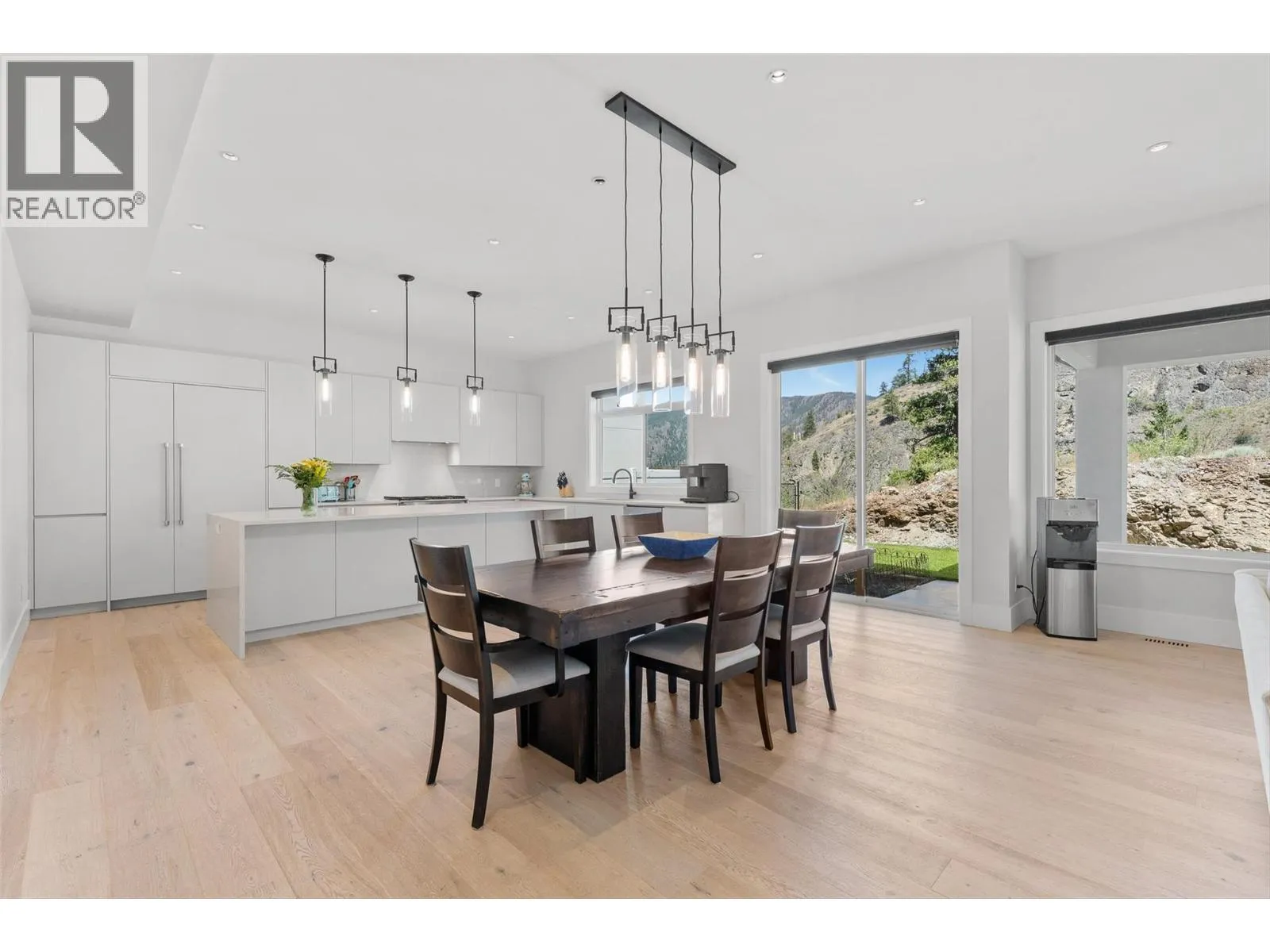 Welcome to Your Dream Home in Vineyard Estates. Step into this beautiful modern home located in one of West Kelowna's most sought-after neighborhoods, Vineyard Estates. As you enter through the foyer, you'll be captivated by the soaring ceilings & exquisite custom lighting. The great room beckons with its stunning floor-to-ceiling fireplace & large windows that bathe the space in natural light. The dining area flows effortlessly into a gourmet kitchen, equipped with a top-of-the-line Fisher & Paykel appliance package & a spacious pantry. Sliding glass doors lead you to a generous covered patio & a lovely backyard, ideal for outdoor gatherings. The main level features a versatile bedroom that can be used as an office, along with one of the 2 primary bedrooms, complete with a spa-inspired ensuite that promises relaxation. On the upper level, you'll find 3 additional bedrooms, including the second primary suite, which offers lake & Valley views. This upper level also boasts a sprawling lounge & recreation area, perfect for entertaining, along with a well-appointed wet bar. Step outside onto the expansive patio, providing a perfect mix of open & covered spaces to enjoy the outdoors. With an oversized triple garage & plenty of exterior parking, convenience is key. Nestled against a beautiful ravine & Mt. Boucherie Park, this property offers a peaceful retreat with endless trails right at your doorstep. Plus, you're minutes away from walking trails, wineries, & the lake. (id:27476)