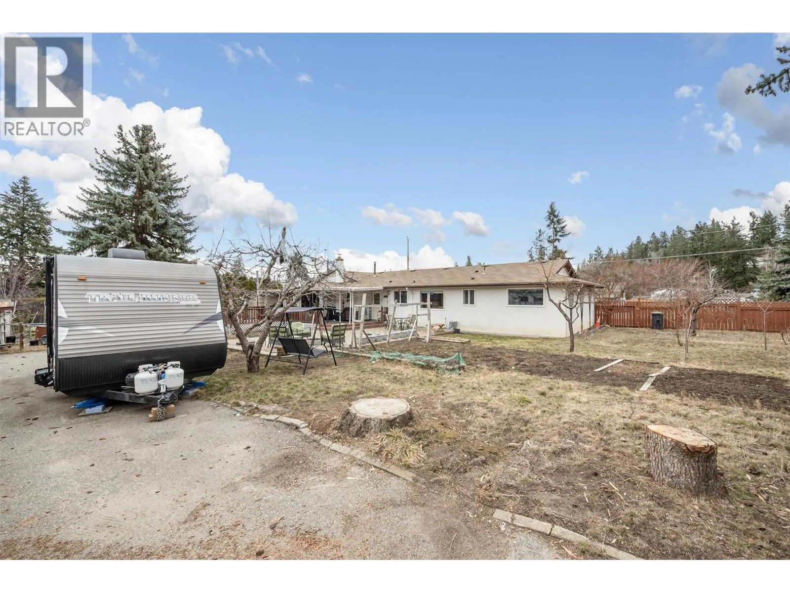 LARGE FLAT 0.32 Acre Property, 4 Bed Home RV Parking under $800k Located on a quiet family-friendly street close to schools, this spacious 4-bedroom, 3-bathroom home sits on an exceptional 0.32 acre corner lot, offering privacy, flexibility, and future development potential including carriage home possibilities. Inside, the home features soaring ceilings, rich hardwood flooring, and a bright open-concept living space that flows seamlessly onto a large semi-covered deck. The main level offers two oversized primary bedrooms with updated ensuites, plus two additional bedrooms and a full updated bathroom, creating an ideal layout for families. The kitchen offers generous prep space and presents an excellent opportunity to customize to your own style. Downstairs youâll find additional unfinished flex space ready for a media room, gym, kidsâ play area, or additional storage. Step outside and discover a true backyard retreat. Enjoy evenings around the fire pit, harvest from mature fruit trees, and unwind in your authentic wood-burning outdoor sauna. The large lot also offers RV parking, a second driveway, and excellent potential for future development, making this property both a comfortable family home and a long-term investment. Recent updates include: ⢠Hot water tank (2023) ⢠Washer, dishwasher & fridge (2024) With space, versatility, wellness features, and rare lot size, properties like this are increasingly hard to find in West Kelowna. (id:27476)