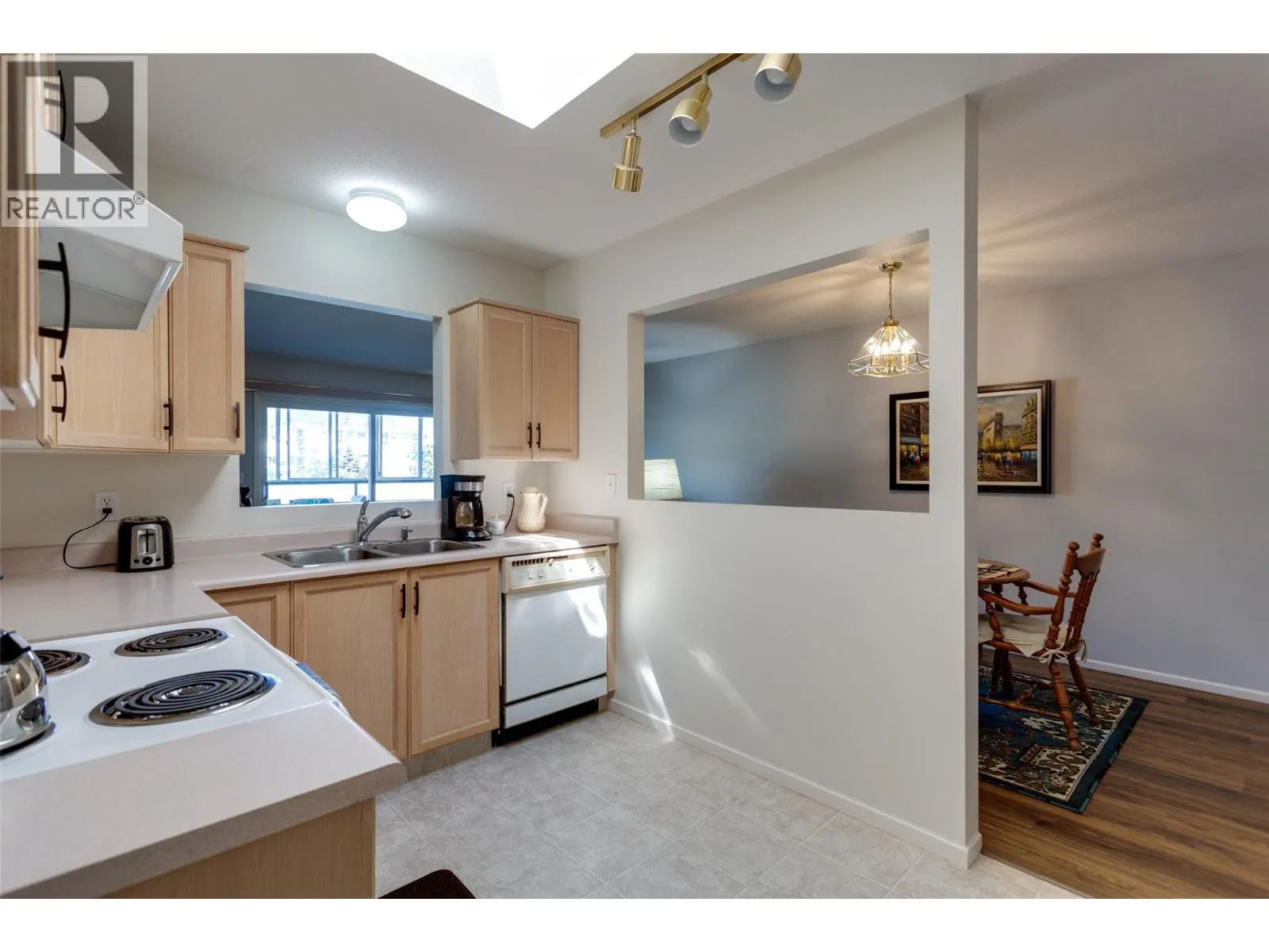 Immaculate two bedroom condo in desirable Linden Estates. Low strata fees of only $390 and open RV parking makes this apartment the perfect downsize. Walk to shopping, dining and medical or take a short drive to the lake. This 1073 square foot condo boasts all new vinyl planking throughout most of the home, newer appliances and fresh paint through out. The new wall A/C unit keeps the space nice and cool and the skylight allows for ample natural light. Enjoy your enclosed deck all year around. It even has a small outside BBQ space so you can do all your cooking outdoors if you like! Recent updates to the complex include a new roof, new elevator and new garage doors. Rentals are now allowed and one cat or dog up to 14"" at the shoulder. Call today for your personal tour! (id:27476)