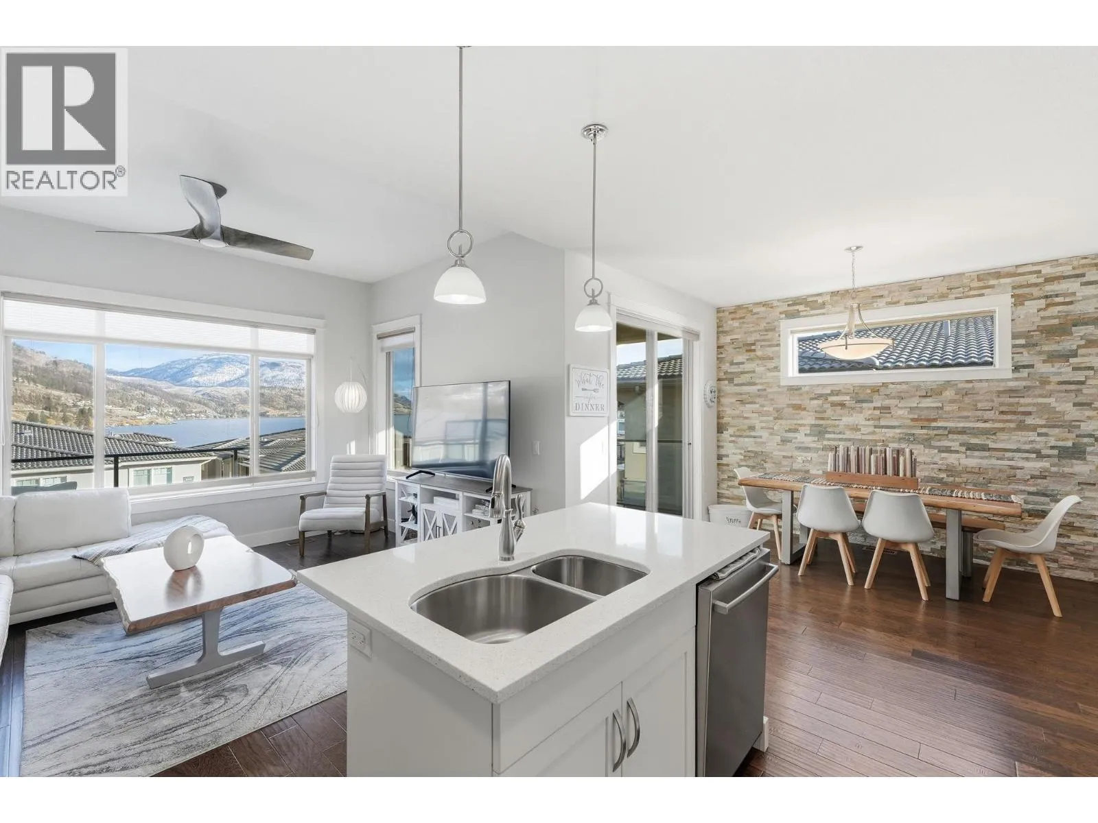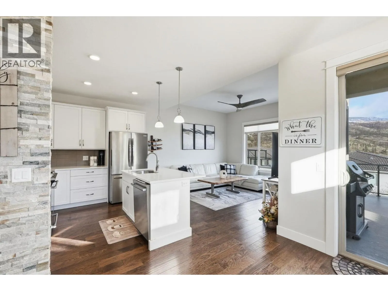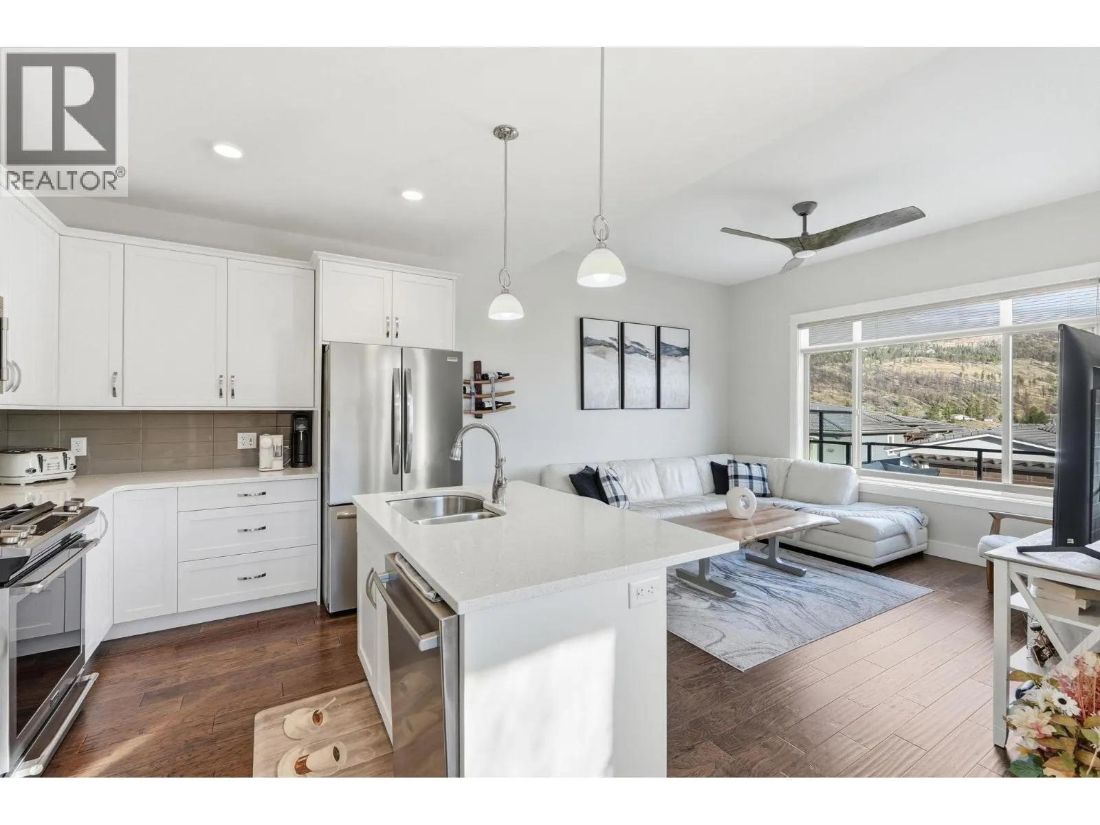 Your day begins with sunshine spilling across the lake in the sought-after West Harbour community. From the moment the morning starts, itâs easy to see why people love living here. Step out onto your deck to take in stunning lake views while neighbours stroll by with their dogs & the quiet energy of the neighbourhood begins to build. This 3-bedroom villa welcomes the day with bright, open living spaces. Recently upgraded engineered hardwood flooring runs through the main areas, while stylish stone walls add texture to elevate the space. Large windows keep the lake views front and centre, connecting the home to its incredible surroundings. By mid-morning, the activity in West Harbour picks up! You pick: a run along the scenic pathways or a friendly match of pickleball. Kids head to the sports court to play & others head to the private beach to launch a paddle board or jump in for a refreshing swim. When the Okanagan sun turns up the heat, the community outdoor pool is the perfect place to cool off and relax. Thereâs no yard work slowing the day down, either! Afternoons roll into evening as friends gather, the BBQ gets going, and the patio becomes the best seat in the house to watch the sky change colour over the lake. In this dog-friendly community known for its welcoming neighbours, evenings often turn into spontaneous visits & shared sunsets. From the first coffee of the morning to the final glow of an Okanagan sunset, life in West Harbour is all about enjoying the moment. (id:27476)