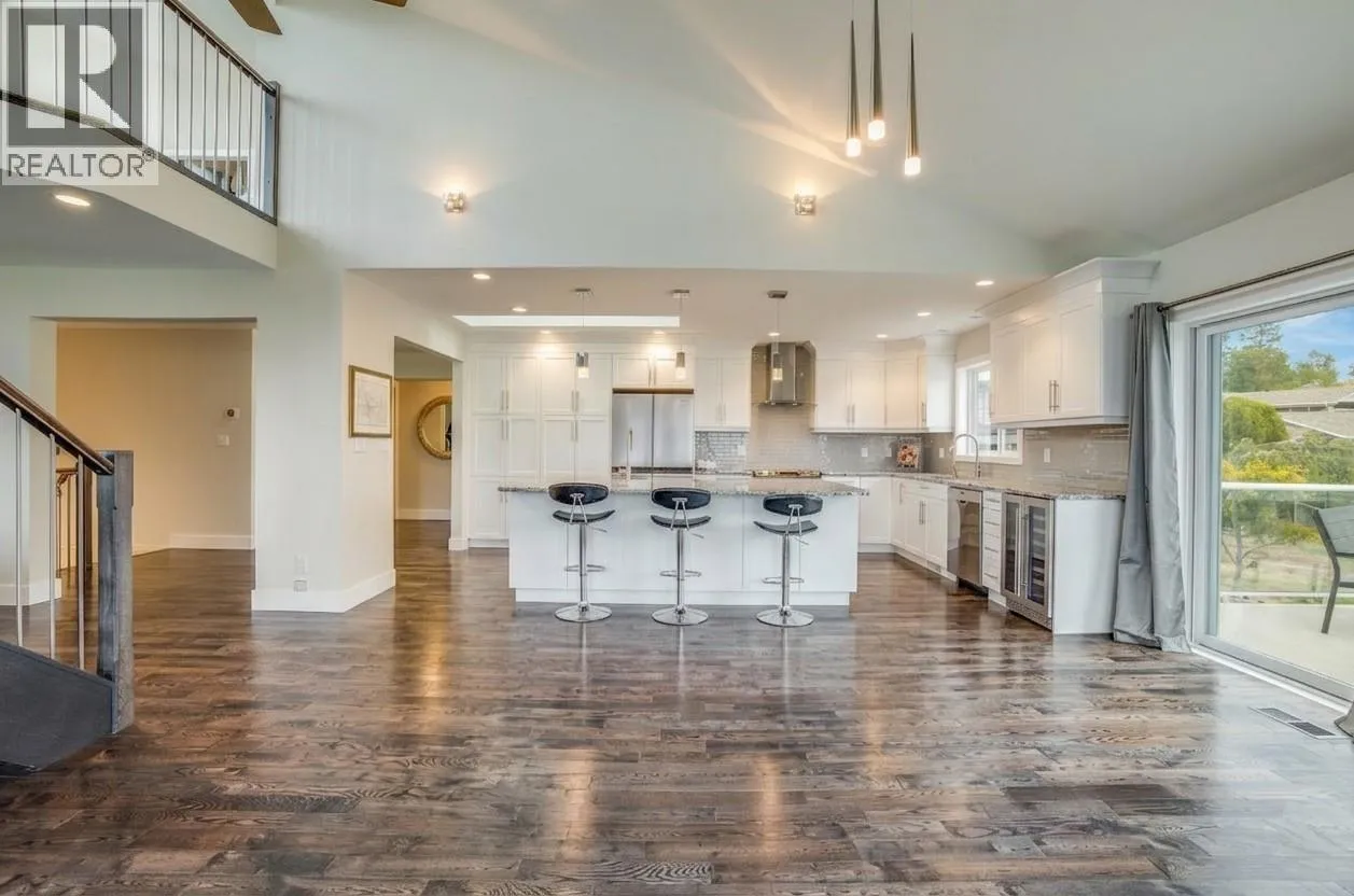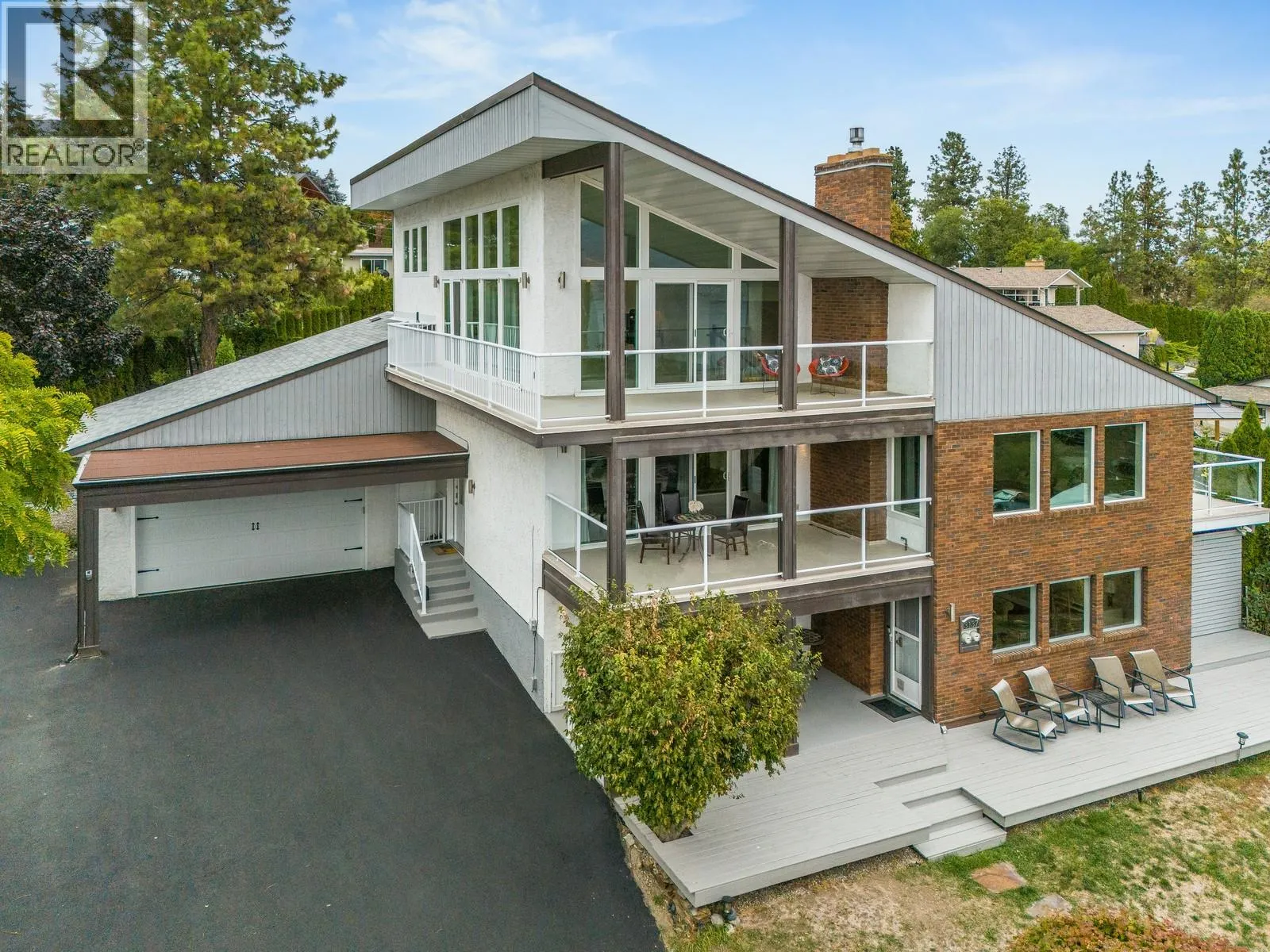 Some homes simply feel different the moment you arrive. 3137 Vector Drive is one of them. Positioned on a generous 0.46-acre lot in a quiet Lakeview Heights cul-de-sac, this beautifully renovated home with many system updates offers 6 bedrooms and nearly 4,600 sq. ft. across three levels, including a fully self-contained three-bedroom in-law suite opens the door to multi-generational living, hosting guests in style, or generating income. Sweeping lake views, soaring vaulted ceilings, warm ash hardwood floors, and expansive windows create bright, inviting spaces that naturally bring people together. At the heart of the home, the chefâs kitchen with custom cabinetry and a striking granite island is perfectly suited for quiet morning coffee or lively evenings with friends that spill effortlessly onto the deck. Outdoor living is woven into the experience here. Three expansive decks with sleek glass railings frame the lake from multiple vantage points. The upper loft offers a unique architectural haven with its own bedroom, powder room, lounge space, and wrap-around balcony â a private perch above it all. Downstairs, the fully self-contained three-bedroom suite features its own kitchen, laundry, furnace, and hot water tank â seamlessly integrated while still offering privacy. Outside, the pool-sized yard feels like a private retreat framed by mature cedars, fruit trees, gardens, and a hot tub -- creating a setting for the kind of Okanagan lifestyle people dream about. Just minutes from award-winning wineries, beaches, and some of the area's best restaurants, this is a home that blends lifestyle, flexibility, and character -- offering something that feels just a little more memorable than the ordinary! (id:27476)
