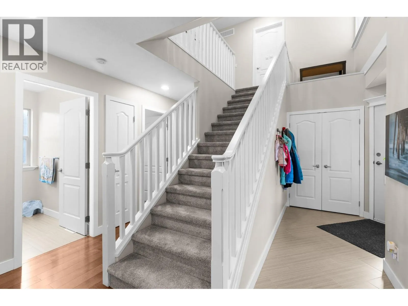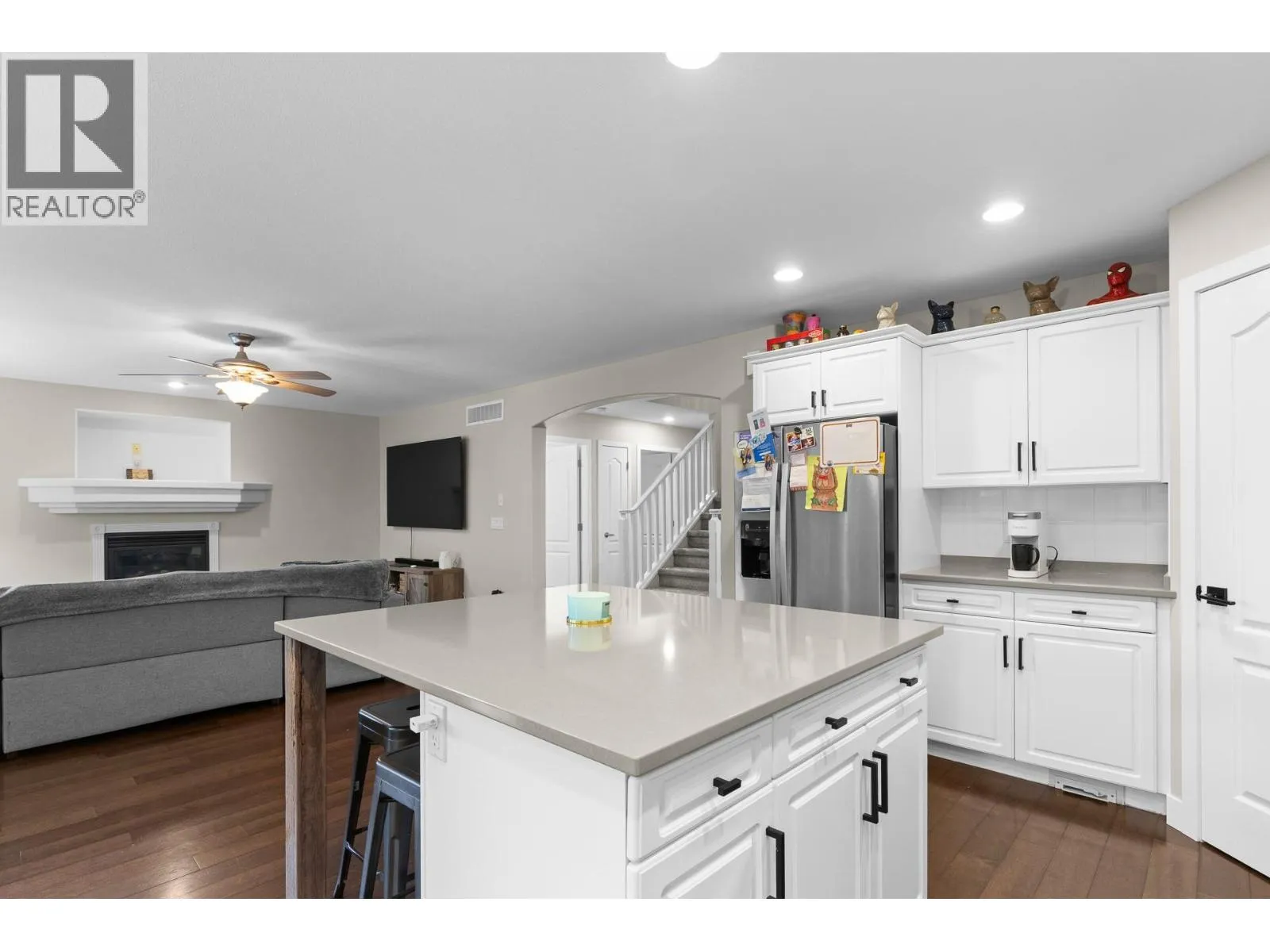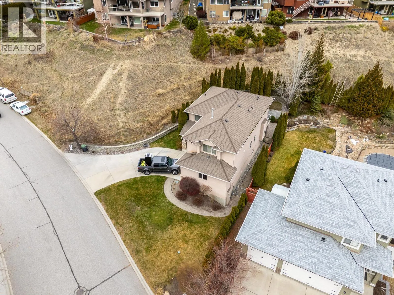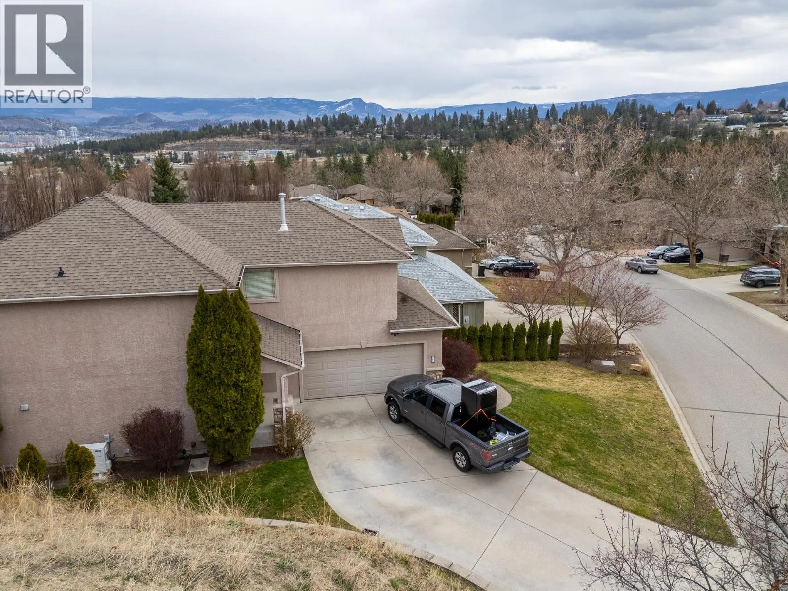 Two storey walkout on a corner lot in beautiful West Kelowna Estates! This 4 bedrooms + den, 4 bathroom home offers exceptional space, versatility, and modern comfort in a layout designed for both everyday living and entertaining. The main level welcomes you with a bright open-concept design, where the kitchen, dining, and living areas flow seamlessly together and open onto a spacious deck, perfect for summer evenings or morning coffee overlooking the private, fenced and landscaped yard. Island kitchen w/new quartz countertops, complementing the clean, modern aesthetic. A dedicated den/office, convenient main floor laundry, and a functional layout make this level stylish and practical. Upstairs features three spacious bedrooms along with an oversized bonus room - an versatile space ideal as a media room, childrenâs playroom or even fifth bedroom. The lower level adds even more flexibility with a bedroom, family/rec room, gym, storage and separate entrance leading to a patio. With the home already roughed-in for a suite, this level presents an excellent opportunity for future income potential or multi-generational living with minimal additional work required. Recent updates enhance both comfort and value, including new quartz countertops throughout all bathrooms, upgraded sinks and faucets, a new furnace AND heat pump for efficient year-round climate control. Truly move-in ready, this home offers the perfect blend of space, modern upgrades, and future flexibility. (id:27476)