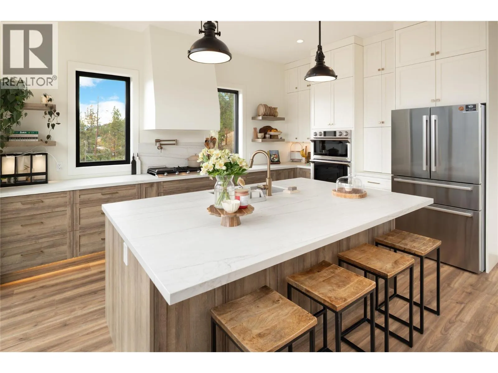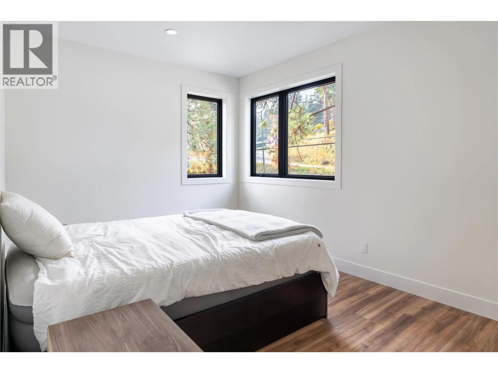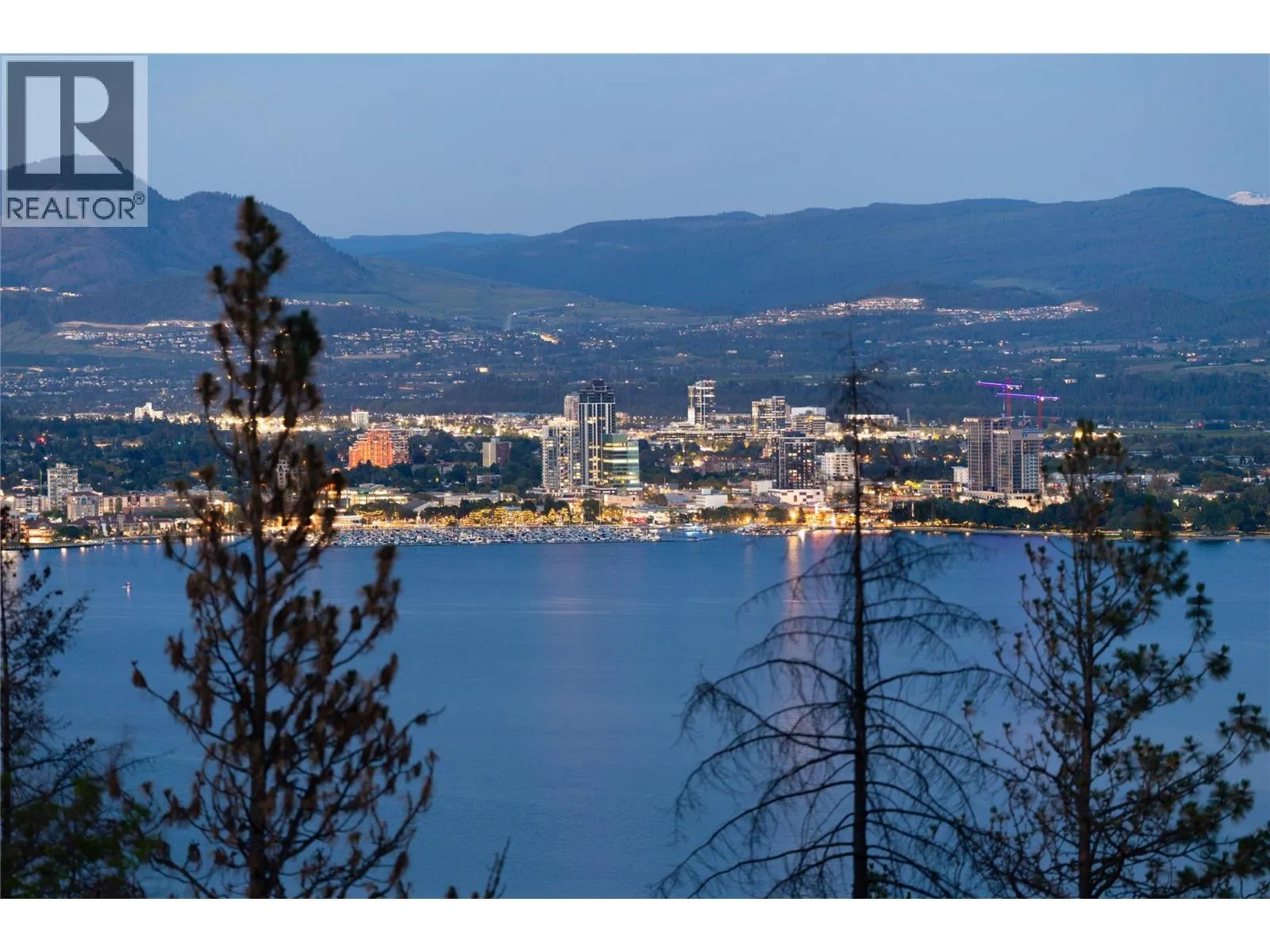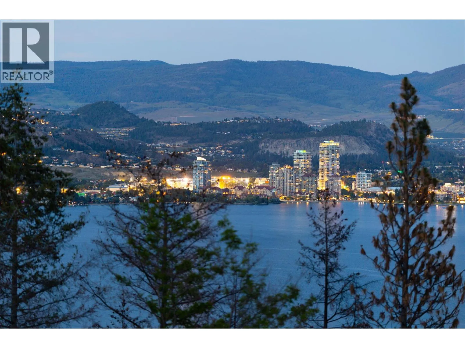 Perched in a private setting just 7 minutes from the city centre, this exceptional 6-bedroom, 5-bathroom home offers breathtaking 180-degree panoramic views of the lake and downtown. Thoughtfully designed for both families and multi-generational living, the layout blends function with elevated style. The upper level features an ideal 4-bedroom configuration, including a stunning primary retreat designed to capture the view from every angle. Complete with a spa-inspired ensuite, freestanding tub, and picture window perfectly positioned for both sunrise and city lights. Convenient upper-level laundry adds to the homeâs family-friendly design. On the main level, soaring two-storey windows flood the living space with natural light, while a striking micro-cement feature wall anchors the living room, showcasing a modern water vapor fireplace that delivers the ambiance of real flames with a clean, safe design. The chef-inspired kitchen is complemented by a full pantry with additional counter space and cabinetry, and a high-end appliance package that elevates everyday living. The lower level offers in-floor radiant heat and incredible flexibility with a 5th bedroom, full bathroom, and spacious rec room, along with direct access to the fully self-contained 1-bedroom legal suite, ideal for extended family or rental income. Like new, solar ready and offering the advantage of no GST, this home delivers luxury, privacy, and convenience in one of the areaâs most desirable settings. (id:27476)