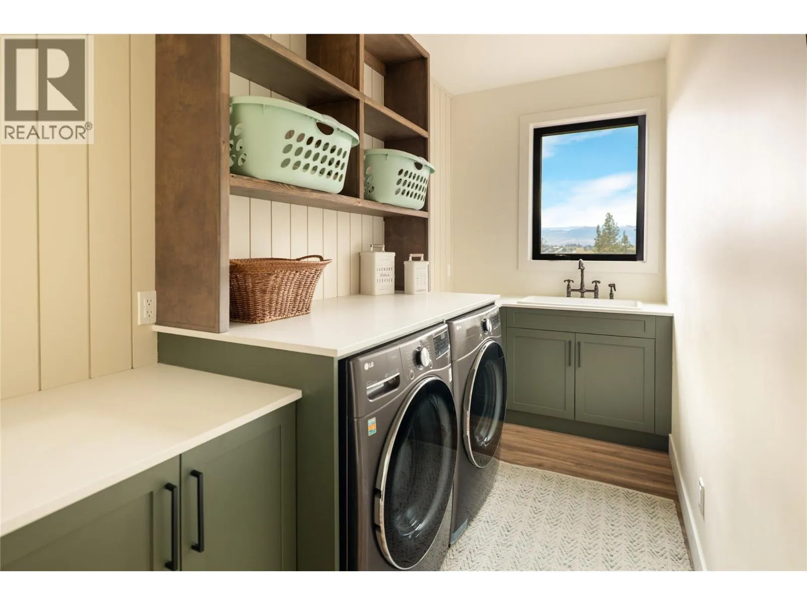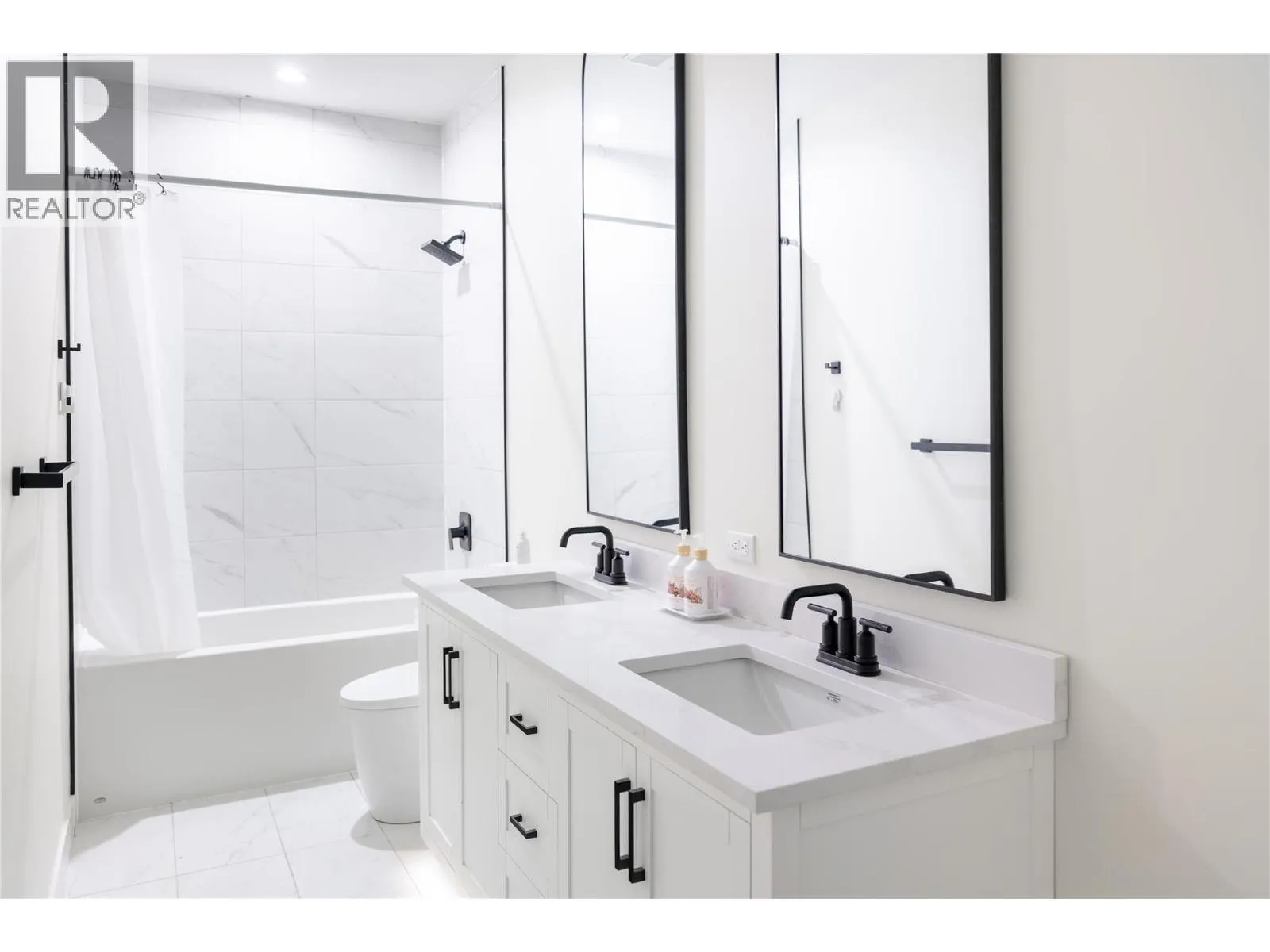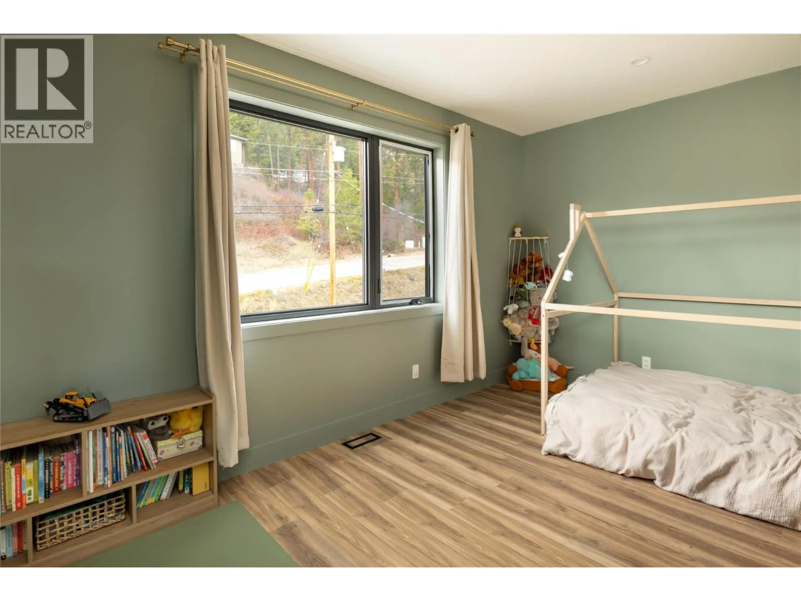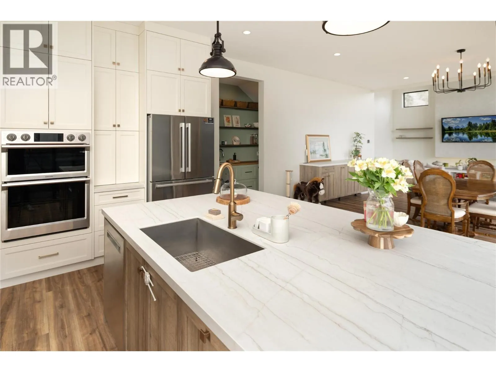 Perched in a private setting just 7 minutes from the city centre, this exceptional 6-bedroom, 5-bathroom home offers breathtaking 180-degree panoramic views of the lake and downtown. Thoughtfully designed for both families and multi-generational living, the layout blends function with elevated style. The upper level features an ideal 4-bedroom configuration, including a stunning primary retreat designed to capture the view from every angle. Complete with a spa-inspired ensuite, freestanding tub, and picture window perfectly positioned for both sunrise and city lights. Convenient upper-level laundry adds to the homeâs family-friendly design. On the main level, soaring two-storey windows flood the living space with natural light, while a striking micro-cement feature wall anchors the living room, showcasing a modern water vapor fireplace that delivers the ambiance of real flames with a clean, safe design. The chef-inspired kitchen is complemented by a full pantry with additional counter space and cabinetry, and a high-end appliance package that elevates everyday living. The lower level offers in-floor radiant heat and incredible flexibility with a 5th bedroom, full bathroom, and spacious rec room, along with direct access to the fully self-contained 1-bedroom legal suite, ideal for extended family or rental income. Like new, solar ready and offering the advantage of no GST, this home delivers luxury, privacy, and convenience in one of the areaâs most desirable settings. (id:27476)