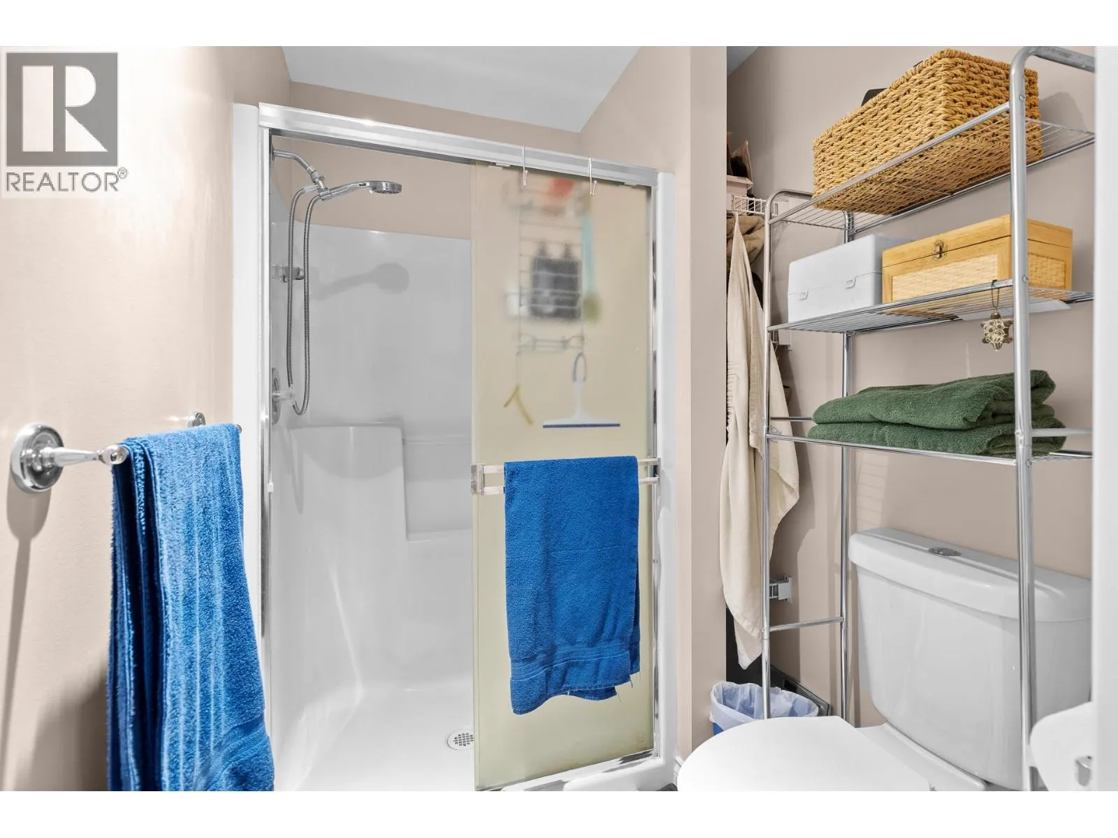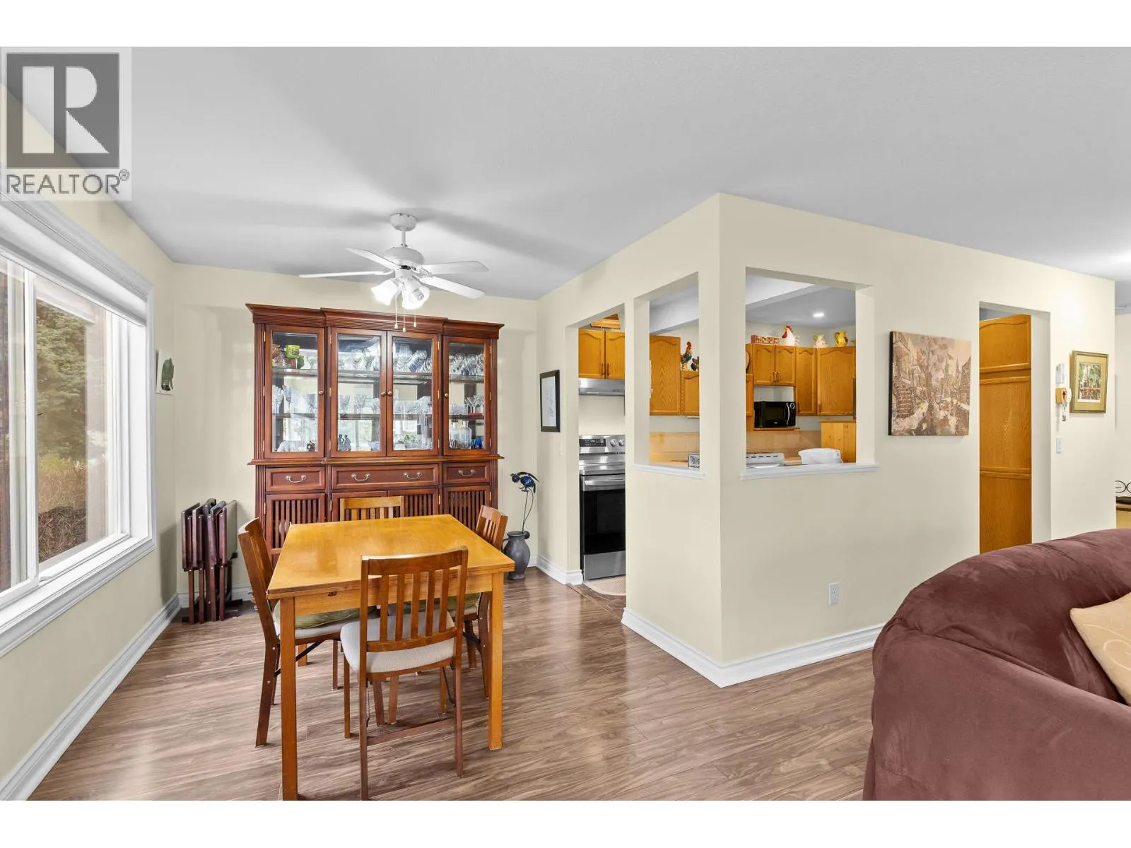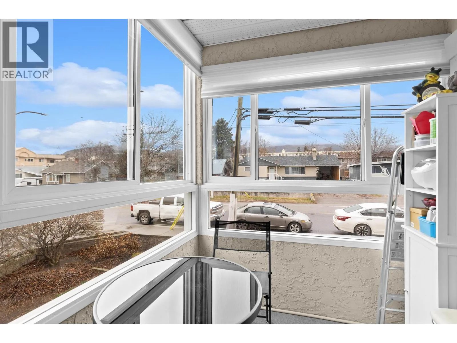Welcome to this bright Corner Unit in Leisure Terrace. Spacious condo In highly desirable 55+ complex in the heart of West Kelowna. This lovingly maintained 2nd floor unit offers 2 bedrooms, 2 bathrooms, laundry with raised platform for stacking washer/dryer. Bright and functional layout. Convenient in-floor heating, updated appliances (approx 2 years old) in kitchen, pot lights, tile backsplash, arborite countertops & pantry cabinet. Dining room adjacent to kitchen with ceiling fan. New windows on the balcony with privacy film, air conditioning unit (approx 2-3 years old) to keep you comfortable in warmer months. The enclosed balcony/sunroom adds additional living space with plenty of natural light, and includes a convenient storage room. Honeycomb blinds with remote for convenience. Secure underground parking, RV parking (pending availability). Building is known for its quiet, community-oriented atmosphere with Hobby Room to meet your neighbours and small workshop in the underground parkade. Access to gardening beds with Strata Approval & a nominal fee. One cat or one dog up to 14"" at the shoulder is allowed. Walk to grocery stores, restaurants, cafes, medical clinics, pharmacies, banks, and more. Just minutes to Johnson Bentley Aquatic Centre, Westbank Towne Centre, and a short drive to Okanagan Lake, wineries, orchards, and hiking/biking trails. This is an incredible opportunity to live in one of West Kelownaâs most convenient and desirable areas. (id:27476)