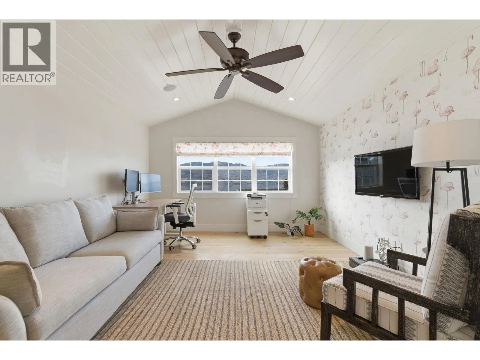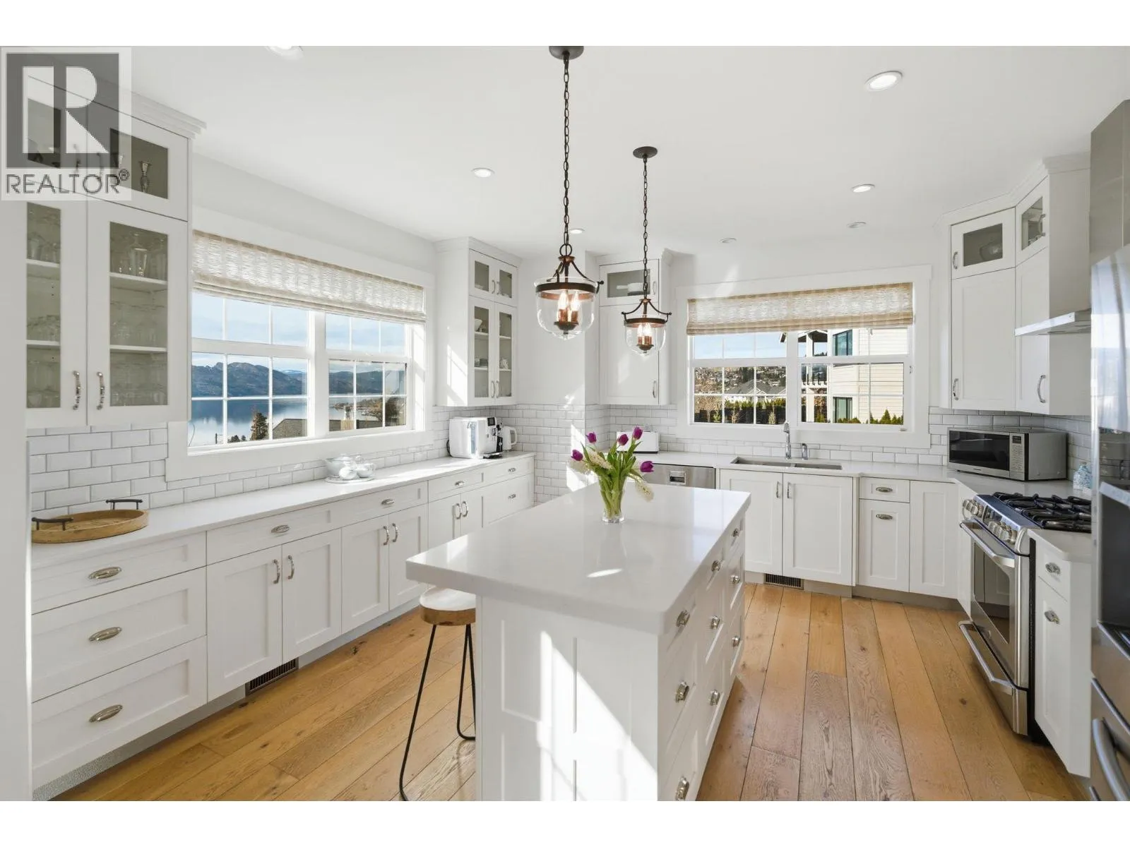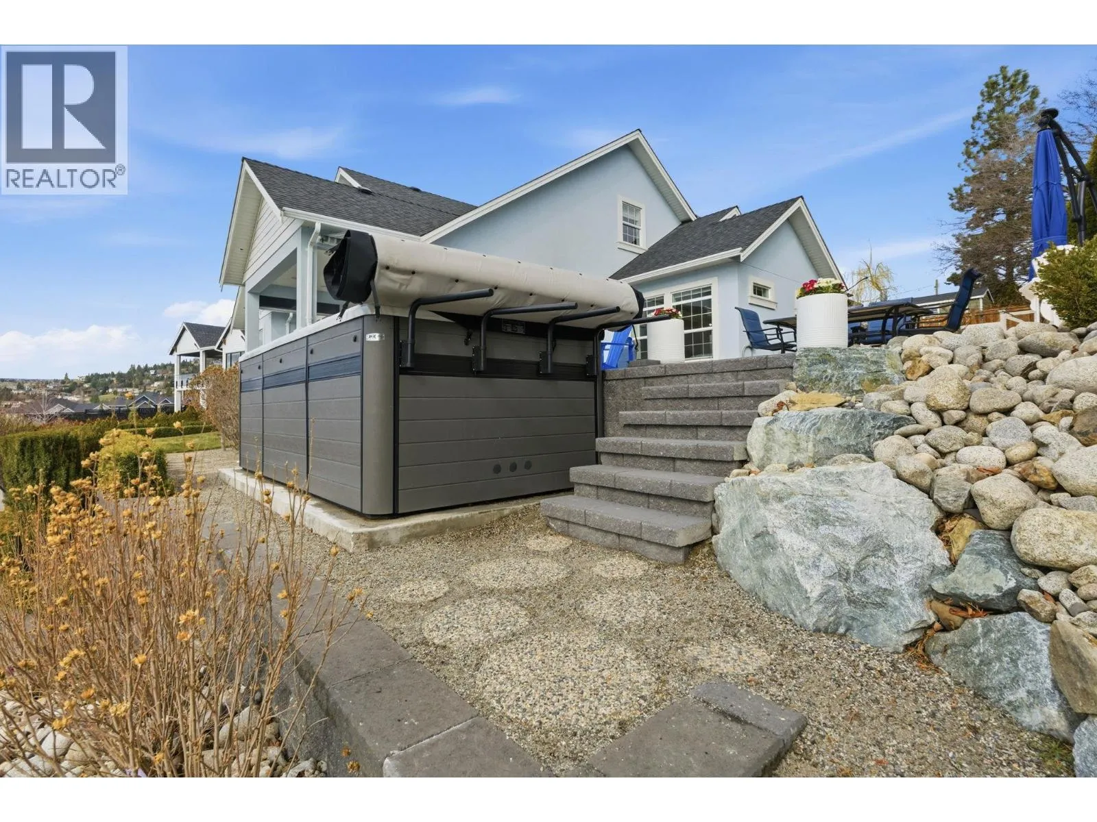 Welcome to this truly unique home, filled with natural sunlight and showcasing beautiful lake views, tucked within the exclusive and peaceful community of Kalamoir Vista. Offering over 3,300 sq ft, this 4-bedroom, 4-bathroom residence blends character, comfort, and functionality â far from cookie-cutter design. Thoughtfully laid out for main floor living, the home also provides generous upper and lower levels ideal for family or guests. The main level features a spacious primary bedroom with a luxurious ensuite, allowing for convenient one-level living. The bright white kitchen with island opens seamlessly to the living space, highlighted by tray ceilings and wide plank hardwood flooring. Patio doors extend your living area outdoors to a covered patio, perfect for enjoying the surrounding views. Upstairs, youâll find two additional bedrooms, a full bathroom, and a versatile loft space â ideal as a home office, media area, or playroom. The fully finished basement offers even more flexibility with a fourth bedroom, bathroom, and a large family room, along with ample storage. Oversized garage allows for even more storage. Step outside to a beautifully landscaped yard with expansive patio spaces designed for entertaining or relaxing while taking in Okanagan Lake and city views. The perfectly placed Swim Spa offers year-round enjoyment â cool off in the summer or unwind in the winter with hot tub functionality. Ideally located within walking distance to Kalamoir Regional Park, nearby wineries, trails, golf courses, and restaurants, and just a short 10-minute drive to Kelowna City Park and Downtown Kelowna. A rare opportunity to own a distinctive home offering privacy, lifestyle, and breathtaking surroundings. (id:27476)