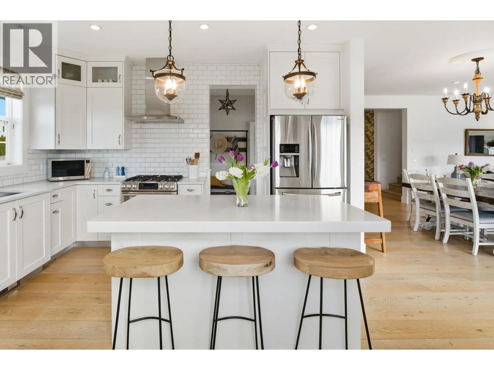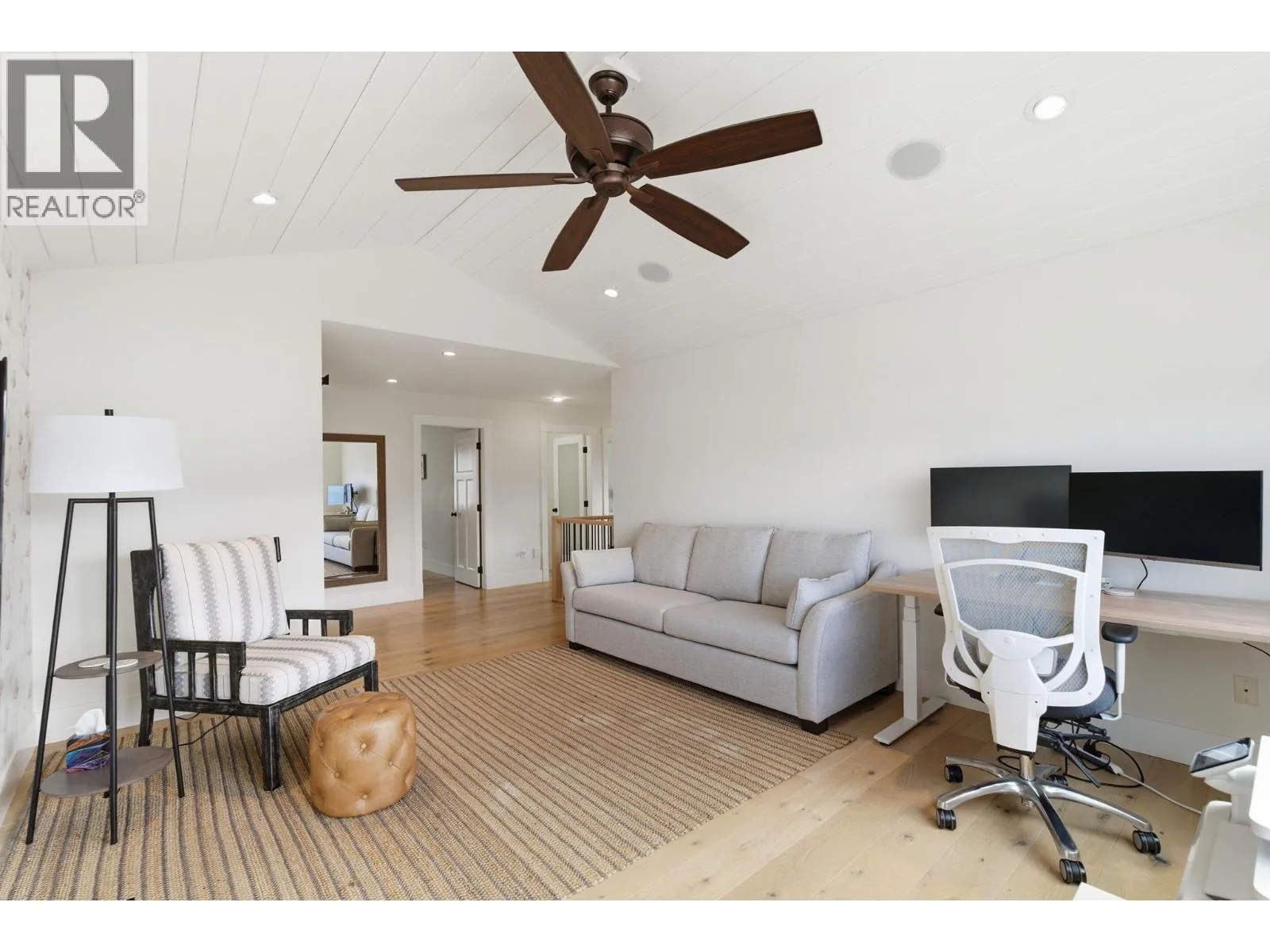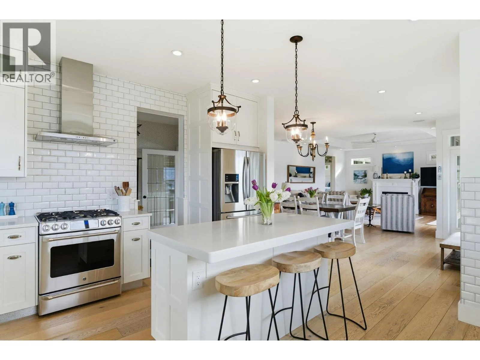 Welcome to this truly unique home, filled with natural sunlight and showcasing beautiful lake views, tucked within the exclusive and peaceful community of Kalamoir Vista. Offering over 3,300 sq ft, this 4-bedroom, 4-bathroom residence blends character, comfort, and functionality â far from cookie-cutter design. Thoughtfully laid out for main floor living, the home also provides generous upper and lower levels ideal for family or guests. The main level features a spacious primary bedroom with a luxurious ensuite, allowing for convenient one-level living. The bright white kitchen with island opens seamlessly to the living space, highlighted by tray ceilings and wide plank hardwood flooring. Patio doors extend your living area outdoors to a covered patio, perfect for enjoying the surrounding views. Upstairs, youâll find two additional bedrooms, a full bathroom, and a versatile loft space â ideal as a home office, media area, or playroom. The fully finished basement offers even more flexibility with a fourth bedroom, bathroom, and a large family room, along with ample storage. Oversized garage allows for even more storage. Step outside to a beautifully landscaped yard with expansive patio spaces designed for entertaining or relaxing while taking in Okanagan Lake and city views. The perfectly placed Swim Spa offers year-round enjoyment â cool off in the summer or unwind in the winter with hot tub functionality. Ideally located within walking distance to Kalamoir Regional Park, nearby wineries, trails, golf courses, and restaurants, and just a short 10-minute drive to Kelowna City Park and Downtown Kelowna. A rare opportunity to own a distinctive home offering privacy, lifestyle, and breathtaking surroundings. (id:27476)