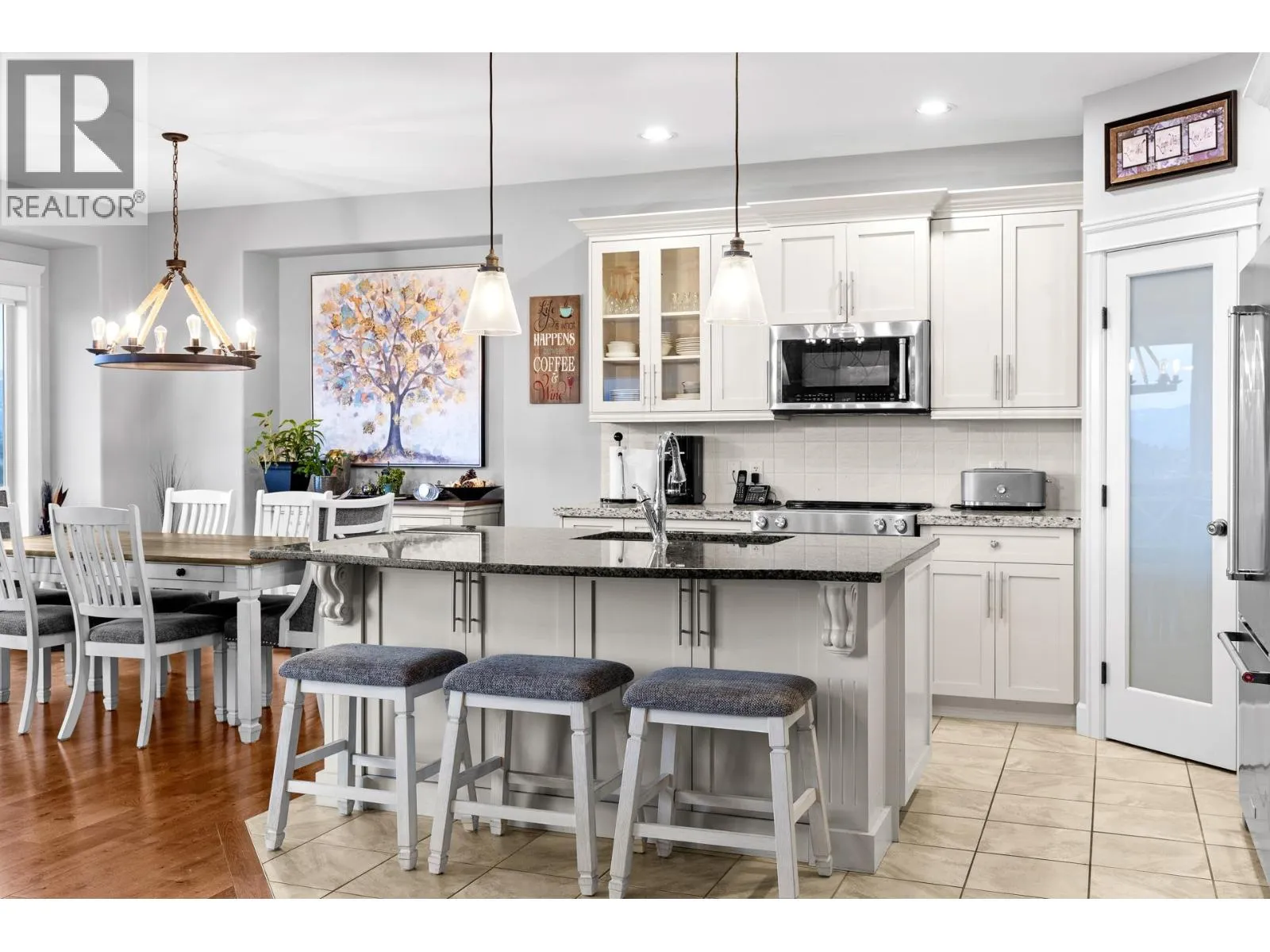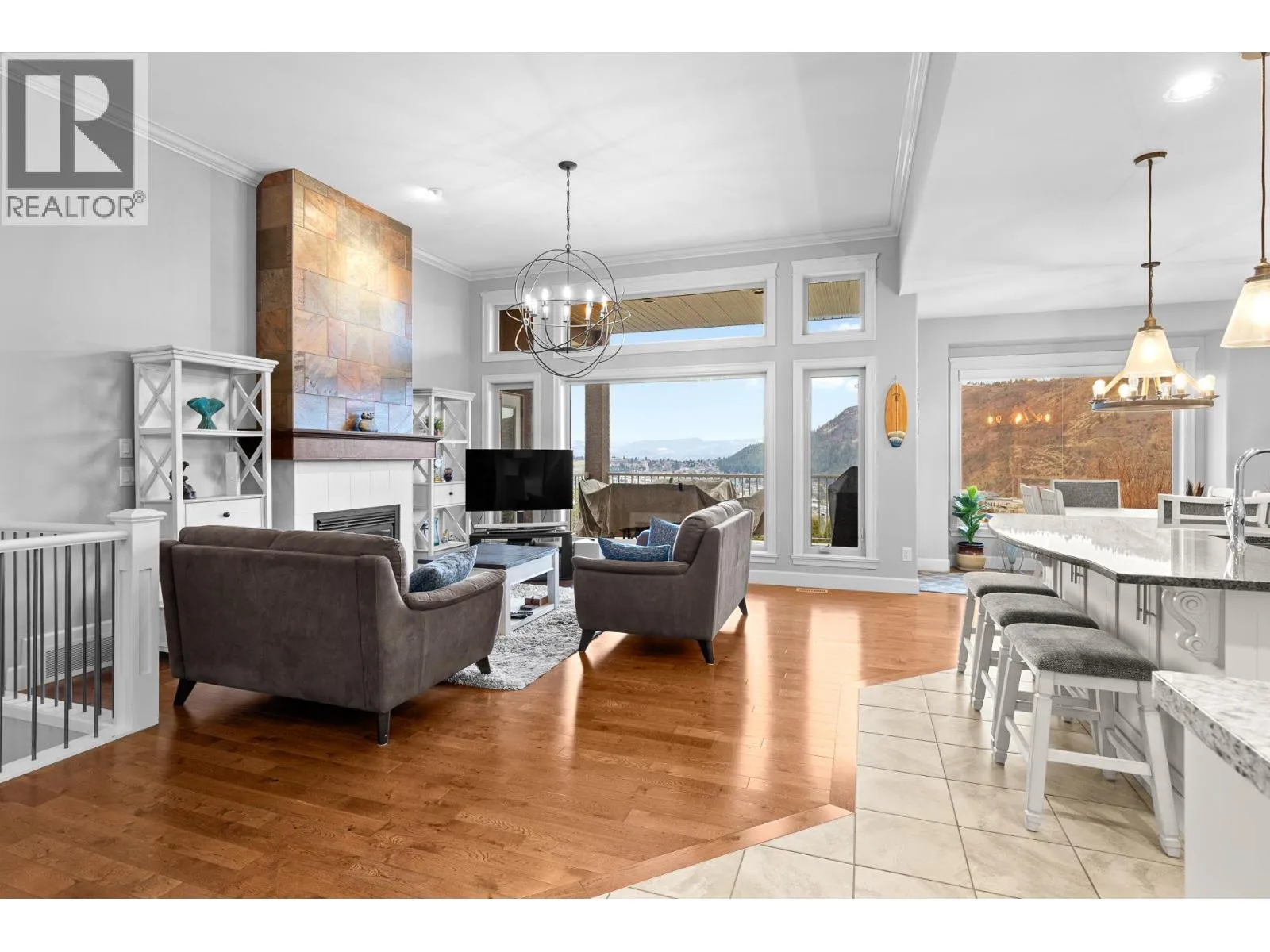 Incredible views and a large, pool-sized backyard set the tone for this thoughtfully designed walk-out rancher, offering sweeping mountain, city, and lake views from its quiet cul-de-sac in the sought-after Shannon Lake neighbourhood. Large windows throughout the main level fill the home with natural light, perfectly framing the surrounding scenery. The open-concept main floor features high ceilings and a functional layout, including a generous den, a well-appointed kitchen with ample cabinetry, great counter space, and an inviting eating nook. The kitchen flows seamlessly into the living area, where high ceilings and a cozy gas fireplace create a warm, comfortable space for everyday living and entertaining. The primary suite offers direct access to the covered deck, a walk-in closet, and a five-piece ensuite with a heated tile floor. A second bedroom, full bathroom, laundry, and access to the double garage complete the main level. The walk-out lower level continues the homeâs design with two additional bedrooms, a full bathroom, and a media room with a wet bar, perfect for hosting or relaxed evenings. Direct access to the covered patio extends the living space outdoors. Set on one of the largest lots in the community, the fully landscaped, irrigated, and fenced yard offers exceptional space, privacy, and room to enjoy the Okanagan lifestyle. Homes with this combination of views, layout, and lot size donât come up often. Book your showing today! (id:27476)