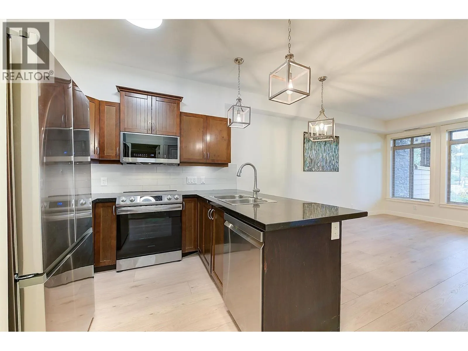 Welcome to one of the most affordable 1-bedroom condos in West Kelowna, perfectly positioned on Two Eagles Golf Course. Located in The Aria, this bright and freshly updated ground-floor unit offers an open-concept layout with stainless steel appliances, granite countertops, a breakfast bar, and a cozy fireplace. Recent updates to paint, flooring, and lighting give the home a clean, move-in-ready feel. Step outside to your spacious 9x16 covered patio overlooking the fairwayâan ideal spot for morning coffee or evening unwinding after a round of golf. Whether youâre a first-time buyer looking to break into the market, a downsizer seeking low-maintenance living, or a golf lover in search of the perfect summer getaway, this is a standout opportunity. Strata fees are $260.68/month and include hot water, water, sewer, garbage, and professional management. Lease fee is $171.50/month. Rentals and pets are allowed with restrictions, adding flexibility for investors. Secure underground parking and a private storage locker complete the package. (id:27476)