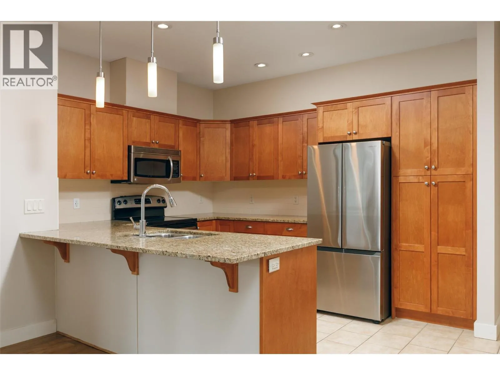 Top Floor and Two Parking Stalls! Welcome to Sundance Ridge. This well-maintained 2-bedroom, 2-bathroom split-plan condo with mountain views is located in quiet yet central Shannon Lake, which boasts proximity to transit, schools, golf, parks, hiking, shopping & more in West Kelowna! This unit has ample natural light and generous room sizes with an open concept, inc. granite counters, tile flooring and central air conditioning. This well-run complexâs amenities include a pool, hot tub and guest suite. Pets and rentals are allowed, with no age restrictions. 1 underground parking and 1 above-ground stall & storage locker are included. (id:27476)