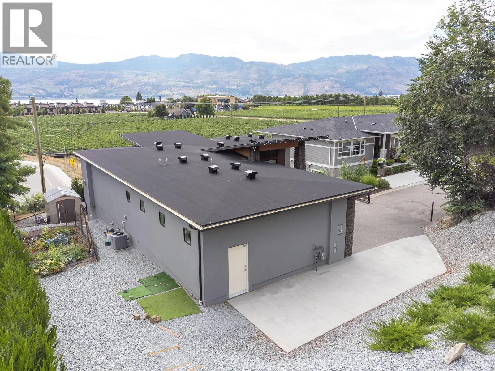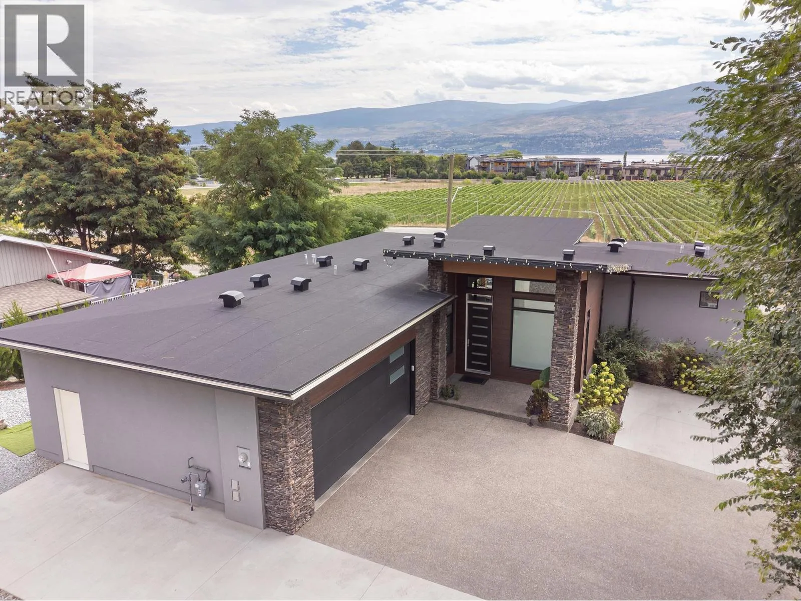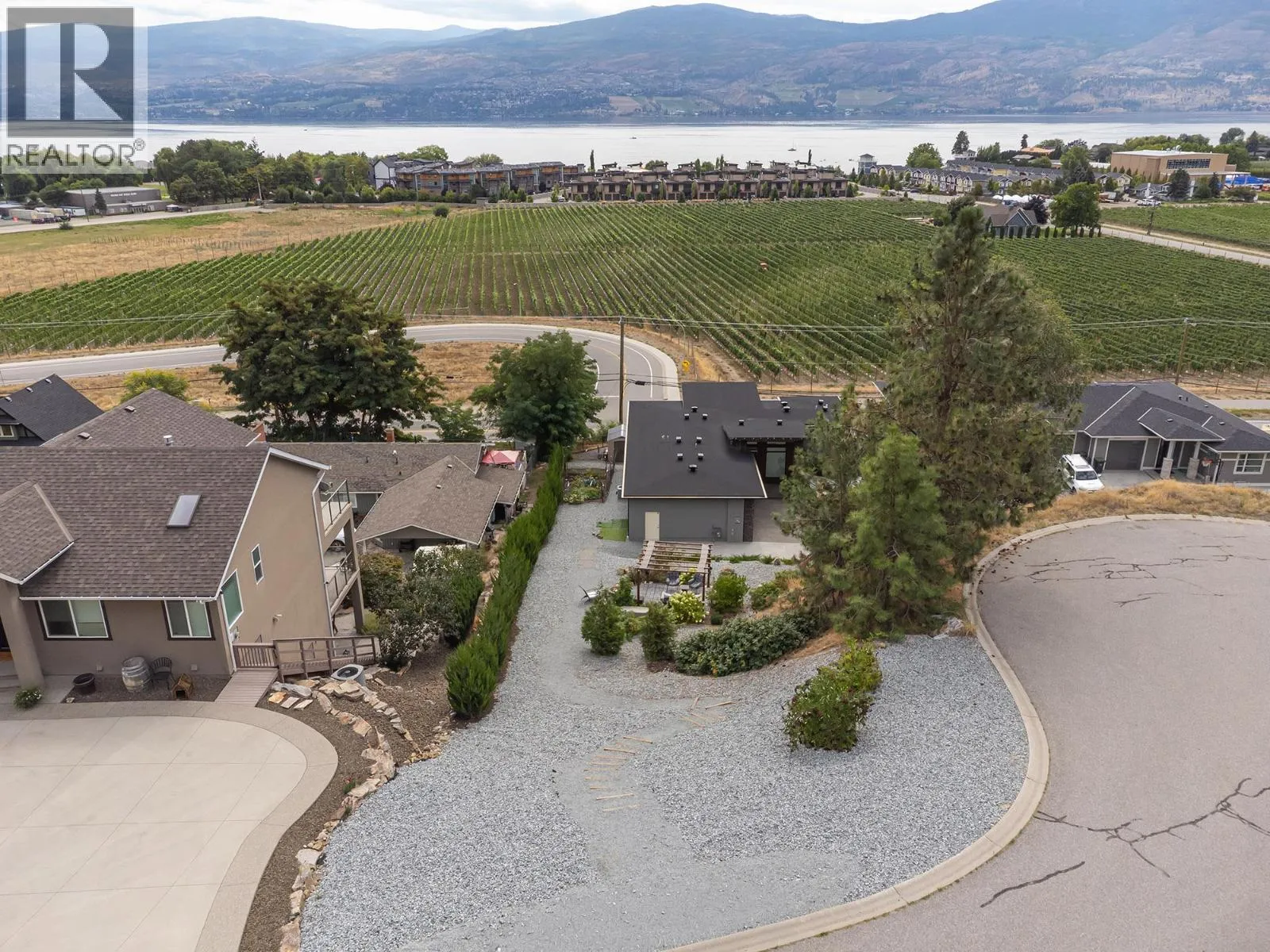 This impeccably built modern residence is designed for elevated main level living while offering the versatility of a lower level ideal for guests or a high earning AirBnB opportunity. Thoughtfully crafted to maximize light, flow, and functionality, the home delivers a rare blend of luxury, comfort, and investment potential. The main floor features a bright open concept kitchen with high end finishes and oversized windows that flood the home with natural light. The primary suite is conveniently located on the main level and offers a spa inspired ensuite with generous proportions. An office, laundry room, and covered deck complete the main floor and enjoy peaceful morning sunrises. The walk out lower level is perfectly suited for extended family or short term rental use, offering two large bedrooms each with its own ensuite, including one that rivals the primary suite. A dining and prep area with a large island and seating creates a welcoming space. Step outside to the private backyard, where a juniper hedge provides privacy and a tranquil hot tub setting. Multiple outdoor living spaces include a stone patio with pergola and additional seating areas with breathtaking vineyard and valley views. Ideally located within walking distance to the beach, vineyards, and the renowned Frind Winery, North Americaâs only waterfront winery, offering dining, live music, yoga, events, and a boat up experience. A rare opportunity for luxury living with exceptional income potential. (id:27476)