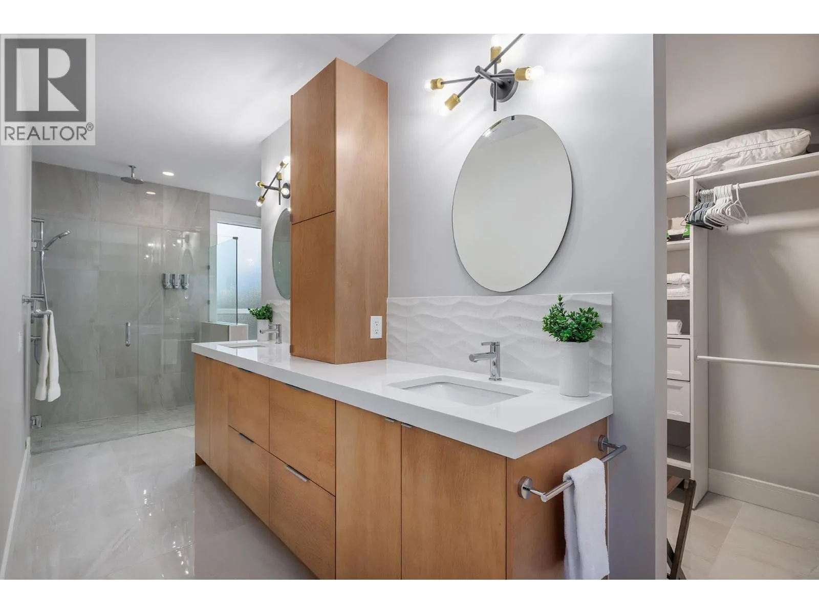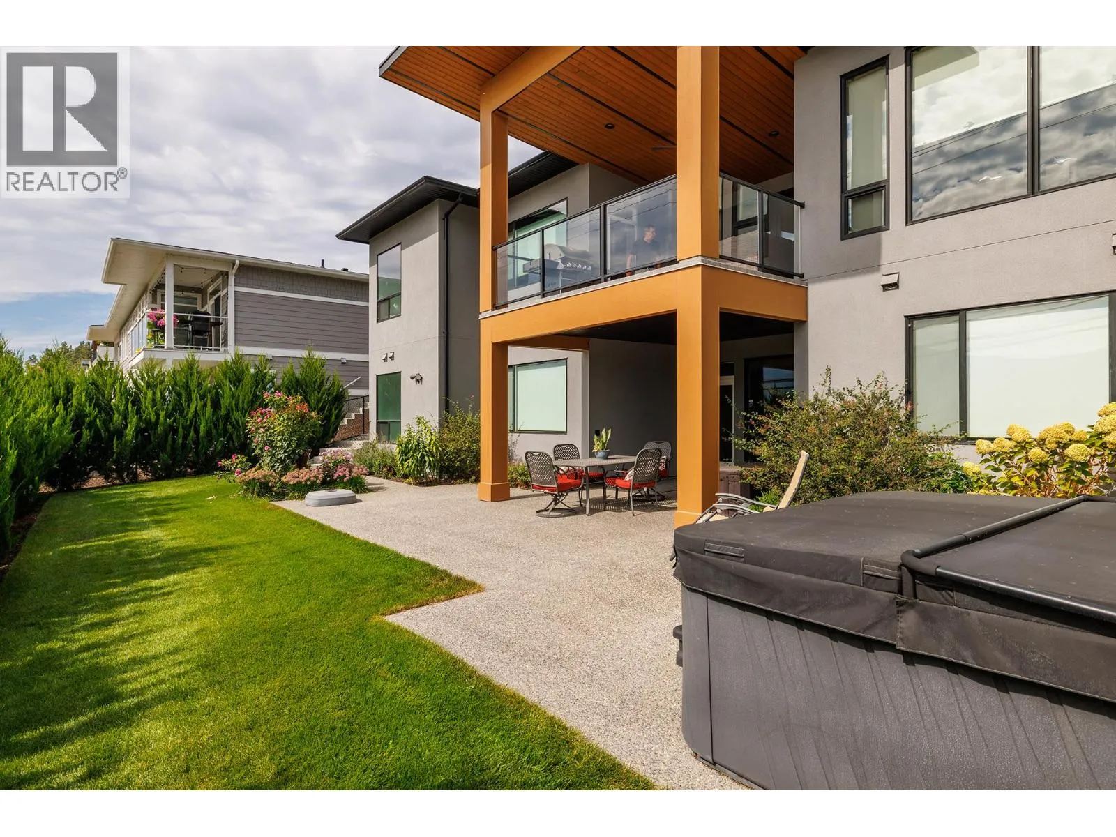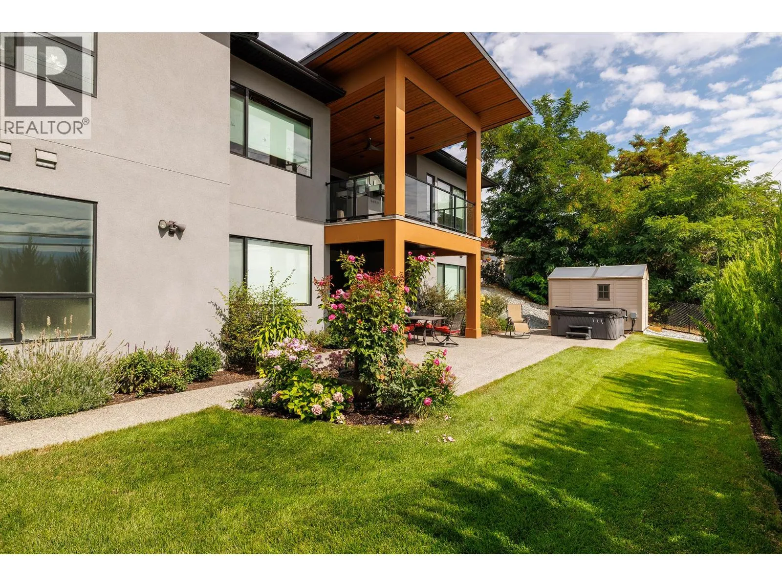 This impeccably built modern residence is designed for elevated main level living while offering the versatility of a lower level ideal for guests or a high earning AirBnB opportunity. Thoughtfully crafted to maximize light, flow, and functionality, the home delivers a rare blend of luxury, comfort, and investment potential. The main floor features a bright open concept kitchen with high end finishes and oversized windows that flood the home with natural light. The primary suite is conveniently located on the main level and offers a spa inspired ensuite with generous proportions. An office, laundry room, and covered deck complete the main floor and enjoy peaceful morning sunrises. The walk out lower level is perfectly suited for extended family or short term rental use, offering two large bedrooms each with its own ensuite, including one that rivals the primary suite. A dining and prep area with a large island and seating creates a welcoming space. Step outside to the private backyard, where a juniper hedge provides privacy and a tranquil hot tub setting. Multiple outdoor living spaces include a stone patio with pergola and additional seating areas with breathtaking vineyard and valley views. Ideally located within walking distance to the beach, vineyards, and the renowned Frind Winery, North Americaâs only waterfront winery, offering dining, live music, yoga, events, and a boat up experience. A rare opportunity for luxury living with exceptional income potential. (id:27476)
