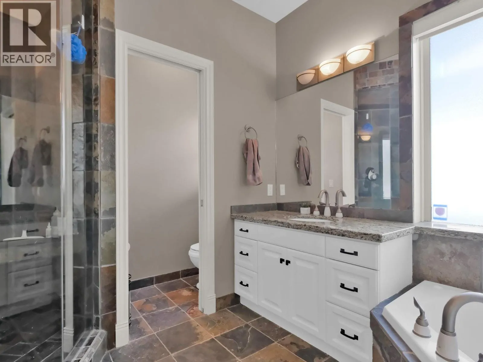 Executive Living Meets Effortless Convenience Welcome to this exceptional executive-style home, thoughtfully designed to offer perfect blend of comfort, elegance, & low-maintenance living. Boasting over 4,000 sq. ft. of beautifully finished space, impressive residence features 5 bed and 5 bathr, set on fully landscaped lot with an electric car charging station for modern convenience. Enjoy carefree lifestyle with strata services that take care of the details, including sidewalk snow removal, front lawn mowing, weed control, & hedge trimming, giving you more time to relax & enjoy your home. Step inside to a grand foyer with a sophisticated combination of slate & hardwood flooring throughout the main living areas. Open-concept design is highlighted by expansive floor-to-ceiling windows that fill the space with natural light & showcase the serene, private backyard, perfect for summer barbecues and entertaining. Chef-inspired kitchen features granite countertops & ample space for cooking & gathering. Primary suite is a true retreat, complete with a private patio, a spa-like ensuite with dual granite vanities, an oversized slate walk-in shower, & a walk-in closet. All bedrooms include walk-in closets, & a second primary suite with its own ensuite offers flexibility for guests or multi-generational living. This remarkable home offers exceptional lifestyle, must be seen to be fully appreciated. Contact us today to schedule your private showing and make this your forever home! (id:27476)