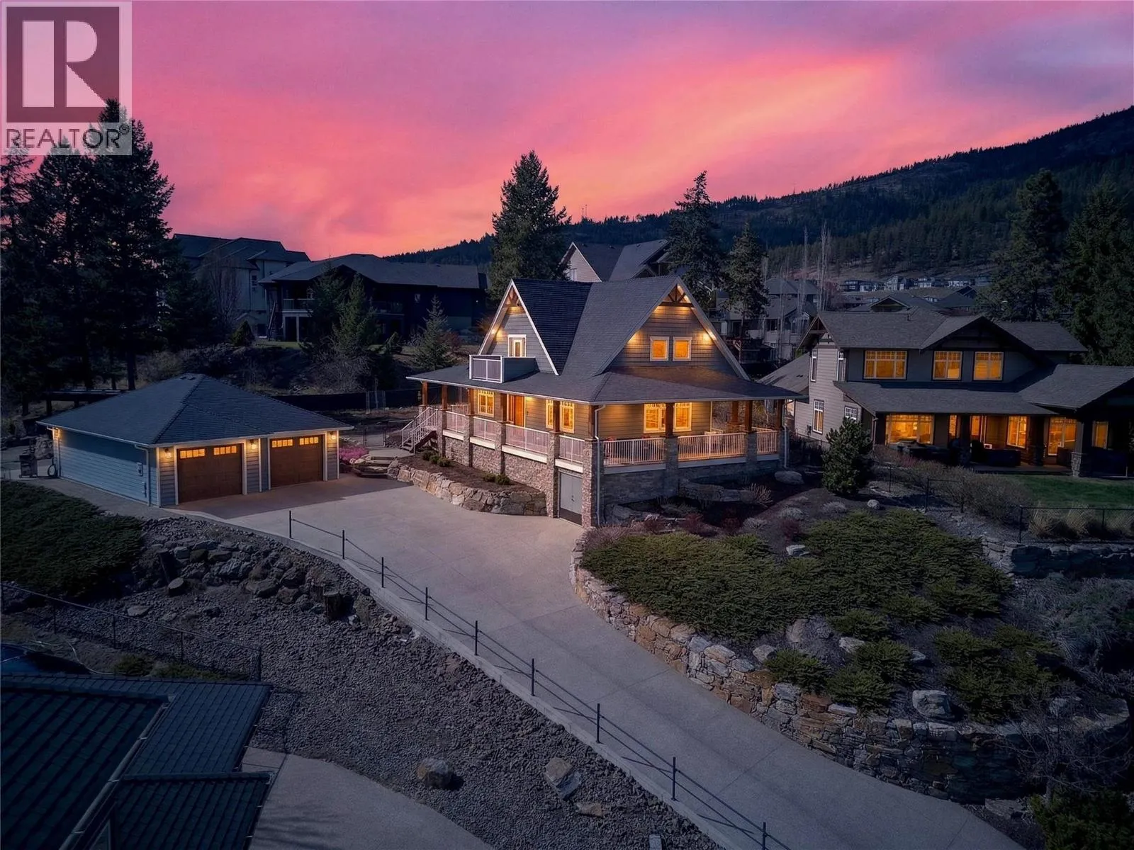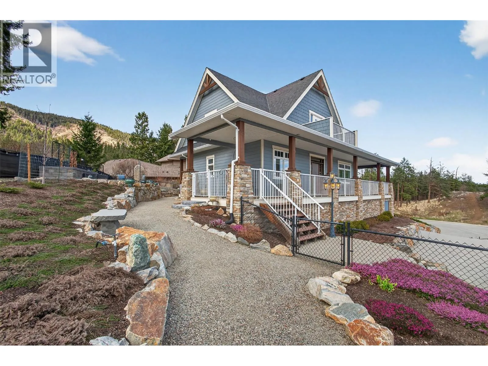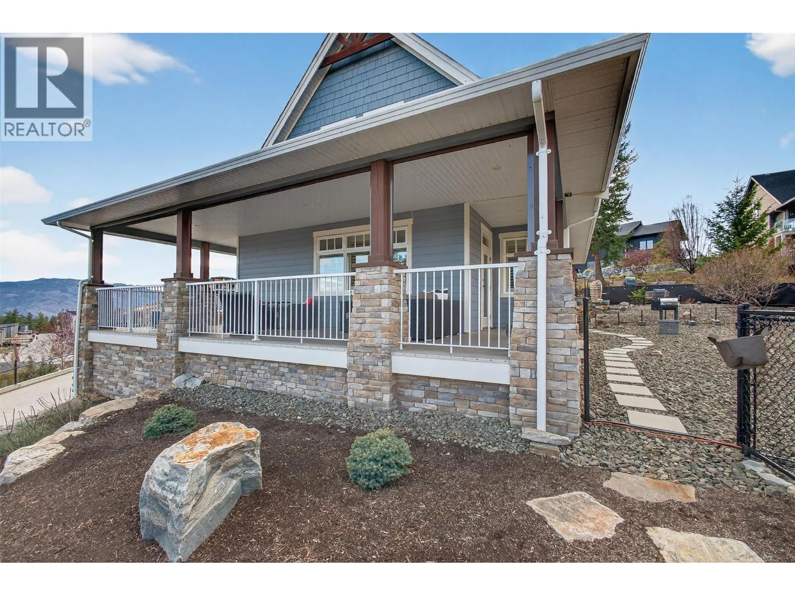 TRULY that âHome Sweet Homeâ feeling! Tucked into one of West Kelownaâs most peaceful pockets in Tallus Ridge, this custom cottage style home offers a rare sense of comfort, privacy, and everyday escape. Set on a quiet cul-de-sac directly across from Stone Grove Park, the setting invites a slower, more intentional pace of living. Spanning 2,700+ sqft (including unfinished basement), this 3-bedroom, 2-bath home blends warmth and functionality with a layout that feels both welcoming and refined. The main level is designed for connection, featuring a beautifully appointed kitchen with Norelco custom cabinetry, granite countertops, and induction cooking, flowing seamlessly into bright, inviting living spaces ideal for gathering and unwinding. Upstairs offers a peaceful retreat with the primary suite, second bedroom, and a spa-inspired ensuite featuring a walk-in tiled shower and deep soaker tub, the perfect place to recharge. One of the most charming features is the wraparound veranda with remote sunshades, it offers an extension of the living space and the perfect spot for slow mornings & those golden-hour moments. The fully landscaped and irrigated 0.41-acre property has been designed for privacy and enjoyment, offering multiple stone patio areas, a pergola with awning overlooking Shannon Lake, garden spaces, and room to add a pool for those envisioning a true backyard retreat. A standout feature is the detached double garage & workshop, offering 1,000+ sq. ft. of versatile space with 220 AMP service, EV-ready wiring, and direct access to the backyard â ideal for hobbies, storage, or future flexibility. With vision, there is also potential to enhance the property over time, including the option to explore a suite in the lower level and/or a carriage suite above the garage. Steps away from Shannon Lake Golf Course, and surrounded by trails, parks, and the natural beauty of Tallus Ridge -- this property invites you to slow down, settle in, and truly feel at home. (id:27476)