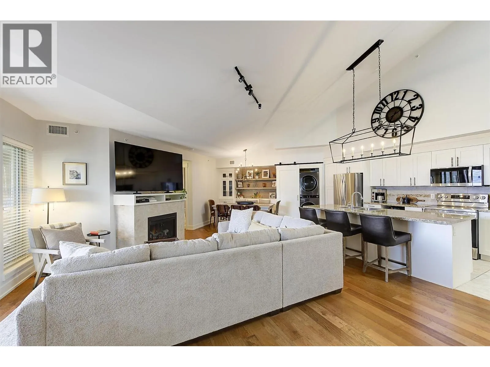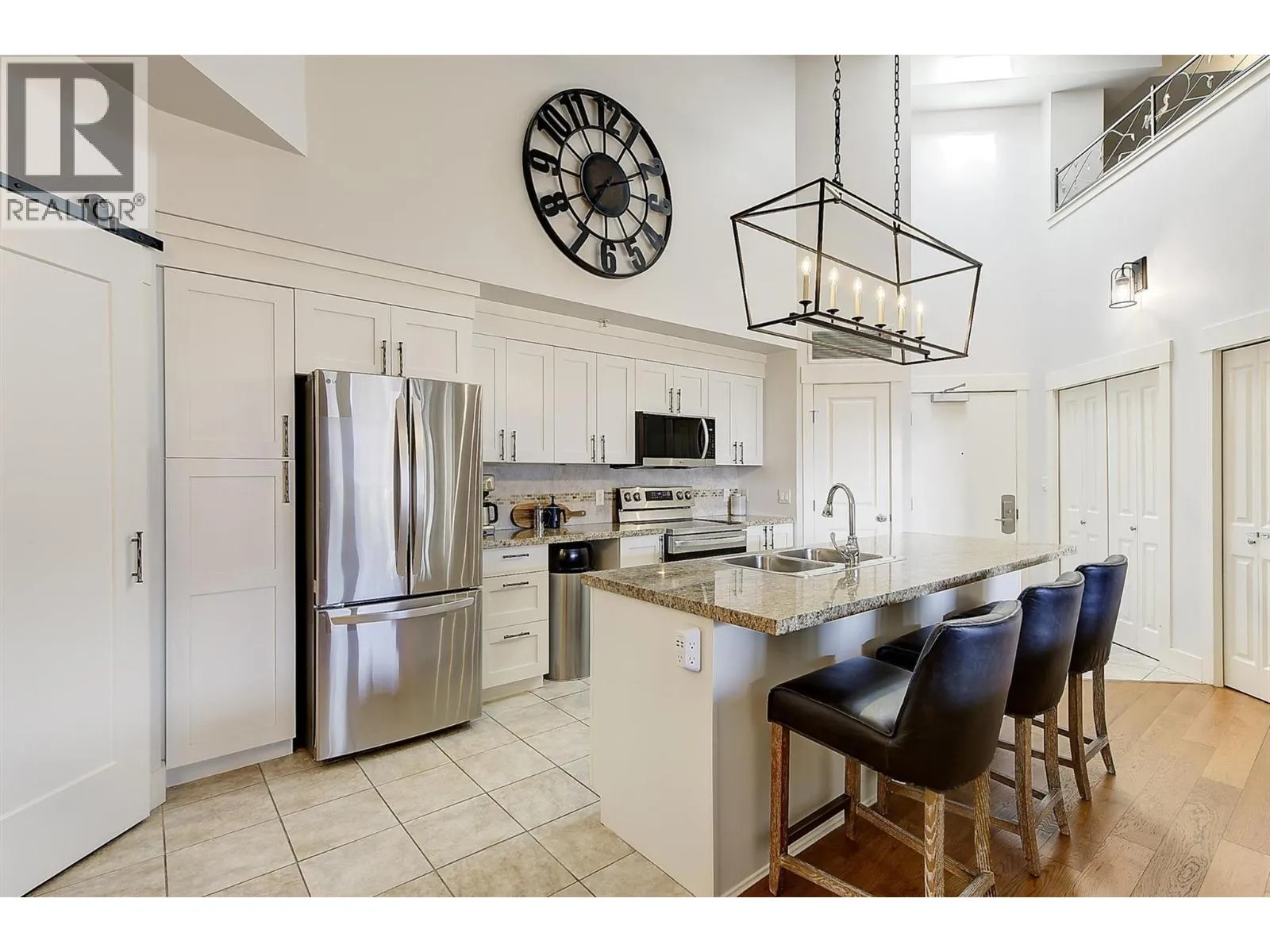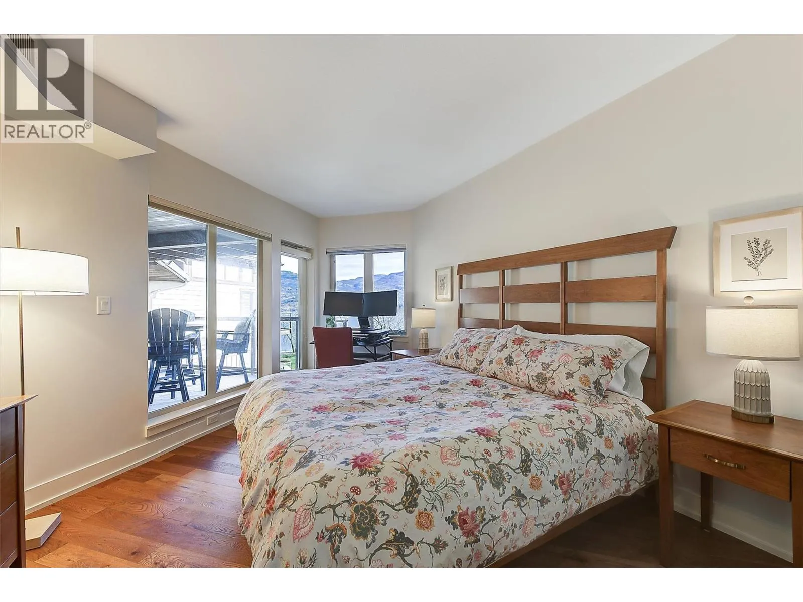 Luxury Lakefront Penthouse at âThe Cove Lakeside Resortâ. This suite does not have the covenant on it. You can occupy it, rent it out or opt for The Cove Resort to manage your bookings for substantial care free rental income-the choice is yours. The coveted 150 suite boutique hotel resort consistently maintains it's upscale reputation and value. This gorgeous 3 bedroom plus den suite has been exquisitely renovated with quality finishings. Upon entry the skylight illuminates a grand open space soaring ceilings and loft (currently used as 3rd bedroom). The kitchen is a standout featuring a generous island, coffee bar, custom banquette/dining room and cabinetry with hardware that reads as fine furniture! New appliances, wide plank engineered wood floors and elegant light fixtures. The primary is serene and spacious with 2 showers in the ensuite. Relax on your private covered south facing balcony situated on the quiet side of the building taking in the peace and tranquility of the breathtaking Lakeviews while overlooking the Historical Gellatly Nut Farm. Surrounded by World-Class Wineries this isnât just a gem itâs a Diamond! Strata fees incl: Amenities, Parking, Storage, Heating/Cooling. 2 dogs or 1 cat allowed. 600 ft of sandy beachfront on 6.5 acres of manicured grounds, 2 seasonal pools (one w/waterslide) 2 hot tubs, BBQ grills, fire pits, putting green, pickleball/tennis courts, marina, pool table, gym. Pamper yourself at the onsite Spa & Dine at The Landing Kitchen & Bar. (id:27476)