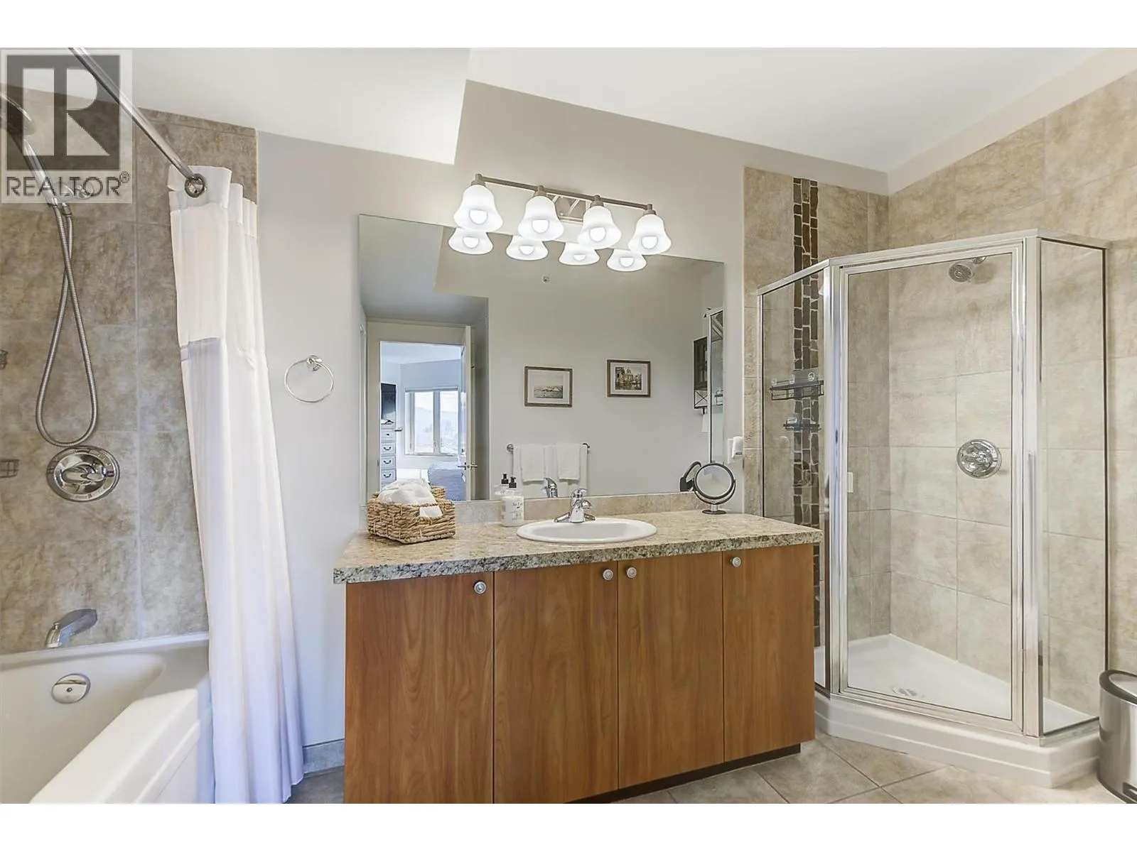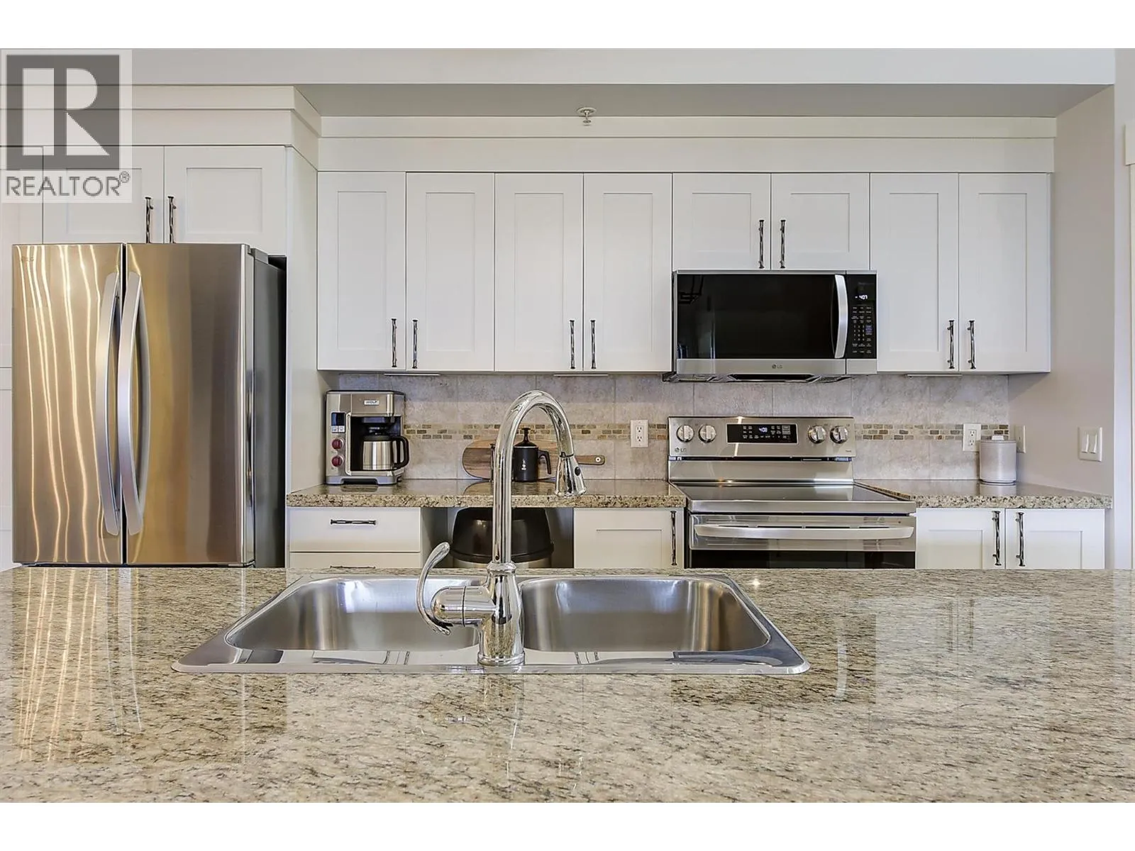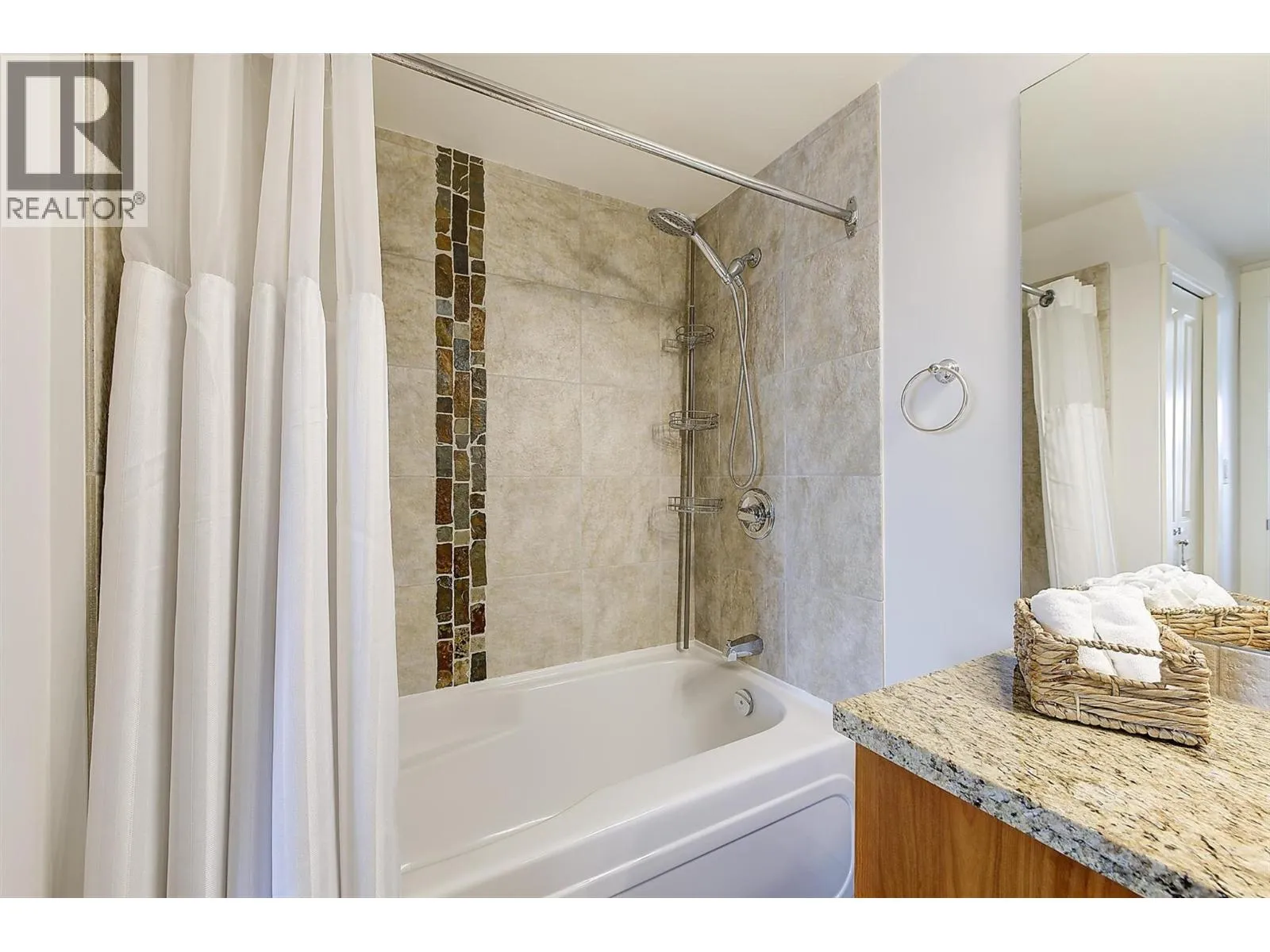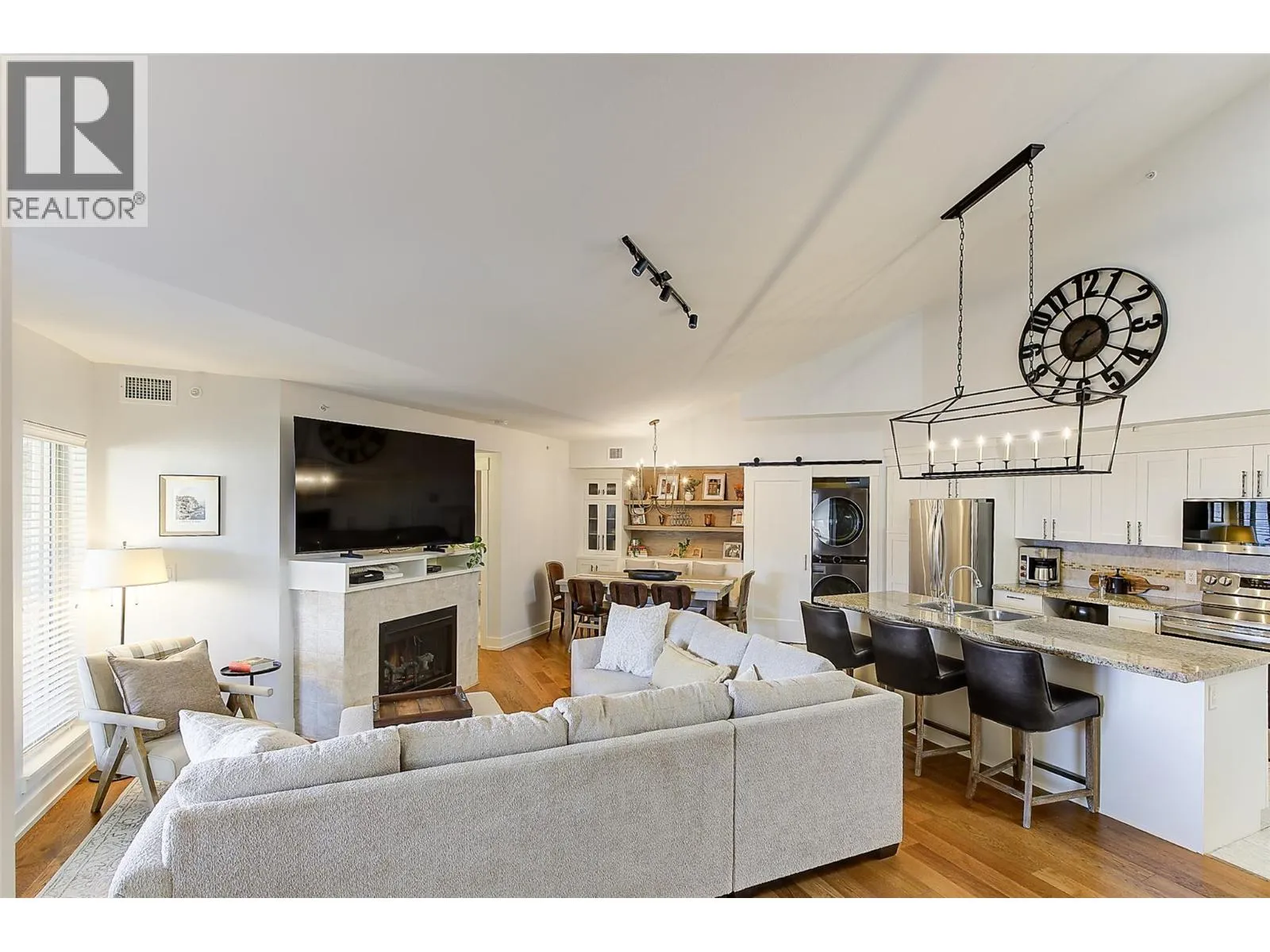 Luxury Lakefront Penthouse at âThe Cove Lakeside Resortâ. This suite does not have the covenant on it. You can occupy it, rent it out or opt for The Cove Resort to manage your bookings for substantial care free rental income-the choice is yours. The coveted 150 suite boutique hotel resort consistently maintains it's upscale reputation and value. This gorgeous 3 bedroom plus den suite has been exquisitely renovated with quality finishings. Upon entry the skylight illuminates a grand open space soaring ceilings and loft (currently used as 3rd bedroom). The kitchen is a standout featuring a generous island, coffee bar, custom banquette/dining room and cabinetry with hardware that reads as fine furniture! New appliances, wide plank engineered wood floors and elegant light fixtures. The primary is serene and spacious with 2 showers in the ensuite. Relax on your private covered south facing balcony situated on the quiet side of the building taking in the peace and tranquility of the breathtaking Lakeviews while overlooking the Historical Gellatly Nut Farm. Surrounded by World-Class Wineries this isnât just a gem itâs a Diamond! Strata fees incl: Amenities, Parking, Storage, Heating/Cooling. 2 dogs or 1 cat allowed. 600 ft of sandy beachfront on 6.5 acres of manicured grounds, 2 seasonal pools (one w/waterslide) 2 hot tubs, BBQ grills, fire pits, putting green, pickleball/tennis courts, marina, pool table, gym. Pamper yourself at the onsite Spa & Dine at The Landing Kitchen & Bar. (id:27476)