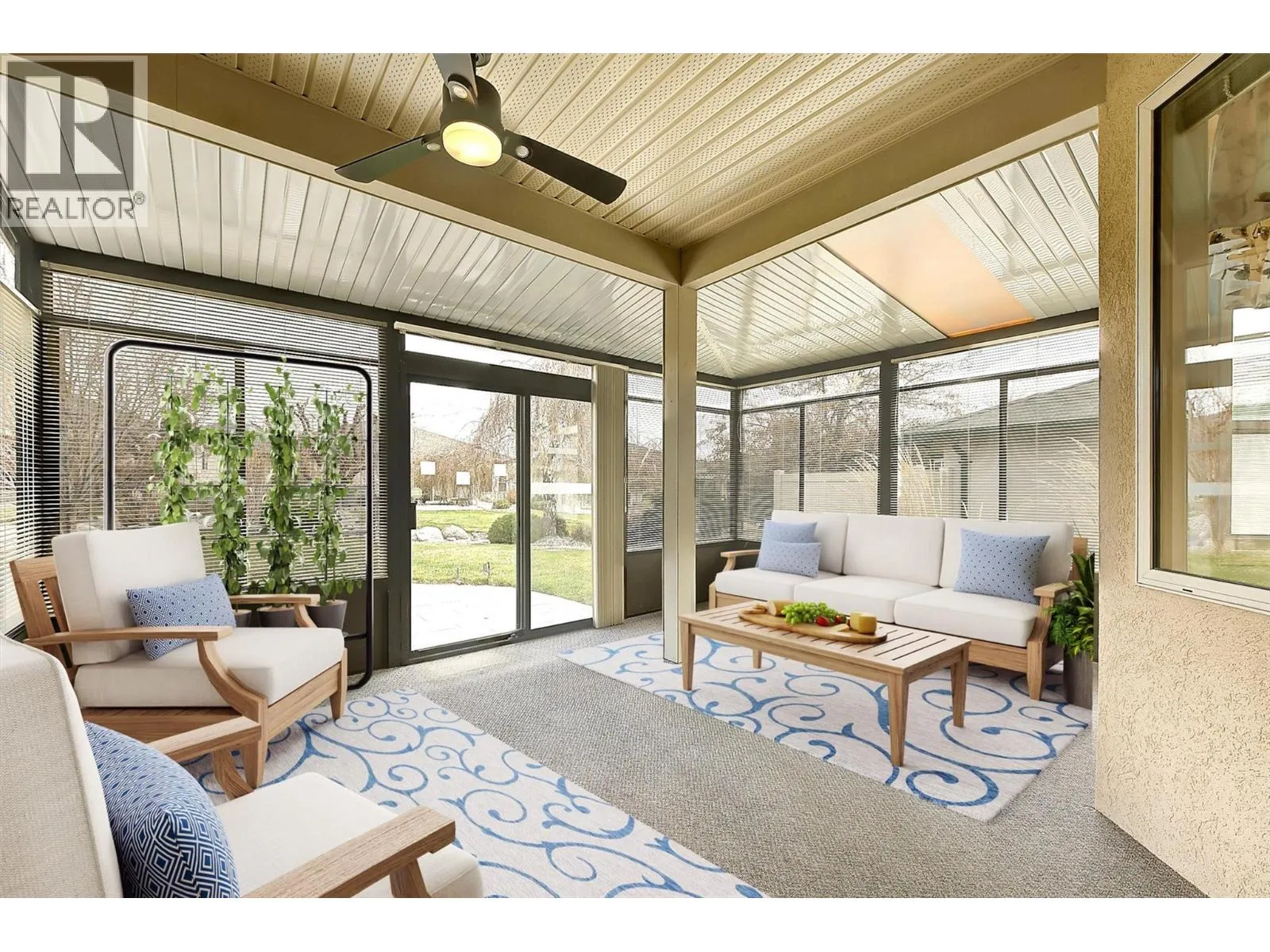 Welcome to easy, resort-style living in Sun Villageâone of West Kelownaâs most sought-after 45+ gated communities. This beautifully maintained 2-bedroom home with den and basement offers an impressive 2,757 sq. ft. of thoughtfully designed living space, plus 747 sq. ft. of additional storage. Inside, youâll find a warm and inviting layout highlighted by engineered hardwood floors, granite countertops, and a bright enclosed sunroomâperfect for morning coffee or quiet afternoons year-round. The 129sqft Den overlooks peaceful backyard waterscapes, creating a calm and inspiring space to work or unwind. Even the little details shine, like the instant hot water feature in the kitchenâsomething youâll appreciate. The cozy family room with its upgraded natural gas fireplace sets the tone for relaxing evenings, while the beautifully landscaped yardâwith irrigation and a gas BBQ hookupâmakes entertaining effortless. But what truly sets this home apart is the lifestyle. Just one minute away, the vibrant clubhouse becomes an extension of your home. Meet friends for a swim in the heated indoor pool, enjoy a game in the rec room, browse the library, or stay active in the fitness center. Hosting? The full kitchen makes gatherings easy, and the convenient mailroom adds to the everyday ease of living here. With Poly-B replaced, major mechanical updates already done, and the lease fully paid out, you can simply move in and start enjoying everything this incredible community has to offer. (id:27476)