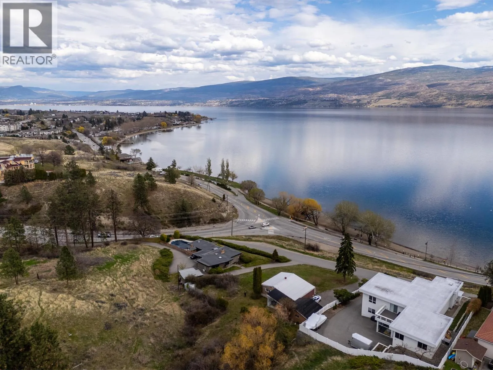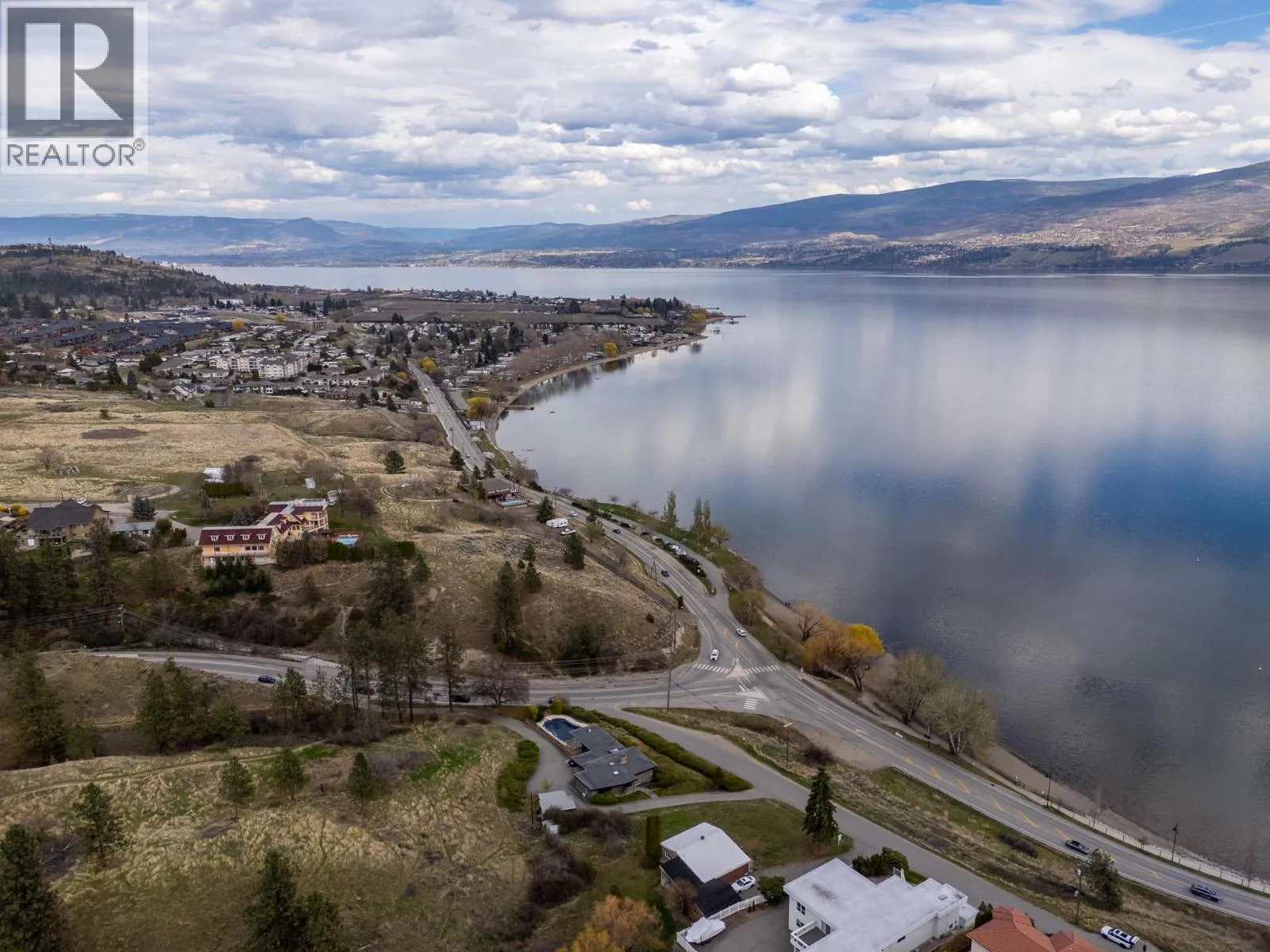 SEMI-WATERFRONT 0.574 ACRE LOT ACROSS THE ROAD FROM THE LAKE! Enjoy sweeping, unobstructed southeast views of Okanagan Lake and surrounding mountainsâan incredibly rare combination of privacy, size, and proximity to the shoreline. Walk to Willow Beach, Gellatly Bay Yacht Club, and the scenic Gellatly Bay waterfront walking trail, all just steps awayâyet only a minute to Westbank shopping, restaurants, and schools. Set on a quiet street of high-end executive homes, this private property backs onto undeveloped land, enhancing both tranquility and long-term value. The bright, open-beam cedar home offers expansive windows framing the lake, a cozy rock fireplace, fresh paint, 3 bedrooms up, and 2 full bathrooms. Detached double garage and full municipal sewer add to the convenience. Whether you renovate, hold, or build new, the potential here is exceptional. Explore rezoning to R2 for duplex/stratification or RC3 for two lots (buyer to confirm with District of West Kelowna). With approx. 100â frontage and generous depth, this is an ideal site for two estate-style lakeview residencesâwithout the burden of lakeshore taxes. (id:27476)