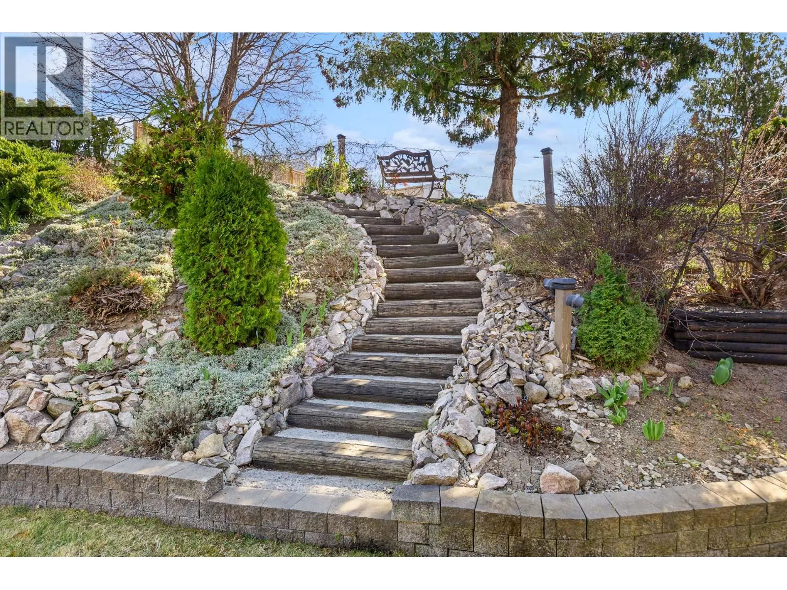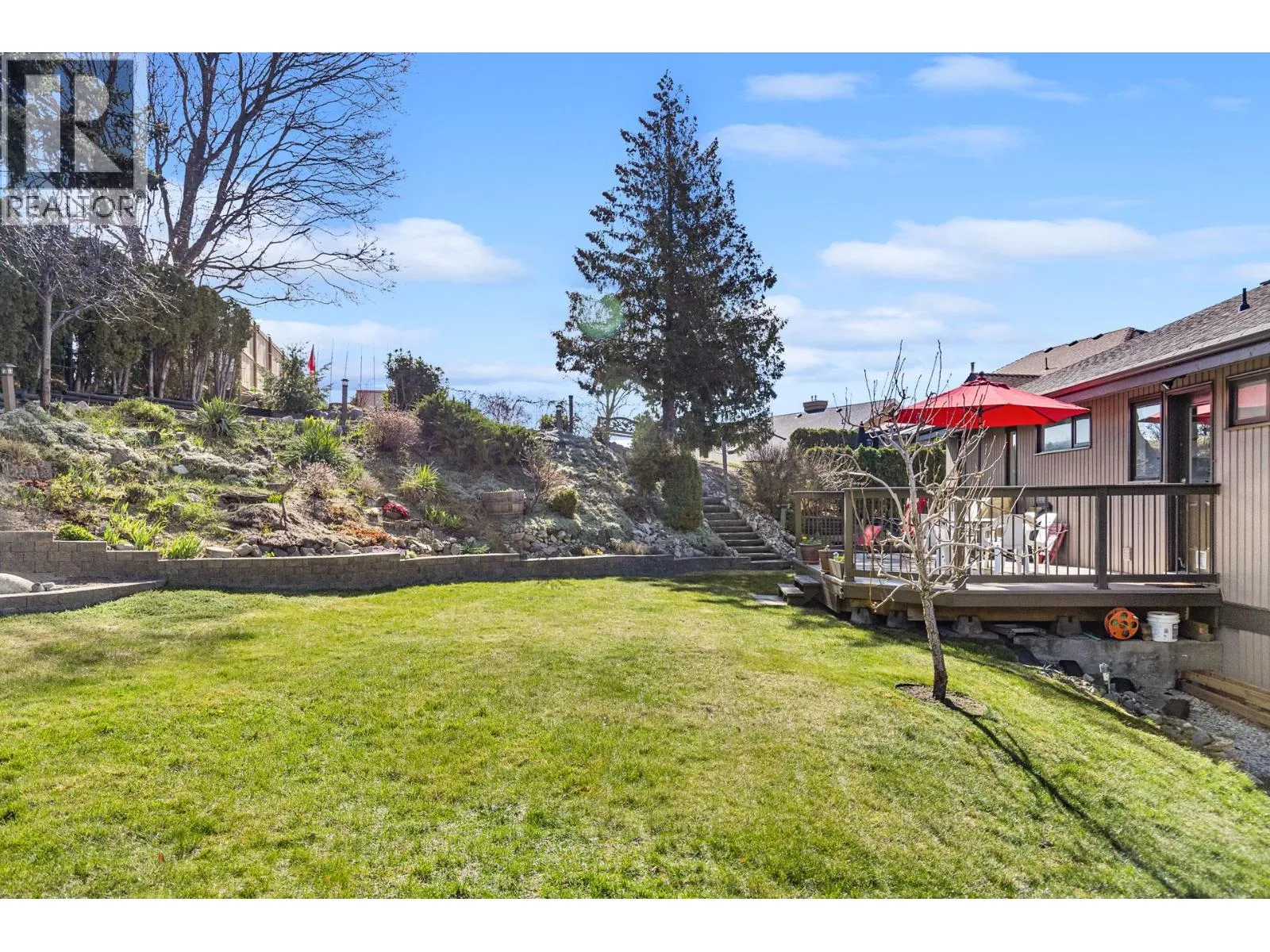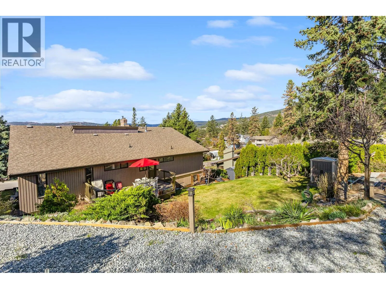 Elegant, spacious living nestled in nature! This oversized West Coast Contemporary style home has been lovingly updated & maintained. Large foyer entrance w/ soaring ceilings, wood railings and dramatic brick features. The sun drenched main level offers 3 skylights, an updated kitchen, appliance package + beautiful hardwood floors throughout! There are 3 big bedrooms on this level and handy main floor laundry. The primary suite has access to the deck, views on both sides of the home + a renovated ensuite with 6ft soaker tub! Sunken living room w/ brick feature updated with a newer wood burning stove that adds ambience and economy to the home if used in the winter months. The oversized decks take in the valley & partial lake views, while a secluded rear patio to enjoy the birds, mature landscaping for a private serene retreat. The garden beds are meticulously planned with pots ready for tomatoes, herbs or crop of choice! Fruit trees include a tri-apple and pear, as well as grape vines. The lower level has a separate entry to what was previously a 1 bdrm in-law suite, easily opened into main dwelling area for a 4 bdrm home!Current owners are utilizing this as a licensed business-Buyers should make their own inquiries in regards to licensing for their requirements. Also on the lower level there is a large hobby room, extensive storage & access to and from the oversized 2 car garage with tremendous organizational elements. Huge RV friendly driveway! See this one fast-it is a gem! (id:27476)