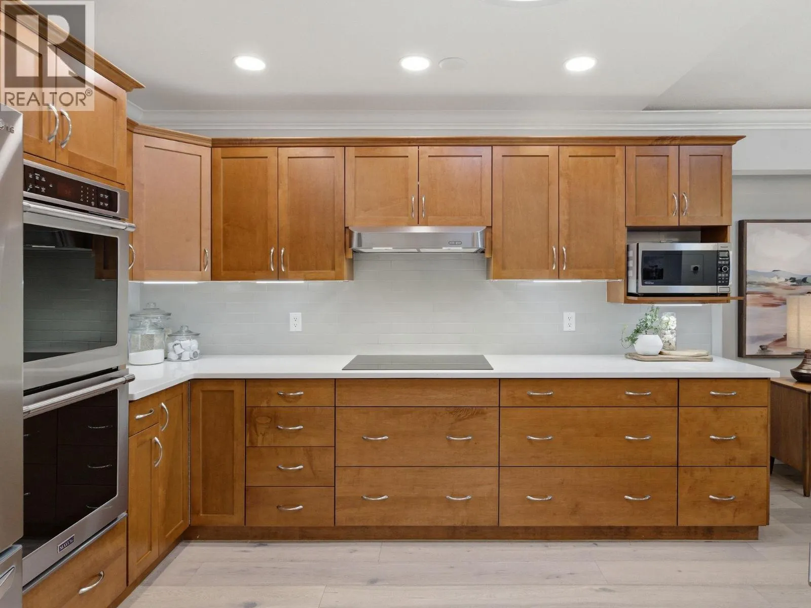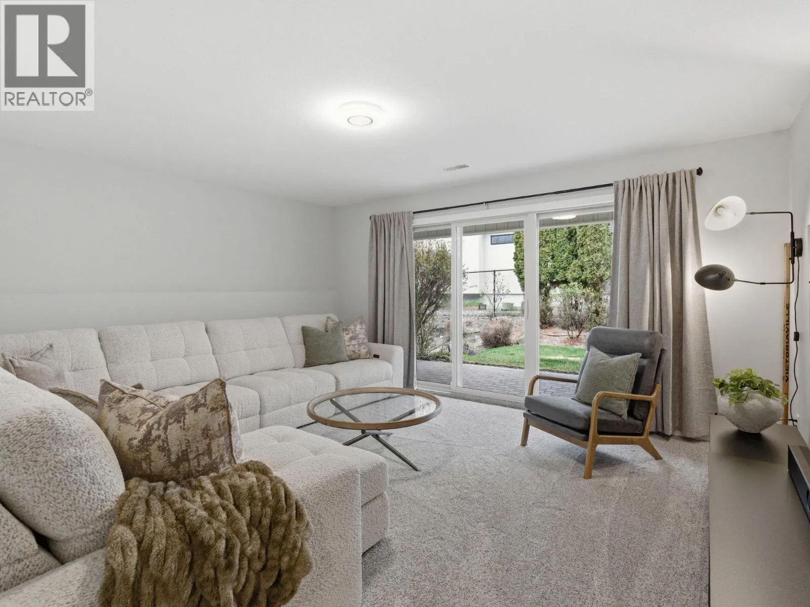 Freehold Property. Welcome to Bay Vista, one of West Kelownaâs most desirable lakeside communities, directly across from Okanagan Lake and the Gellatly Bay waterfront. This well-maintained, walkout rancher townhome offers nearly 2,500 sqft. of thoughtfully designed living space, combining the feel of a single-family home with the convenience of low-maintenance strata living. With only a shared garage wall, the home provides a high level of privacy. The main level features a bright, open-concept layout with vaulted ceilings, solar tube skylights, and large windows that fill the space with natural light. The spacious kitchen is equipped with quartz countertops, double oven, induction cooktop, flowing seamlessly into the dining & living area. The living room provides direct access to the deck with peek-a-boo lake views. The large primary bedroom is located on the main floor, offering a comfortable retreat with WIC & ensuite. The fully finished walk-out lower level has generous family room, 2 additional bedrooms, laundry room and a full bathroom. The lower patio opens to a greenspace & private outdoor area. Additional features include hardwood flooring, new carpet, central air, central vacuum, storage and a double garage with a full driveway. Amenities including a pool, hot tub, fitness room, clubhouse, all within close proximity to everyday conveniences. This is an excellent opportunity to own a spacious, move-in-ready home in a highly sought-after lakeside location. (id:27476)