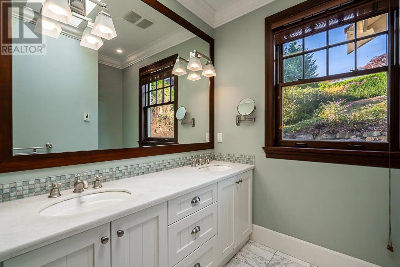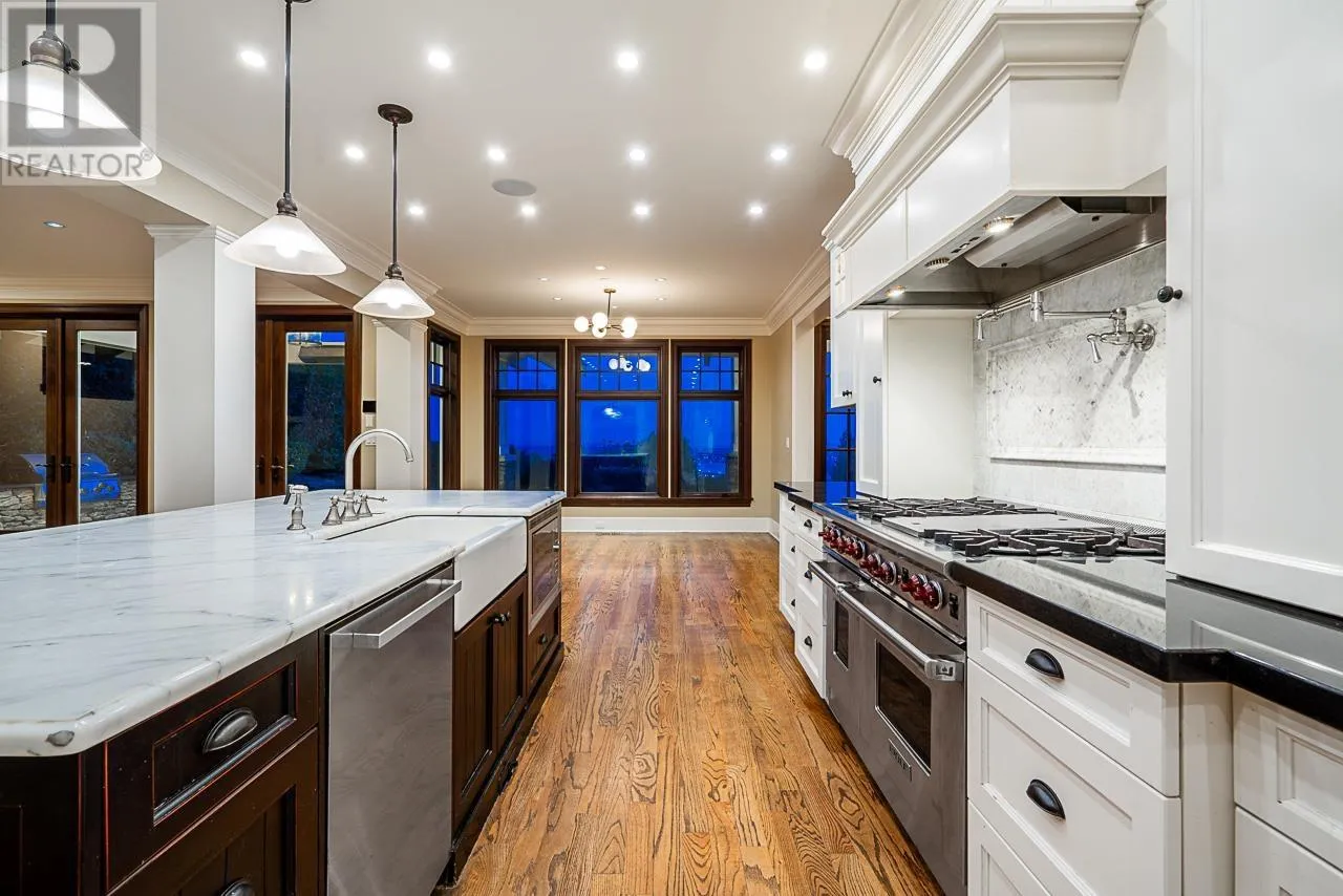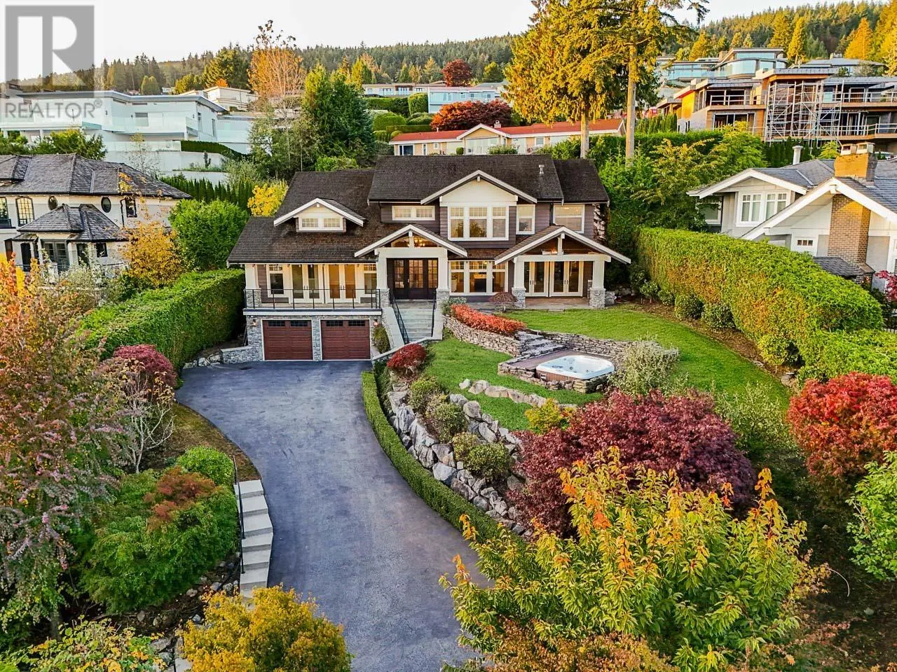 STUNNING 6-BEDROOM CUSTOM FAMILY HOME WITH SPECTACULAR PANORAMIC VIEW OF LIONS-GATE-BRIDGE, DOWNTOWN AND STANLEY PARK ON HIGH SIDE OF A LARGE 17,502 SQFT LOT. This amazing home, with a heated driveway, features on the main flr a spacious living rm and private dining room, stunning gourmet kitchen, eating area, large family room and bdrm/den. Upper flr features grand primary bedroom w/stunning en-suite, plus 3 spacious bedrms. Lower flr features large rec-rm with bar and wine rm ideal for entertaining, 2 additional bedrms and gym. Centrally located, walking distance to Chartwell Elementary & Sentinel Secondary Schools, and only minutes drive to Mulgrave and Collingwood Private Schools. PLUS: heated driveway, A/C, solid hardwd flring, extensive millwork, high-end finishing and much more ... (id:27476)