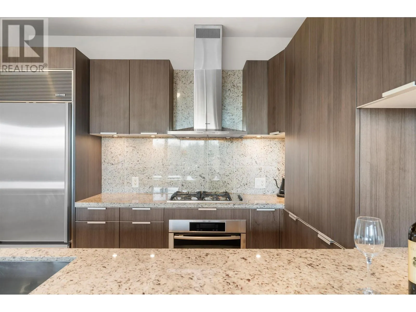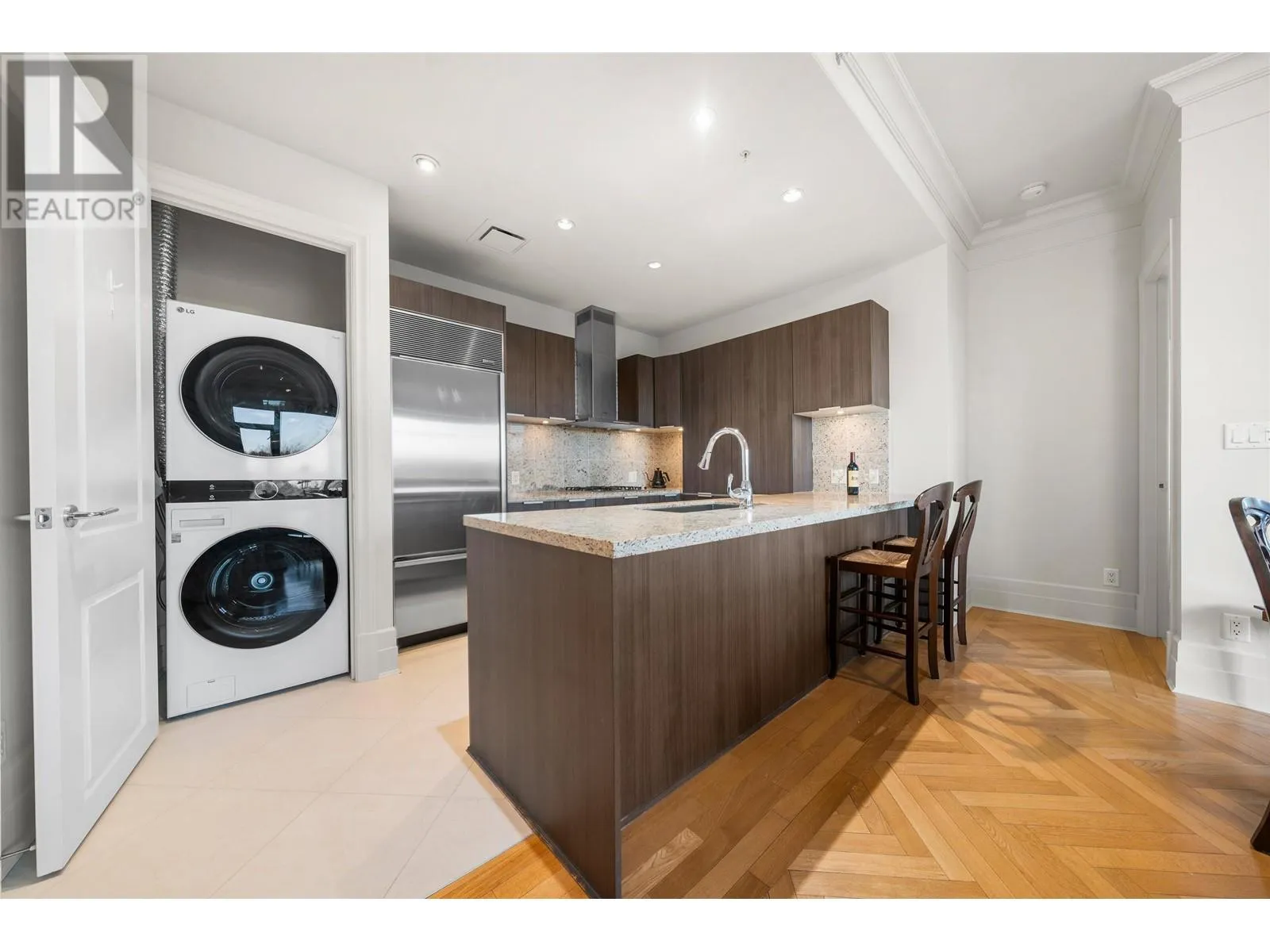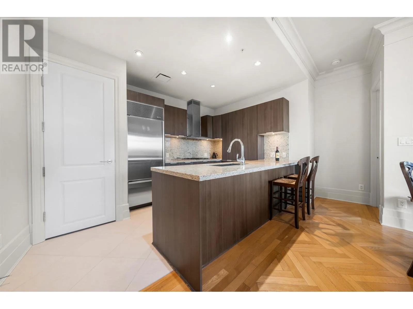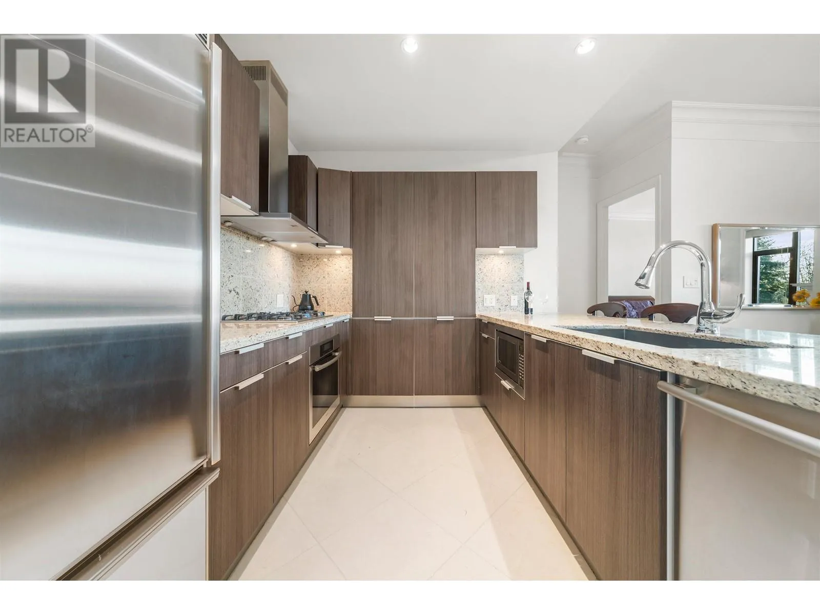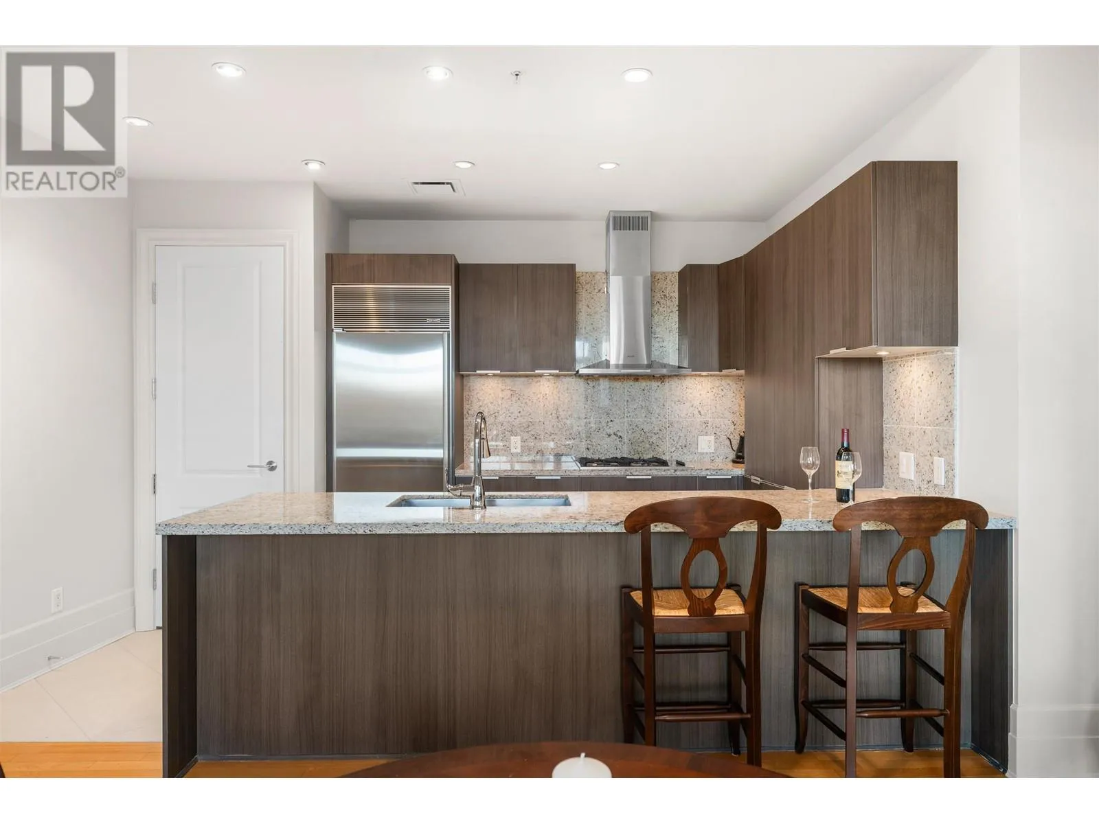 Experience elevated living in the heart of West Vancouver at Waters Edge. This exquisite 2-bedroom + office suite, designed by renowned architect Robert Stern, combines sophistication and comfort. Filled with natural light through expansive windows, the home boasts stunning herringbone and tile flooring, a chef-inspired kitchen with granite countertops, premium stainless steel appliances, and 2.5 luxurious baths, including a spa-like primary ensuite. Relax by the cozy fireplace or unwind on the sunny balcony. The building offers a wealth of amenities, including a storage locker, concierge services, a fully-equipped exercise room, and steam rooms and saunas. Perfectly located, you´re just a scenic stroll away from the river´s edge, the Sea Wall, Park Royal shopping, and convenient transit . (id:27476)